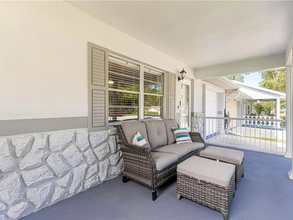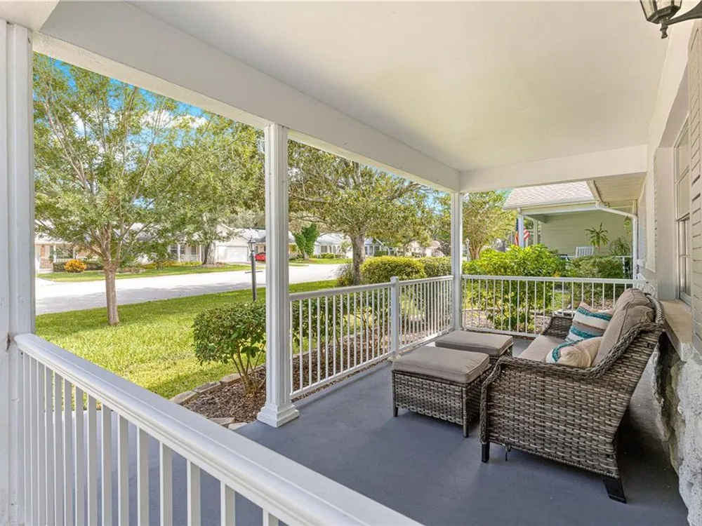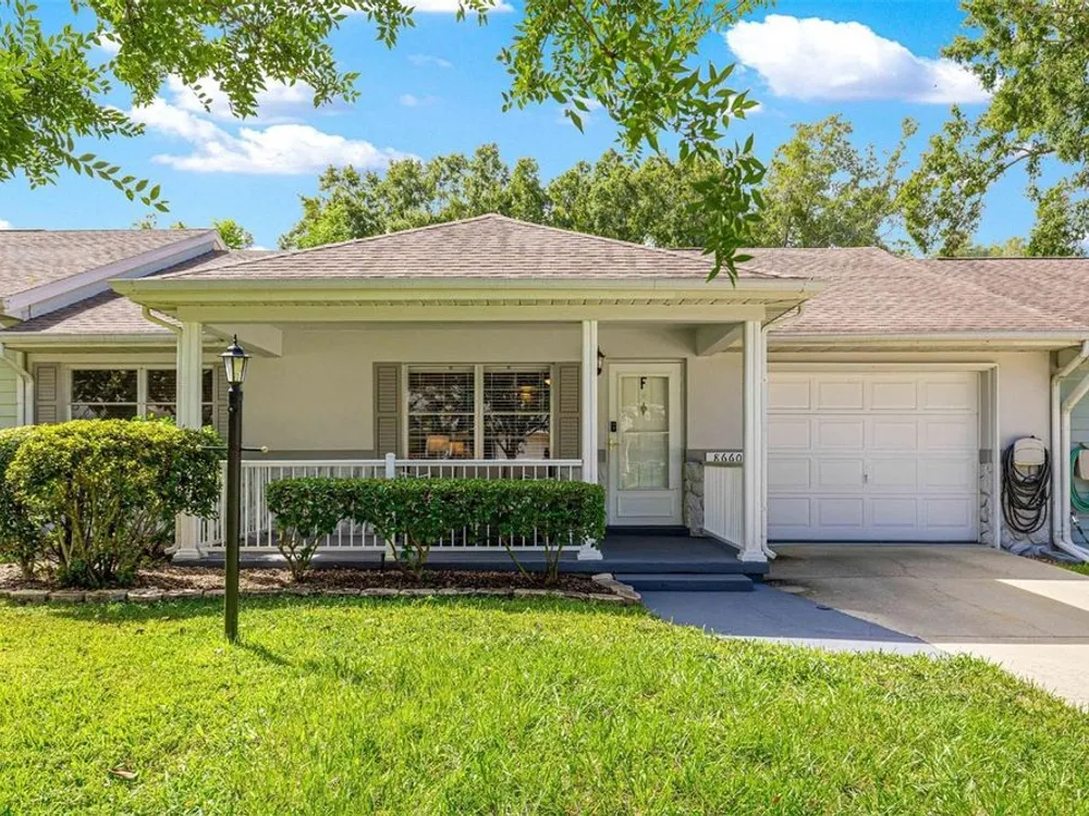 This is the villa you’ve been waiting for! Located on the desirable 94th Street in On Top of the World, this expanded Philadelphian model offers 2 bedrooms, 2 bathrooms, a den with barn door, and an oversized 1.5-car garage. Step inside to discover a home filled with thoughtful updates. The fully renovated kitchen features white shaker cabinets, granite countertops, subway tile backsplash, stainless steel appliances, and a shiplap ceiling. Newer luxury vinyl plank floors run throughout. Fresh interior and exterior paint provide a crisp, move-in ready look. The primary suite is spacious enough for a king-sized bed and large furnishings. Enjoy your backyard patio—perfect for relaxing evenings. Additional peace of mind comes with the architectural shingle roof, last replaced in 2016. The deep garage provides plenty of room for a vehicle, storage, and walking space, with laundry conveniently located in the garage. On Top of the World is Ocala’s premier 55+ active community, offering an unmatched lifestyle with golf cart access to shopping, dining, healthcare, and entertainment. Resort-style amenities include: 3 swimming pools (2 outdoor, 1 indoor), 2 fitness centers, Tennis, pickleball, bocce, shuffleboard, and horseshoes, Billiards, archery, dog parks, RC flying and racing areas, Library, restaurant & pub, and over 100 clubs to join. The HOA covers lawn care, trash/recycling, basic Spectrum cable, roof repair, exterior painting every seven years, irrigation water, exterior maintenance, structure insurance, and 24/7 gated security. ROOF (2016) HVAC (2009) GOLF CART NEGOTIABLE