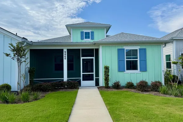 JUST REDUCED!! MOTIVATED SELLERS!! This Camellia cottage is move-in ready! Come join the fun at Minto's 55 and Better Community located just minutes away from our beautiful Emerald Coast beaches! Stepping into the bright, Living Room/DR/Kitchen open plan has navy vaulted beams that gives you a coastal vibe along with navy cabinets in the kitchen and bathrooms. Aqua walls add to the intergrity of the home! Brand new tiled flooring throughout the entire home are an easy upkeep for this home! No carpets here! This open concept makes this a very spacious home. 8' doors throughout, utility sink in garage, deep window sills, glass front door, upgraded garage door opener, gutters, guest bath tiled walls, pocket door at master bath, high TV jacks, garage insulation, super charger in garage for your golf cart, extra can lights, 3 ceiling fans plus box for porch fan on screend lanai, kitchen sink tilt out, Carrera Bianco quartz on all counters, garbage disposal switch on counter, level 3 backsplash, SS refrigerator, Admiral navy cabinets throughout, Gibson nickel plumbing, laundry room cabinets, Whirlpool washer and dryer, custom interior paint and beams, blinds, etc. Approx. $65,000 in upgrades! Plenty of light comes in through these windows, for sure! This home is located steps away from a large pond with gorgeous sunsets and a tiki area for gathering in the afternoons! Bring your chairs and enjoy the sunset together with your neighbors! This is a great opportunity to live in this wonderful community! You get to enjoy the completed community amenities with resort-style pool with live music throughout the week under the pool tiki hut! The restaurant and the upstairs Overlook Bar restaurant overlooks the intracoastal waterway for casual dining and great food! Prices are fantastic! The Fitness Center offers state-of-the-art workout equipment along with daily exercise classes in the separate yoga room with a ballet bar/mirrors and spin room.There is an indoor, 3 lane pool with a Jacuzzi! There are 9 pickleball courts as well as tennis, 5 bocce ball courts along with a grassy area with cornhole, pool table, ping-pong table and a putting green! The Band Shell offers live or DJ music every Friday and Saturday night! There's a kayak launch, too! There are many weekly events offered to all homeowners. There is a St. Joe Marina being planned for this community. The Barkaritaville dog park is available for our best friends and a dog wash area in our newly added building along with a Hangar workshop, pottery studio and a 200 seat theatre with different activies weekly! Publix is starting to be built on site! Restaurants, shopping and multi-use businesses will be completed in the near future. Currently there is a bank, golf cart store. Call Listing Agent for a private tour of this incredible community!