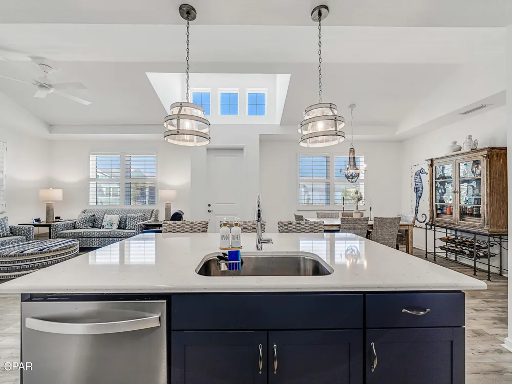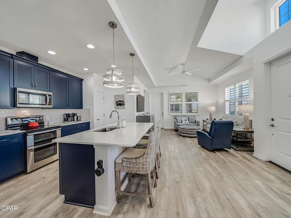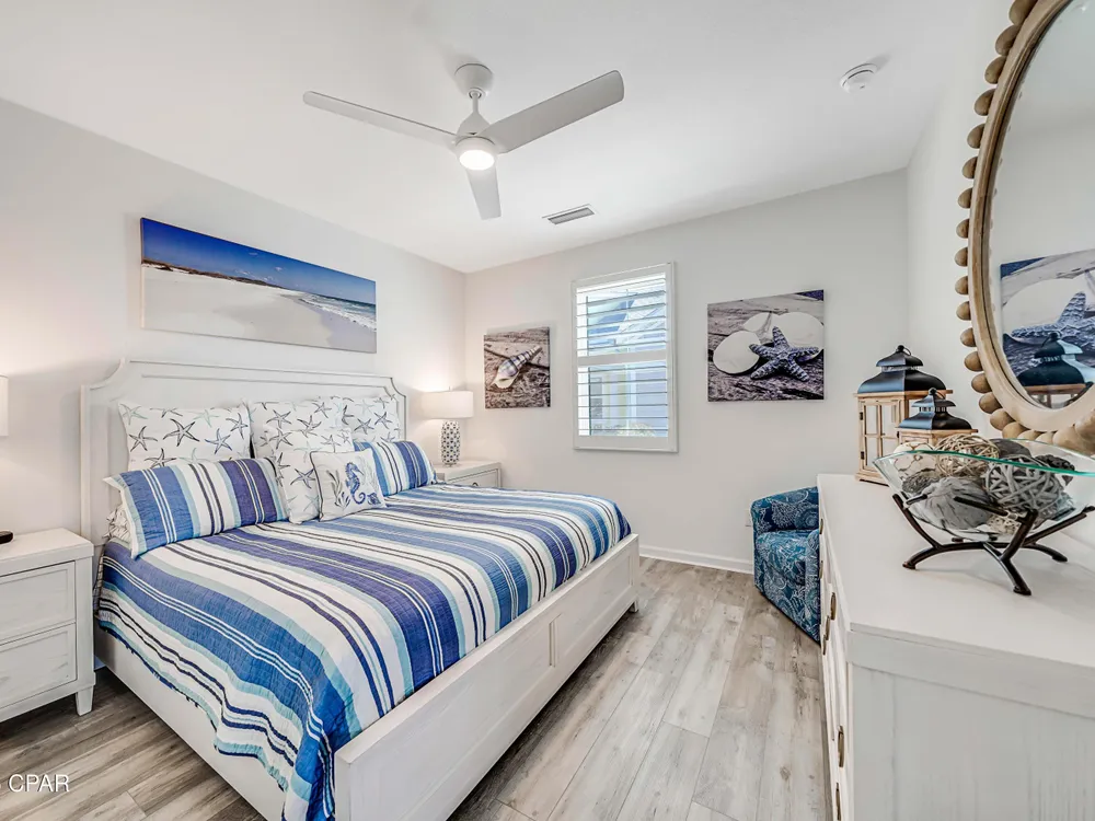 Price drop and MOTIVATED SELLER!! Desired end unit cottage at Latitude Margaritaville Watersound! Will also consider to sell furniture if you need to move right in! This Aloha cottage is the largest floorplan of all the cottages and beautifully updated featuring quartz countertops throughout, upgraded and soft-close cabinets, pull-out drawers, crown molding over the cabinets, double oven and more. Enjoy the luxury of enhancements sellers added after close, including LVP flooring throughout, plantation shutters, remote control ceiling fans, and modern light fixtures. The spacious layout provides a bright and welcoming atmosphere, perfect for relaxing and entertaining. Enjoy your screened in porch, an ideal spot for more relaxing, reading, or hosting a meal or beverage with friends and family. The home's location provides convenient access to street parking for guests, as well as easy in and out of the two-car garage. This home is ideally situated within the Latitude Margaritaville Watersound community, where you can enjoy exceptional amenities including HOA-maintained lawn care, a paradise pool with beach entry, cabanas, tiki huts, a restaurant and bar with panoramic views of the Intercoastal Waterway, a state-of-the-art fitness center, a 75' lap pool, pickleball and tennis courts, bocce ball courts, a kayak launch, dog park, and walking trails. The community also features golf cart and biking paths, a bandshell for concerts, and an exciting calendar of parties, games, and live music. For boating enthusiasts, a brand-new public marina will soon be available, with easy access to West Bay, Choctawhatchee Bay, and the Gulf waters. Just minutes from the beautiful Panama City Beach and the lively Pier Park for shopping and dining, this home offers the best of both relaxation and recreation. Whether you're enjoying quiet time at home or participating in the many community activities, this residence is the perfect space for both tranquility and excitement. Don't miss the chance to live in one of the most desirable 55+ communities around. Call today to schedule your showing!