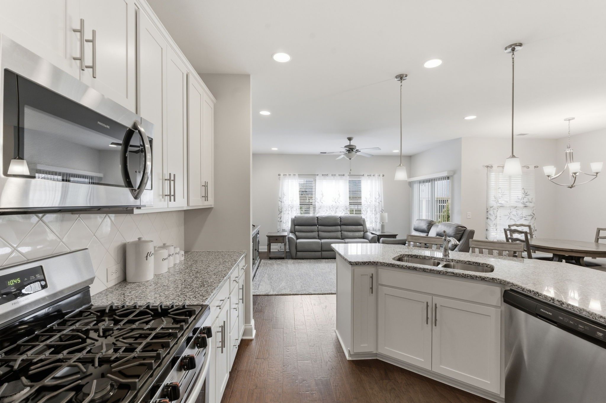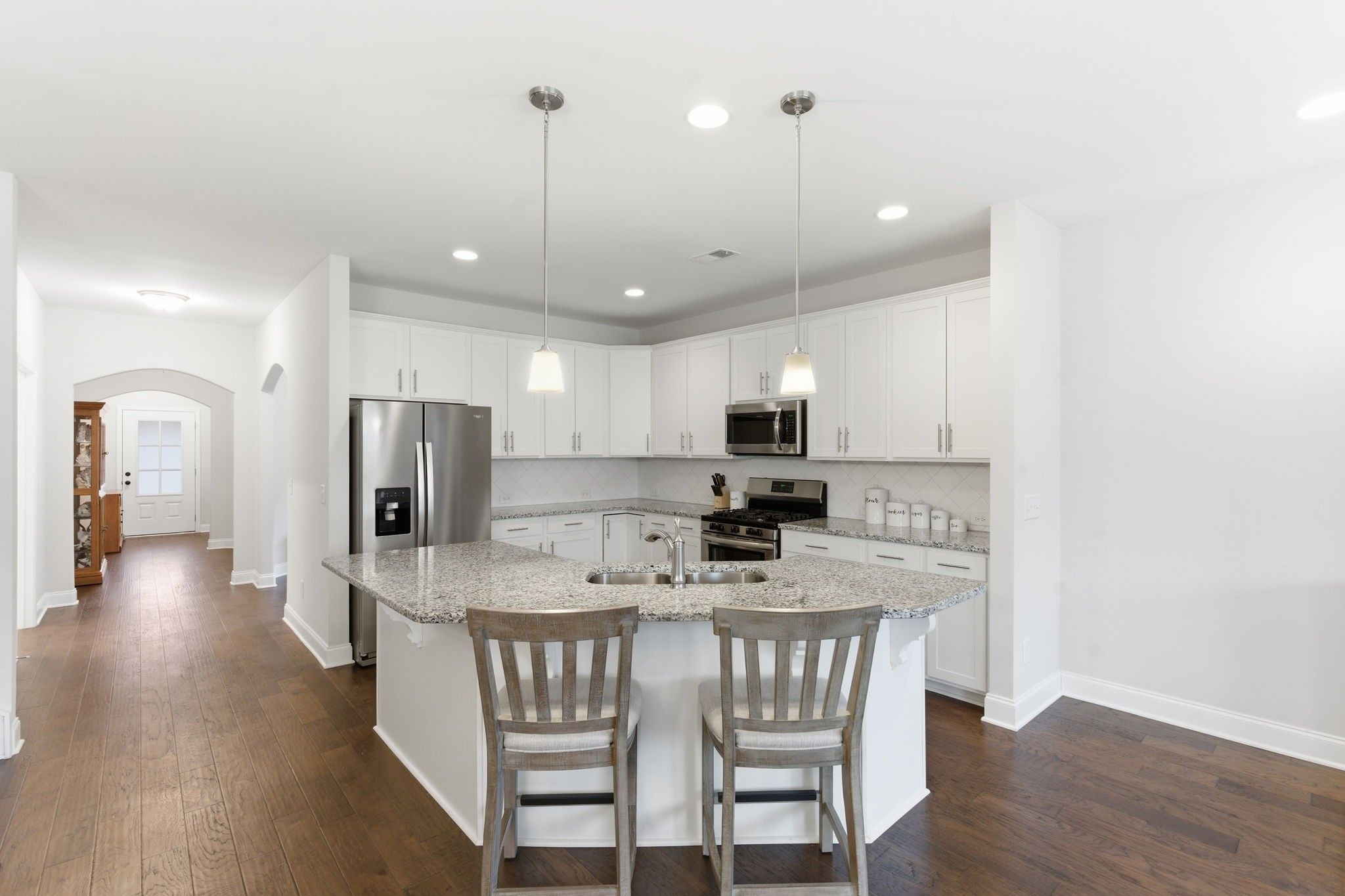 Located in the highly desirable Stonebridge community, this beautifully maintained two-story home offers 3 bedrooms, 3 full bathrooms, and 2,123 square feet of thoughtfully designed living space with the perfect blend of comfort and functionality. Step inside to an open, light-filled layout enhanced by recessed lighting throughout and seamless flow between the living, dining, and kitchen areas. The upgraded kitchen is designed to impress, featuring a stylish tile backsplash, gas stove, walk-in pantry, and a refrigerator that is just two years old. An open office space on the main level provides flexibility for working from home or creating a cozy sitting area. The main-level primary suite serves as a private retreat, complete with a spacious walk-in shower and an oversized walk-in closet. A secondary bedroom and full bath downstairs offer convenience for guests or everyday living. Upstairs, a private third bedroom with a full bath creates the ideal guest suite, bonus room, or multi-generational living space. The unfinished walk-in attic provides exceptional storage and offers exciting potential to create a fourth bedroom or additional bonus room. Enjoy the ease of a two-car garage and the low-maintenance lifestyle Stonebridge is known for, all while being conveniently located near Highway 109 with quick access to shopping and dining. Spacious, functional, and move-in ready; this home offers refined living in a welcoming community setting. Schedule your private showing today!