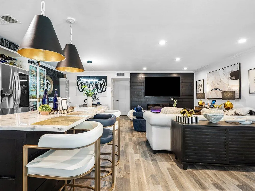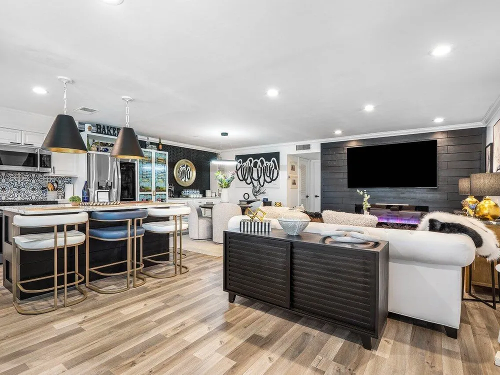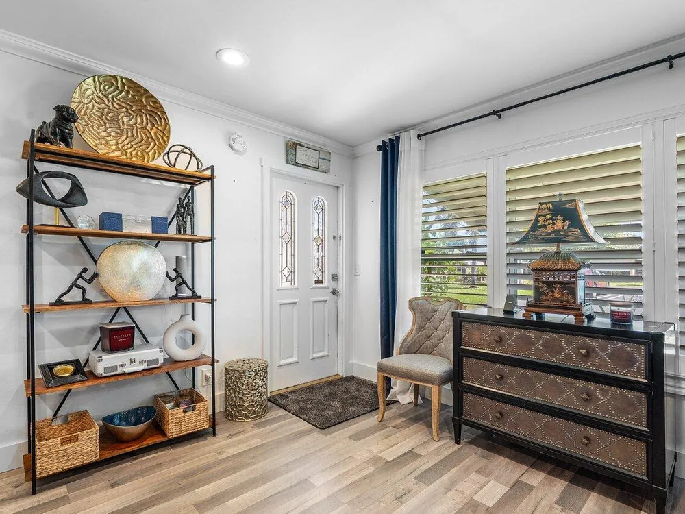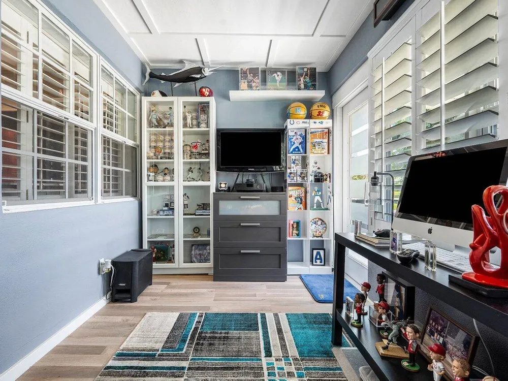 - Bar, Built-in Shelving, Entry Level Living Area, Kitchen Island, Walk-In Closet(s), Florida Room, Separate Shower