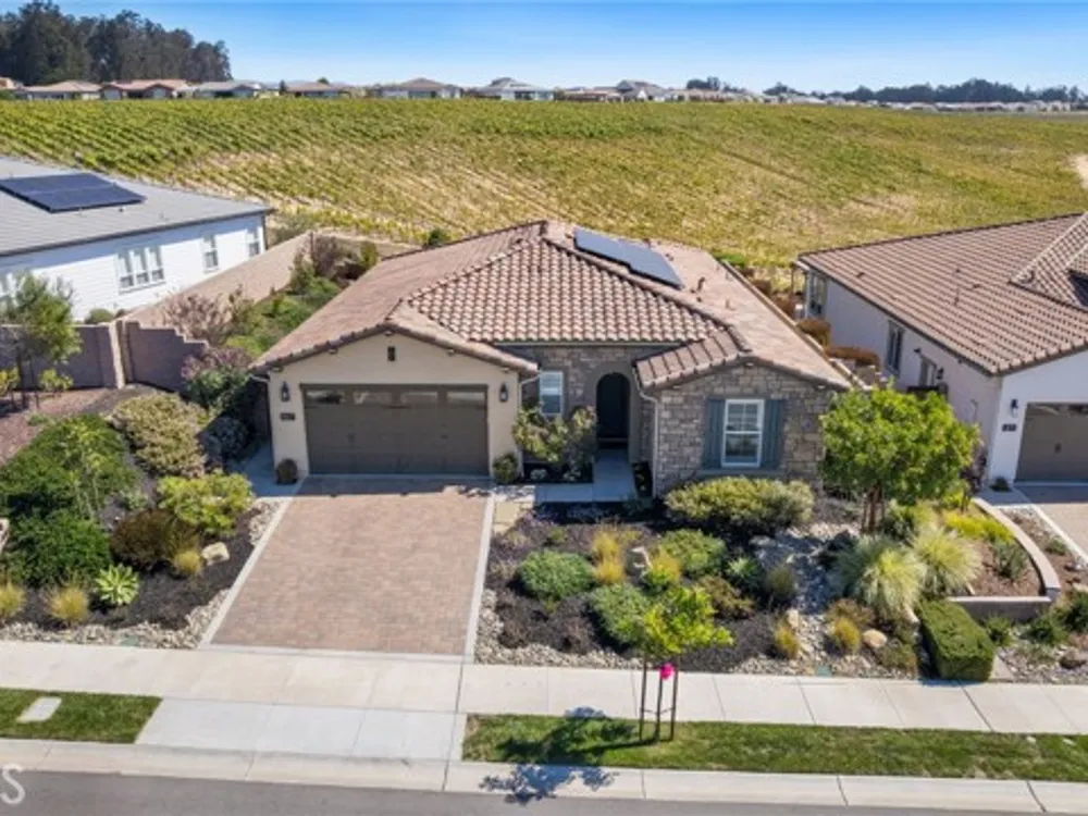 Your dream lifestyle begins at Trilogy at Monarch Dunes – a premier resort community along California's Central Coast, where coastal breezes, vineyard views, and a welcoming sense of connection define daily life. Set on a peaceful, vineyard-view homesite, this vineyard vista home is an elegant Monterey model offering 1,924 square feet of refined single-level living. Built in 2021, this thoughtfully designed home captures the perfect balance of sophistication and comfort. The open-concept great room flows seamlessly to a chef's kitchen featuring a matte-finish quartz island, walk-in pantry, and casual dining nook – ideal for gathering with friends or enjoying a quiet morning coffee. Sliding doors invite you outdoors to a spacious covered patio overlooking a beautifully landscaped backyard with a stone fire pit, soothing waterfall feature, and a raised garden bed – all framed by tranquil vineyard scenery. The primary suite offers a serene retreat with dual vanities, a large walk-in closet, and spa-like finishes. A separate den and private office add flexibility for work, guests, or creative space. This home includes a fully paid solar system, smart-home features, and a two-car garage with epoxy flooring, built-in cabinetry, and extended side storage. As a Trilogy resident, yo