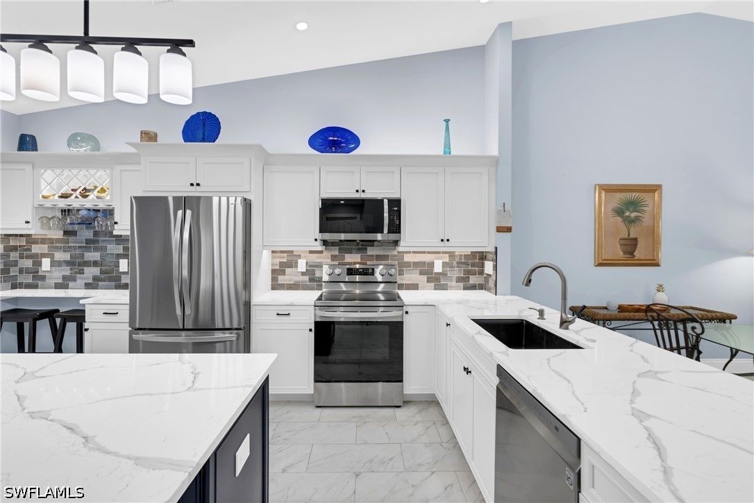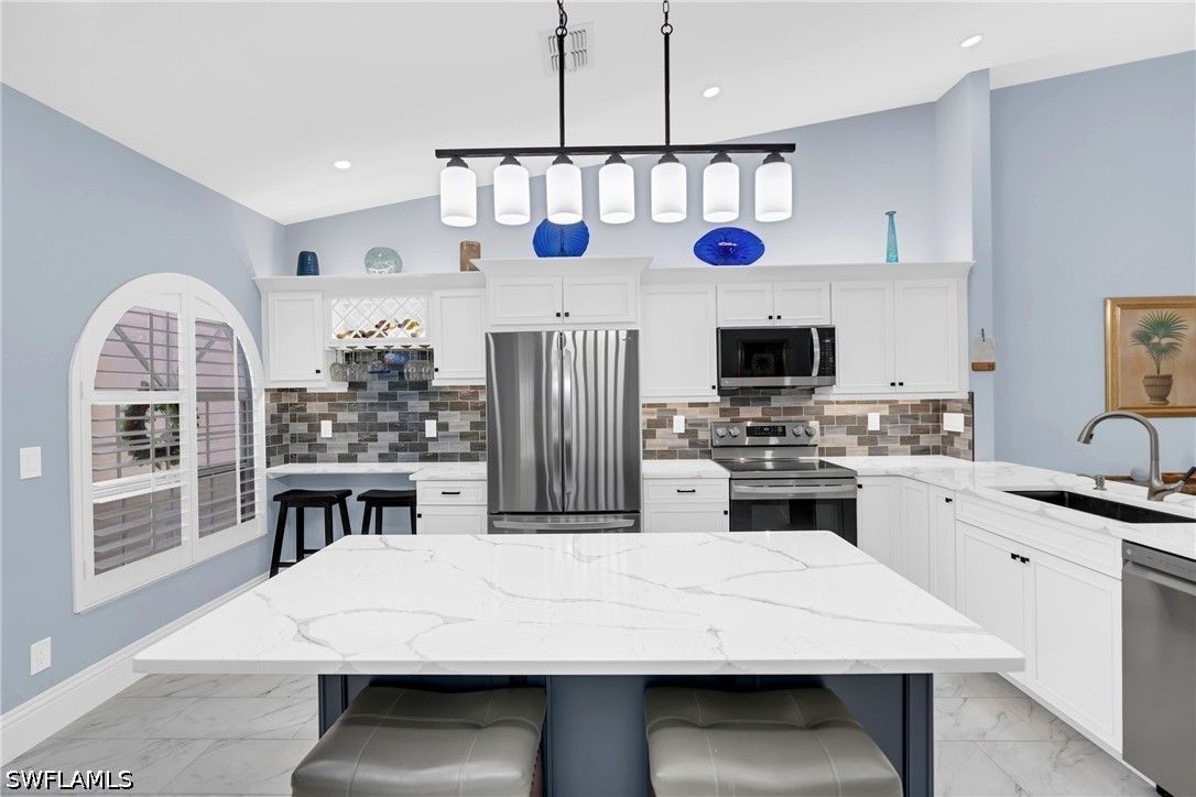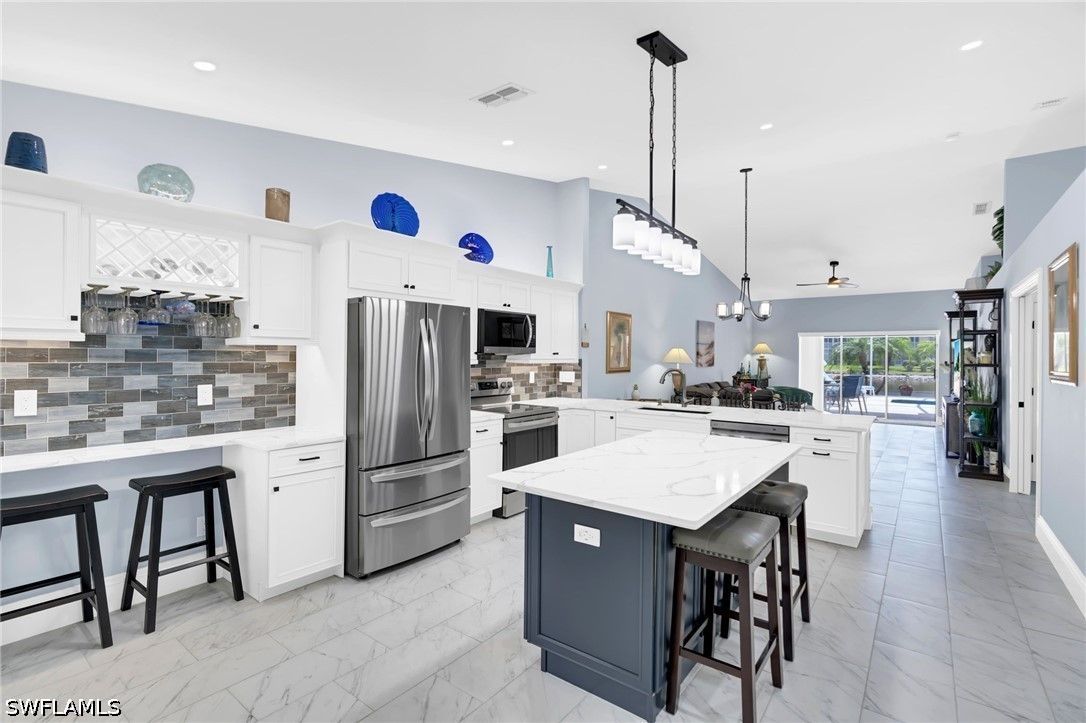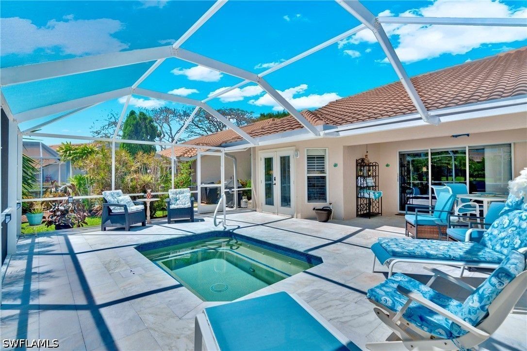 Step into the Florida lifestyle you’ve been dreaming of. Nestled in the highly sought-after Mustang Villas of Lely Resort, this fully upgraded attached villa delivers the perfect blend of luxury, comfort, and peace of mind. This bright and airy 3 bedroom 2 bath home showcases a completely remodeled interior, including a modern kitchen, new appliances, spa inspired bathrooms and stunning new tile flooring throughout. Fresh interior and exterior paint. This home feels like vacation. The kitchen is both stylish and functional, real wood cabinetry with soft close drawers — both durable and stylish. Quartz countertops, under cabinet lighting, and extra pot and pan drawers for storage and organization — no expense was spared. 2 totally remodeled walk in showers with frameless glass doors. A spacious primary suite is a true retreat, with direct access to your lanai from the french doors overlooking a lake. Step outside to your private outdoor oasis—this is where the home truly shines. Lake front setting. Large screened in lanai cage with non-slip, natural marble pavers, covering the entire screened in patio consistent to the lanai. To top it off "the sunset sizzler" a heated in ground jacuzzi that holds up to 6 people. With coveted Southern exposure, you’ll experience breathtaking sunset views every evening over the lake — Full sun on the patio and full shade on your covered lanai. Your own private slice of paradise, it doesnt get any better than this. A gorgeous development with immaculate curb appeal and an extra large driveway, you'll have no worries about parking while entertaining, guests extending their stay is another topic. Living in Lely Resort means access to world-class golf courses and amenities. Mustang Villas offers its own community pool and clubhouse, with the option to join the award-winning Players Club & Spa for an elevated resort experience. Think cascading waterfalls, a resort-style pool, tiki bar, tennis, pickleball, fitness center, spa services, and three championship golf courses—all just minutes from your door. Whether you're searching for a full-time residence or the perfect seasonal escape, this move-in-ready, meticulously upgraded villa is the one you’ve been waiting for—Schedule your private showing today.