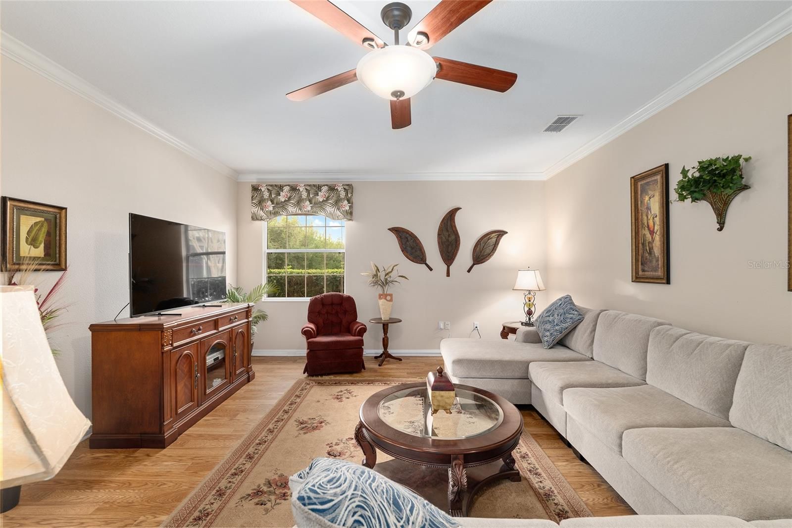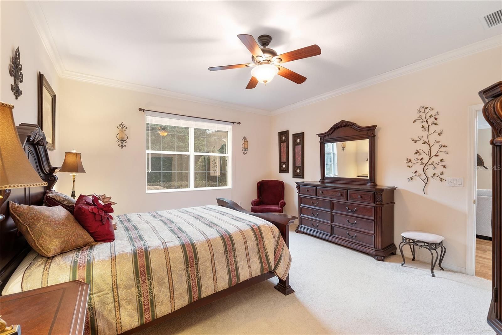 - Ceiling Fan(s), Crown Molding, High Ceilings, Split Bedrooms, Walk-In Closet(s), Window Treatments