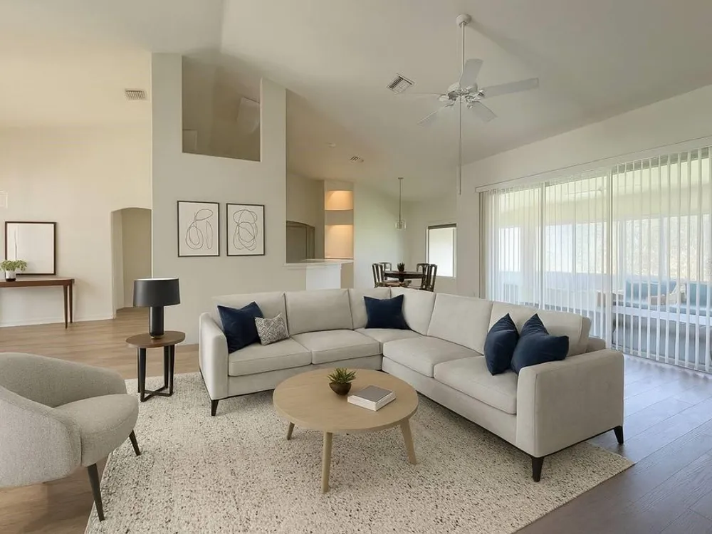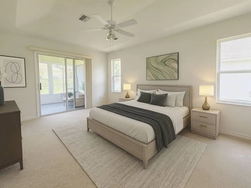 One or more photo(s) has been virtually staged. *New Roof* *3 Car Garage* 3-bedroom PLUS OFFICE (Currently being used as a 4th bedroom), 2-bath home offers a spacious layout and thoughtful upgrades throughout, starting with a rare 3-car garage, a brand new roof installed in 2024, and energy-efficient solar panels. Inside, you’ll find luxury vinyl plank flooring in the main living and formal dining areas, tile in all wet areas, and plush carpeting in the bedrooms. The kitchen features sleek slate-finish appliances, while the living space is enhanced by bullnose corners and a cozy fireplace. The oversized master suite boasts tray ceilings, his and her closets, and a private en-suite bath. A bonus room adds flexible space—perfect for a home office or potential fourth bedroom. Enjoy year-round comfort in the large enclosed Florida room, and let pets play freely in the fully fenced backyard. Situated on a corner lot, this home combines curb appeal, functionality, and style in one incredible package.