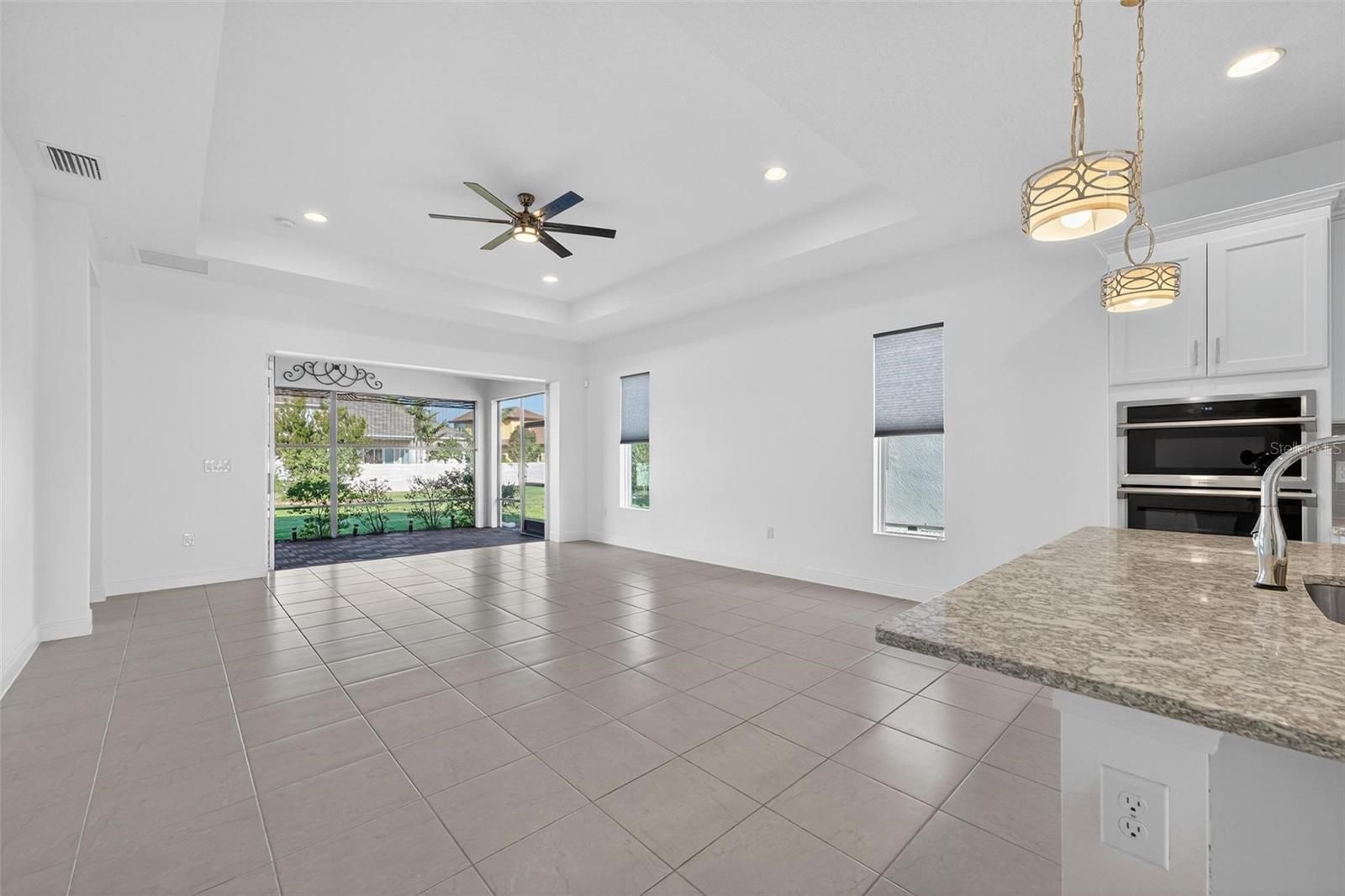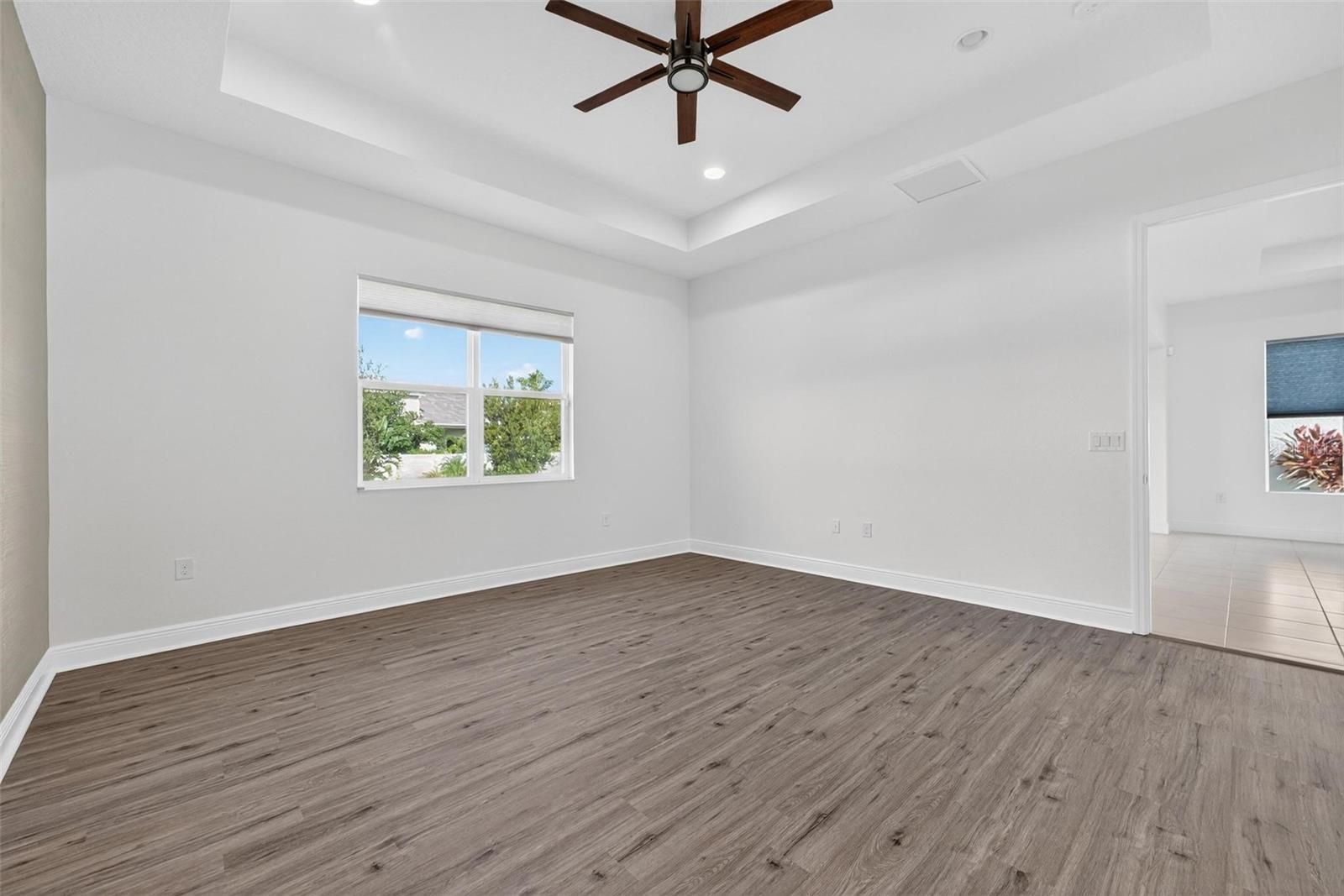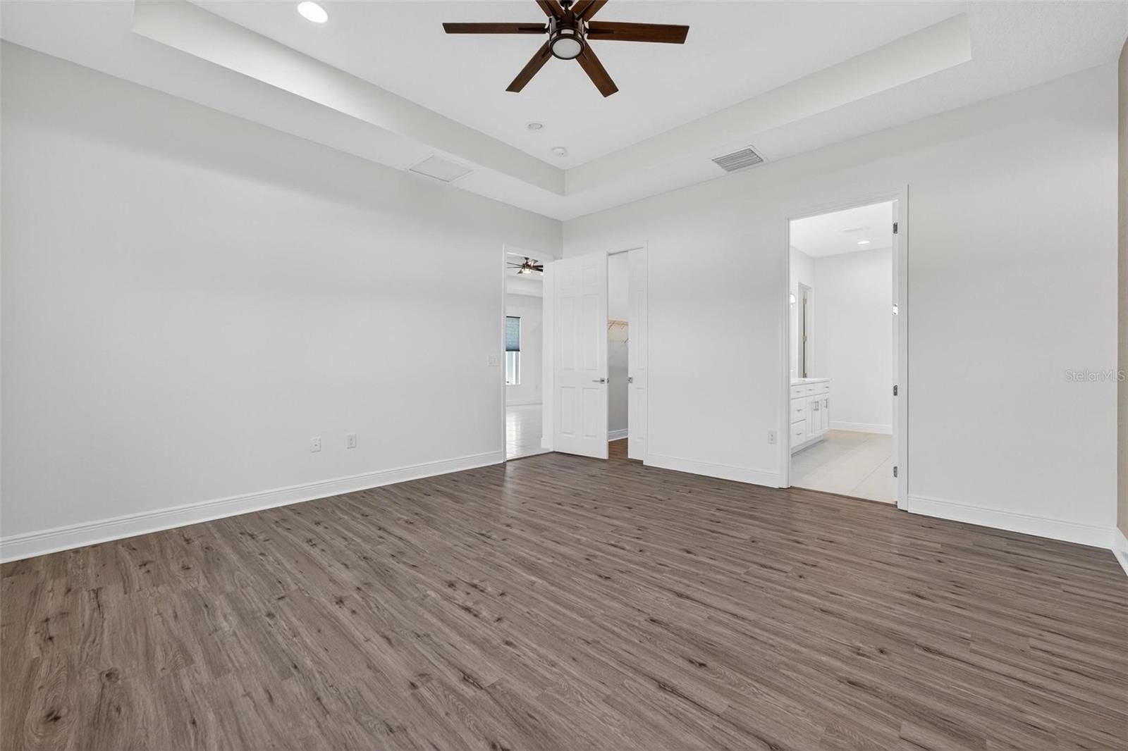 - Ceiling Fan(s), High Ceilings, Kitchen/Family Room Combo, Open Floorplan, Main Level Primary, Tray Ceiling(s), Walk-In Closet(s)