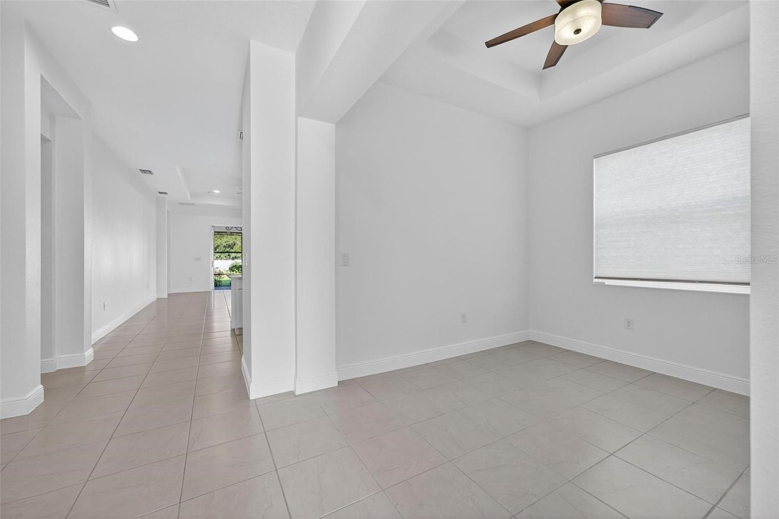 MOVE IN READY beautifully designed Antigua freshly painted interior (September 2025) model by Medallion, offering a spacious open floor plan perfect for entertaining. This home features 2 bedrooms plus a versatile office/den, a separate dining area, and a generous 2-car garage. Elegant tray ceilings add a refined touch, while the gourmet quartz counter top kitchen serves as the heart of the home. The private owner’s suite, located at the rear of the home, includes a large walk-in closet and a luxurious en suite bath with dual vanities, a walk-in shower, soaking tub, and linen closet. Additional highlights include a large laundry room with utility sink and an extended screened lanai, ideal for relaxing outdoors and enjoying the expansive backyard.Nestled in the heart of Central Florida, Lakes of Mount Dora is an award-winning 55+ gated community known for its vibrant lifestyle and extensive amenities. Residents enjoy access to an impressive 18,000 sq. ft. clubhouse, complete with a library, billiards and card rooms, arts and crafts space, and a fully equipped fitness center. Outdoors, the community offers nearly 4 miles of interconnected waterways for boating, kayaking, canoeing, and paddle boating. Other activities include pickleball, tennis, bocce ball, croquet, scenic walking trails, and a resort-style pool and hot tub. A secure RV/boat storage area is also available. The HOA fee of $280/month includes all the resort style amenities, lawn irrigation via reclaimed water, internet, the gate at the front of the community and cable services. Just minutes from downtown Mount Dora, known as the “City of Festivals,” residents can enjoy charming shops, restaurants, and cultural events. Orlando’s world-class attractions and beautiful beaches are just over an hour away. Don’t miss the chance to make this incredible property in Lakes of Mount Dora your very own Florida paradise!