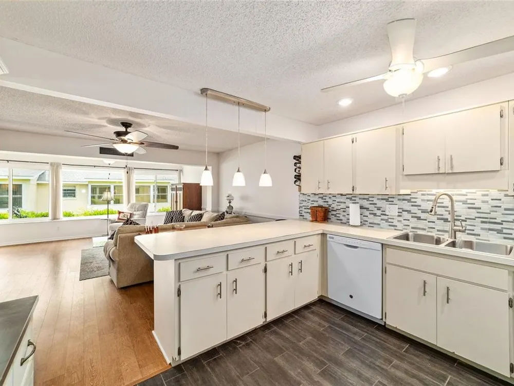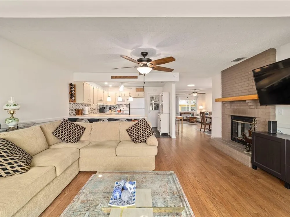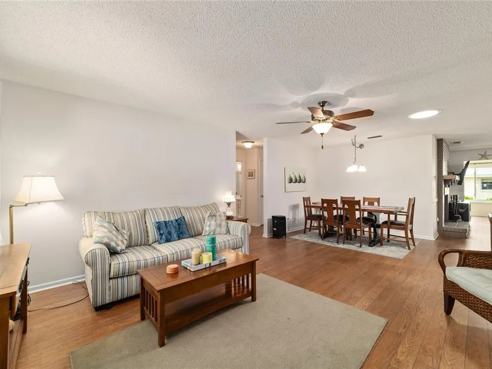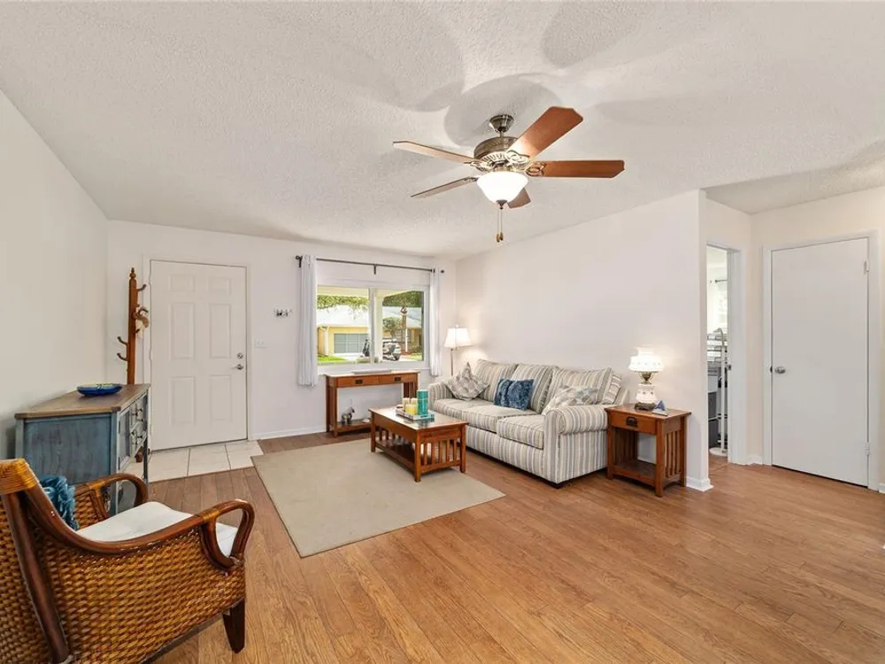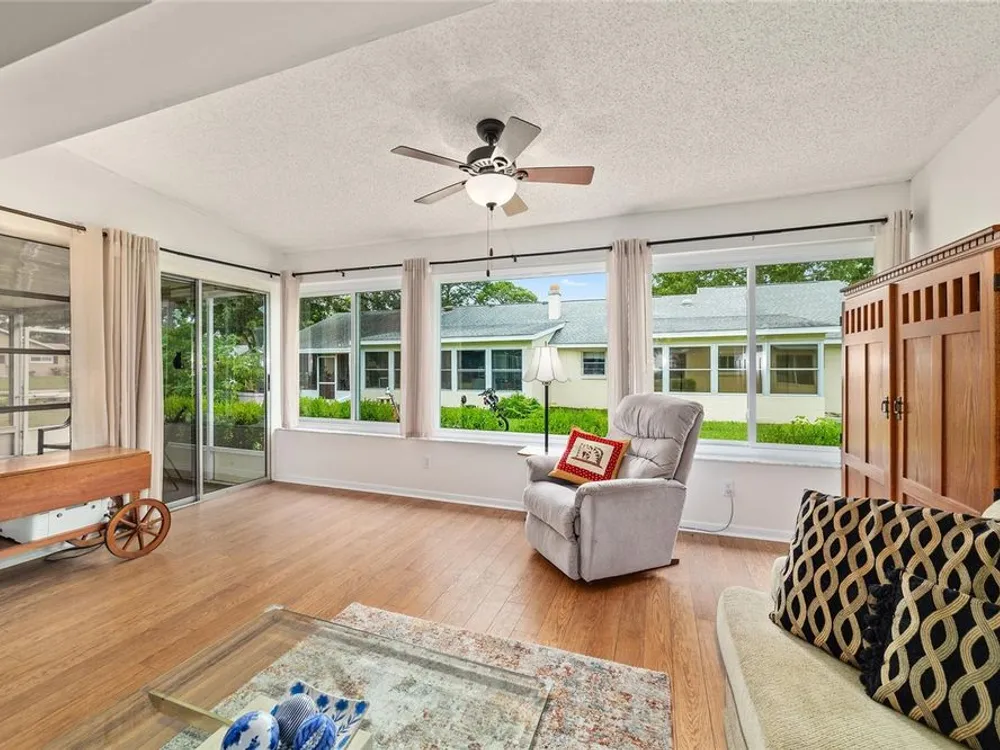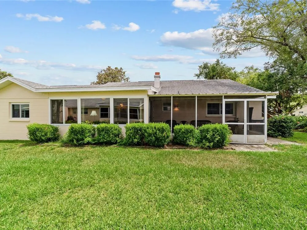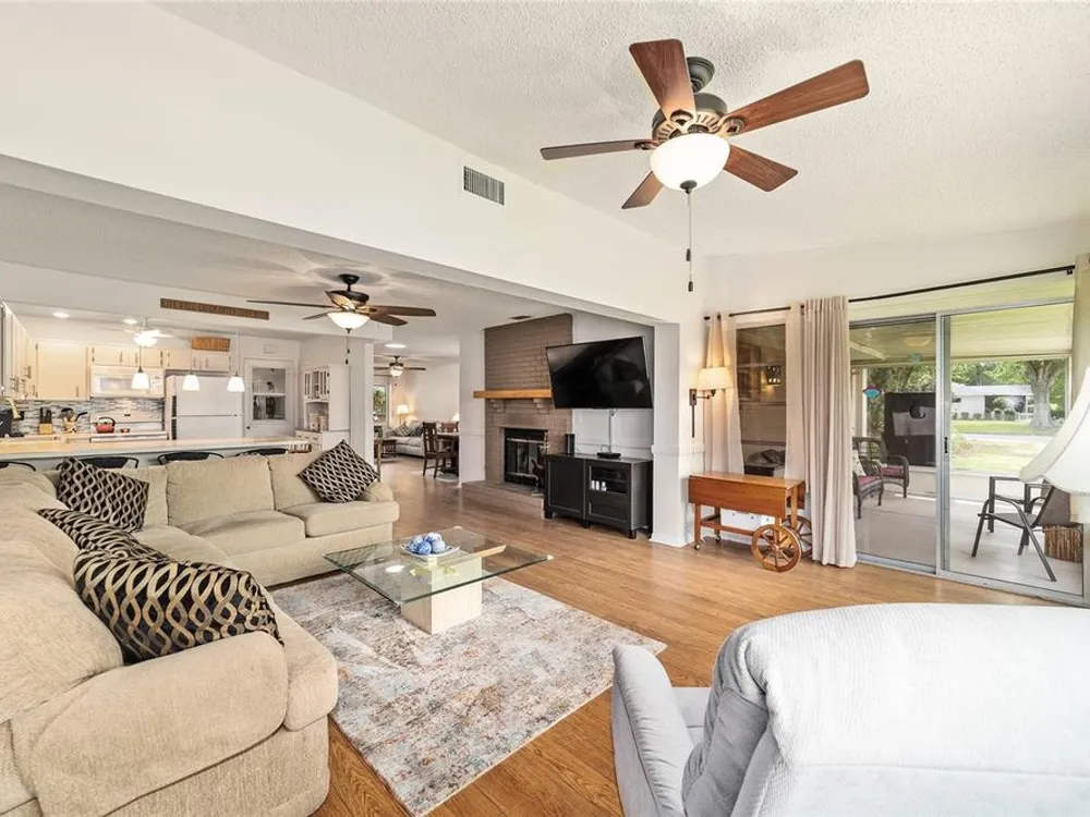 Now Offered at $169,900 - Rare End-Unit Newport Villa – Park-Like Corner Lot Here’s your chance to own an expanded Newport end-unit villa in a peaceful, park-like setting within the sought-after 55+ community of On Top of the World. Enjoy your morning coffee on the generous covered front porch while taking in the serene surroundings. Inside, the open Living and Dining areas feel bright and spacious, featuring wood-look laminate flooring throughout and ceramic tile in the bathrooms—no carpet! The Kitchen is light-filled and functional, with a wide snack bar, stylish backsplash, hanging island lights, newer appliances, and plank flooring. Relax or entertain in the oversized Great Room, complete with a wood-burning fireplace, while sliding doors open to a screened patio and convenient covered golf cart parking. This home has been carefully maintained and updated, including new windows (2024), new garage door (2025), roof (2016), AC (2010), attic fan (2015), and a solar tube that adds natural light. A home warranty is also included for added peace of mind. The Master Bedroom offers a walk-in closet and step-in shower, while the Guest Bedroom is generously sized with a deep closet, highlighting the thoughtful layout of this villa. Residents enjoy access to clubhouses, pools, fitness centers, tennis and pickleball courts, hobby studios, dog parks, and golf courses(fee based), all easily reachable by golf cart along with shopping, dining, and medical offices. This rare end-unit won’t last at $169,900—schedule your showing today!
