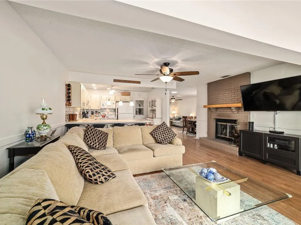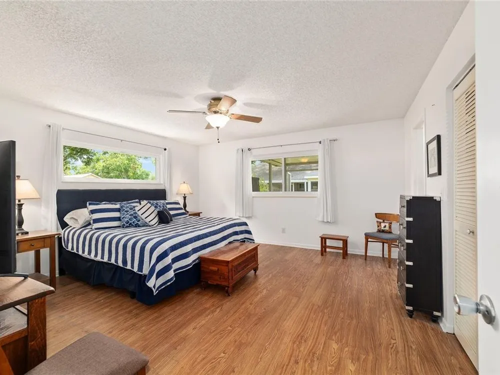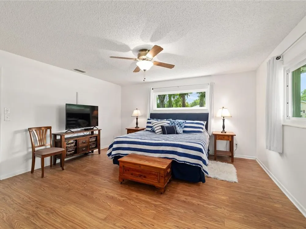 - Ceiling Fan(s), Kitchen/Family Room Combo, Living/Dining Room, Main Level Primary, Walk-In Closet(s), Window Treatments