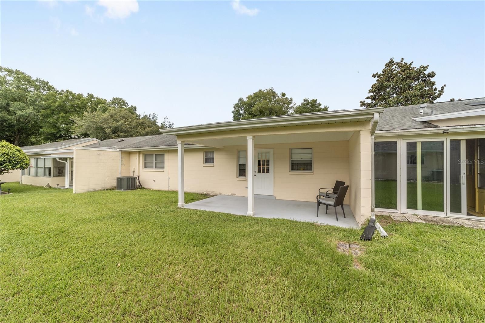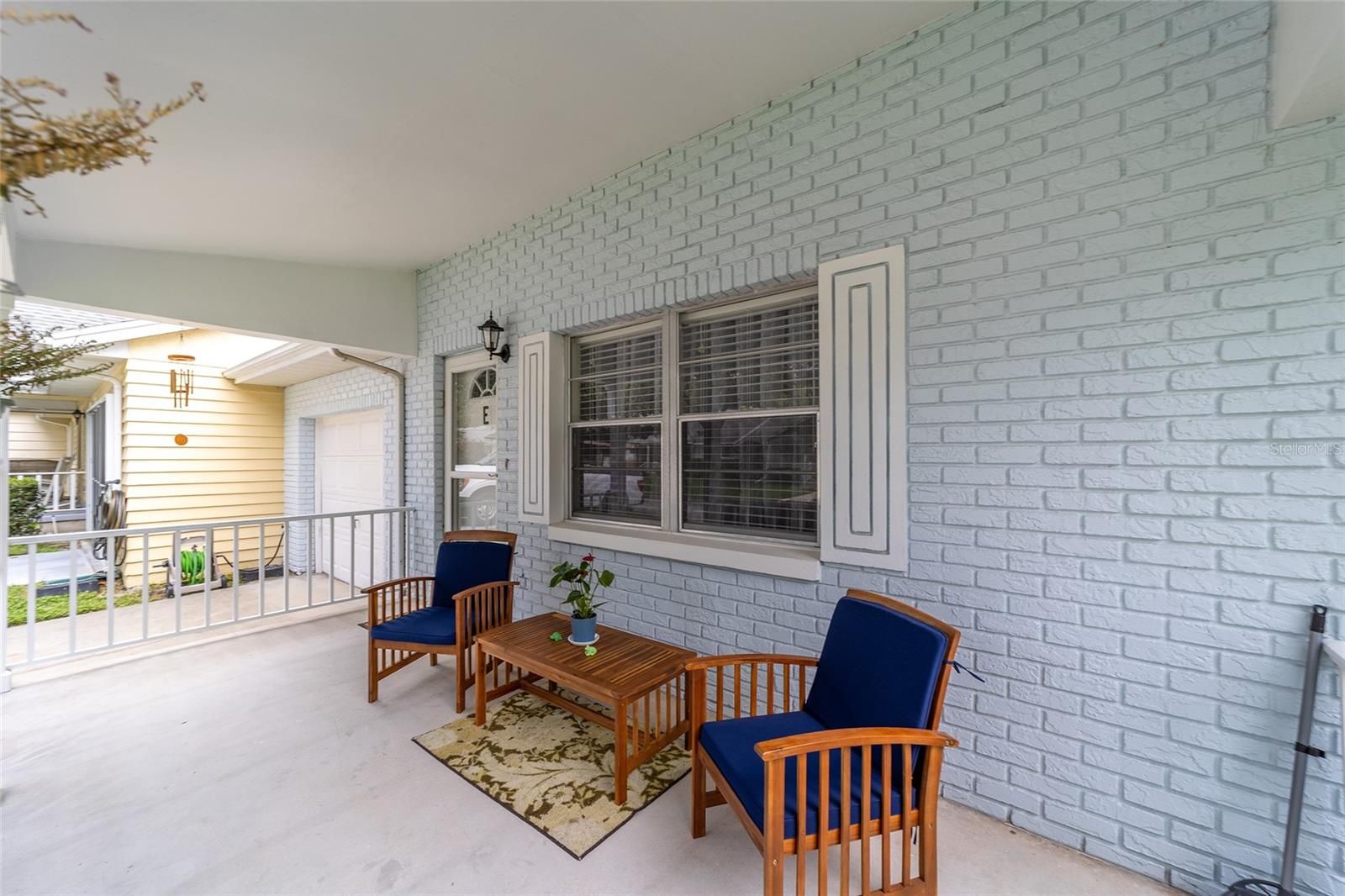 Enjoy MAINTENANCE FREE LIVING at it's best in Ocala's premier retirement community, beautiful On Top Of The World. This two bedroom, two bath villa is PRISTINE. NEW floors, window blinds and light fixtures throughout. newer ROOF, A/C in 2021 and NEW water heater. The master bedroom has plenty of room for a king sized bed as well as dressers, a DEEP WALK-IN CLOSET, large bathroom with a WALK-IN SHOWER and grab bars already installed. The kitchen is light and bright and boasts TALL CABINETS that go all the way to the ceiling. Exit through the back door from the kitchen to the LARGE COVERED LANAI or sit on the COVERED FRONT PORCH so you can greet your neighbors. The garage has been recently painted and features shelving, and washer and dryer which are included. This community offers SO MANY AMENITITES and activities to keep you moving and social. With three golf courses, three heated pools (including one indoor), two state of the art fitness center, pickleball and tennis courts, miniature golf, community gardens, billiard rooms, R/C flying field, RC car track, hobby building, numerous clubs, outdoor pavilions, miles of walking trails and more. There are on site restaurants, a cultural with concerts and events, the Possibilities Learning Center, and hospitals and medical centers nearby. HOA FEE INCLUDE: NEW exterior painting is due to be completed, exterior maintenance and insurance, basic cable, landscaping, trash, and 24/7 guarded gates.