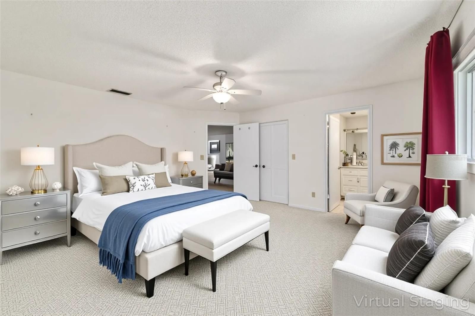 - Ceiling Fan(s), Eat-in Kitchen, Kitchen/Family Room Combo, Living/Dining Room, Main Level Primary, Walk-In Closet(s), Window Treatments