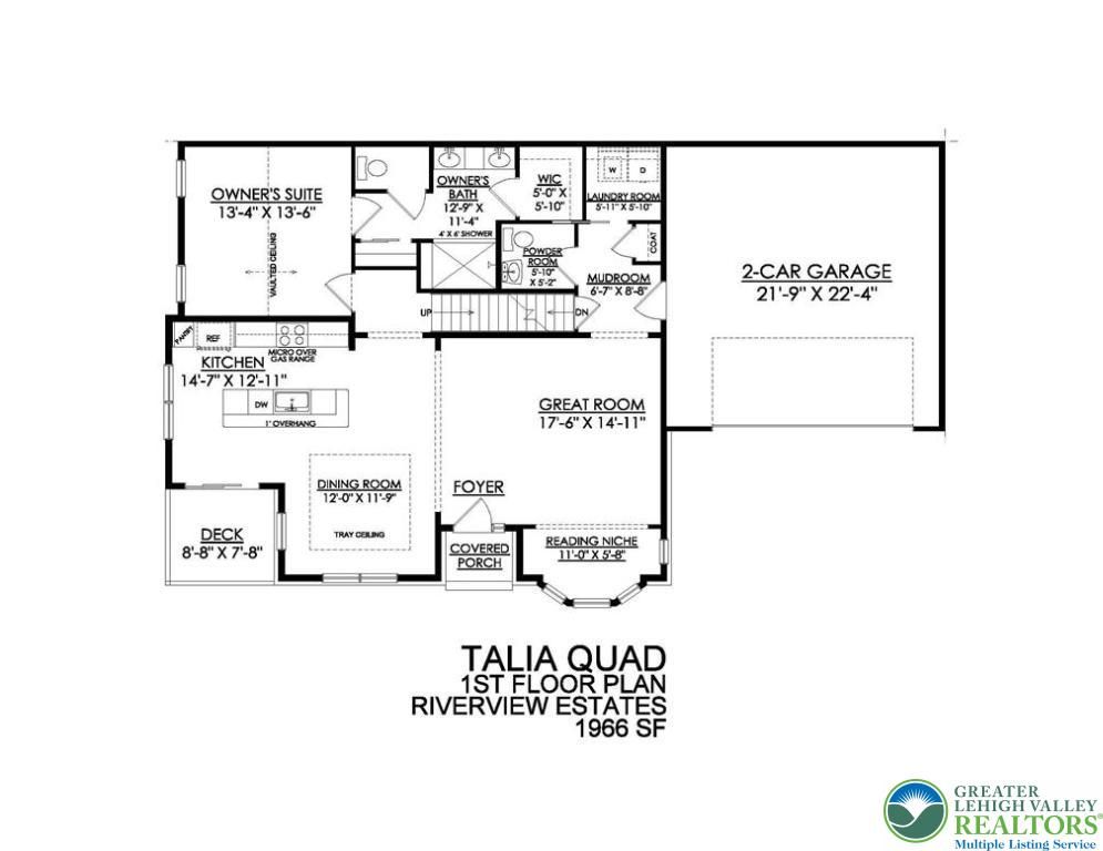 Ready for Move In! LAST HOME IN COMMUNITY! Welcome to the Talia, an elegant 55+ Active Adult home, thoughtfully designed to offer a luxurious lifestyle. Entering through the covered Porch you will find immediately find the heart of the home, a spacious Great Room, which seamlessly flows into a connected Reading Niche illuminated by a wall of windows, providing a cozy retreat bathed in natural light. Whether it's lounging with a book or entertaining guests, this space offers versatility and charm. Beyond the Great Room you will find a Mudroom with access to the Two-Car Garage, a first-floor Laundry Room, and a Powder Room, adding convenience and efficiency to daily living. The well-designed Kitchen features a spacious island with an overhang for casual dining and sliding glass doors that open to a charming deck, making a perfect indoor-outdoor connection. The Dining Room, adorned with a tray ceiling, enhances the dining experience, making every meal a delightful occasion. Closing cost credit available with preferred lender.