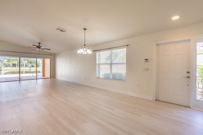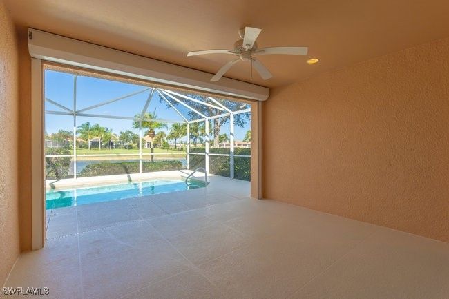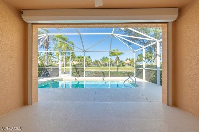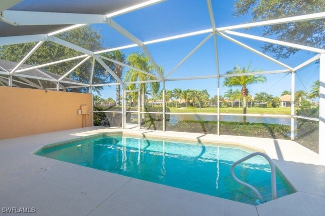 WOW!!!!! JUST REDUCED!!!! MAKING THIS ONE OF THE BEST DEALS WITH A POOL IN VERONAWALK . NEWLY PAINTED, LAMINATE FLOORING, DETAILED PAITIO AND NEW SCREENS,AND DID I MENTION THE WESTERLY VIEWS !!!!!!!! This Three bedrooms/two bath Carrington attached villa is just that. Seated in the cul de sac at the end of a small court, this home is both private and quiet. This open concept unit has tall ceilings FOR A SPACIOUS ATMOSPHERE. The centrally located kitchen has light cabinetry and counters. A breakfast bar offers additional dining space. Your primary suite has wood plank laminate flooring and connects to a bath with dual sink vanity, walk-in shower and private water closet. A generous sized closet is accessed from the bath. The full laundry room with plentiful storage and wash sink is entered from a two car garage. Bedroom located near the front entrance can also be utilized as a den or office. Your covered lanai opens into a screen enclosure that surrounds an inviting pool. Enjoy sunsets while relaxing and watching your water and bridge view. You will be storm ready with ease as windows have accordion shutters and the covered lanai has an electric unit.