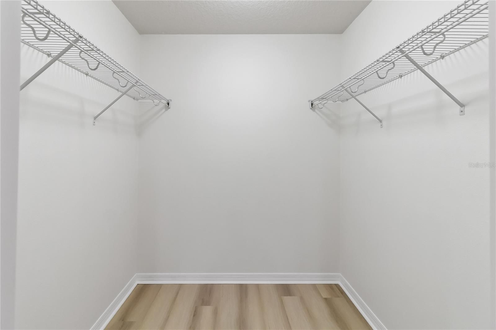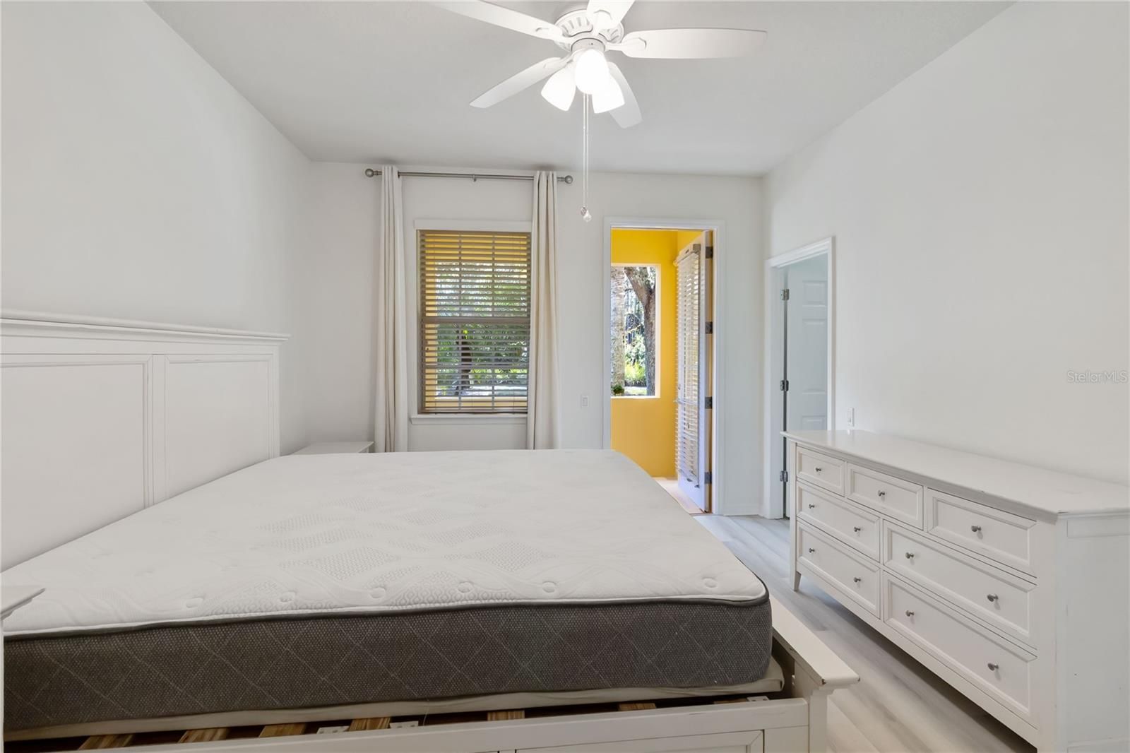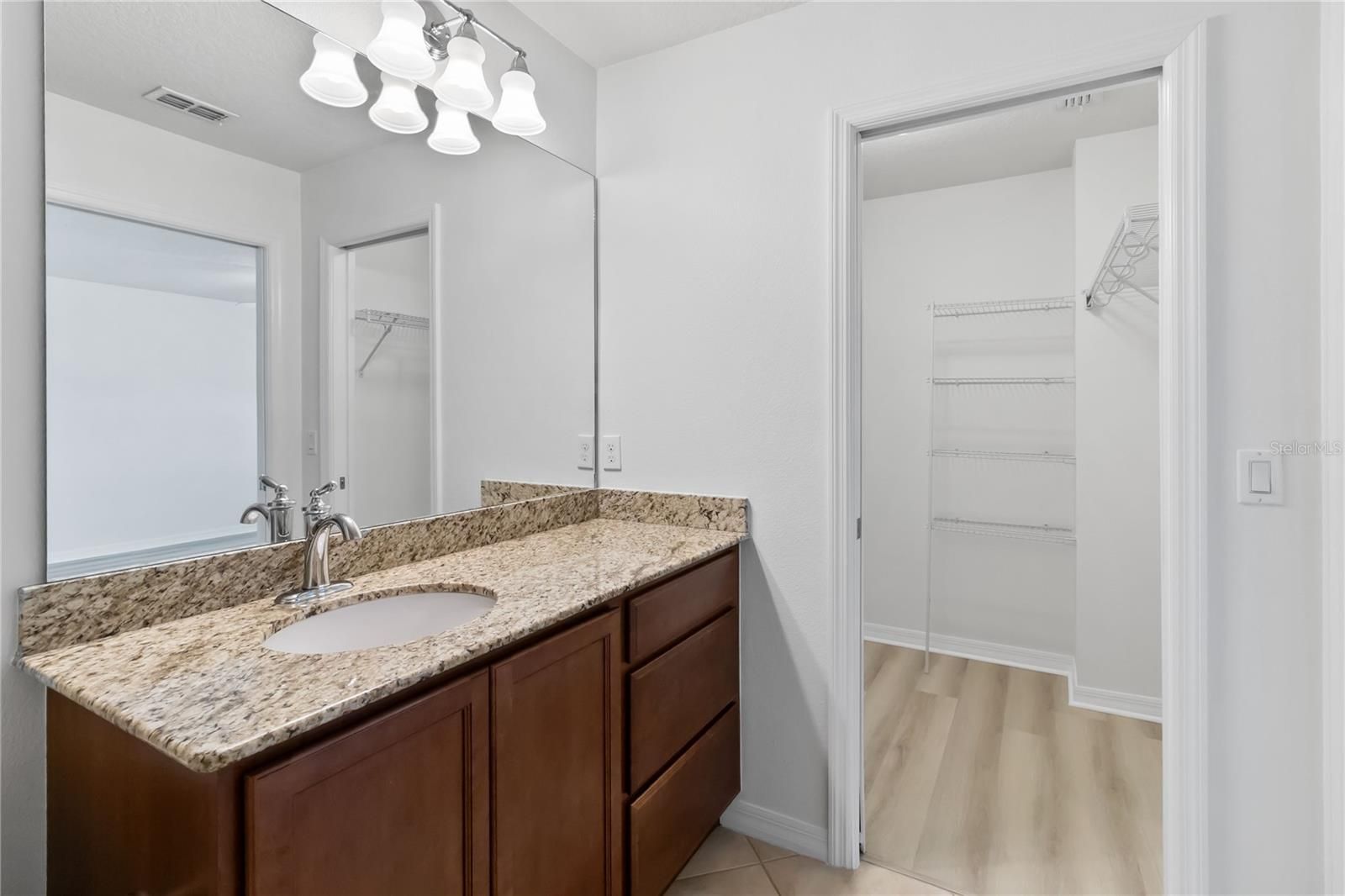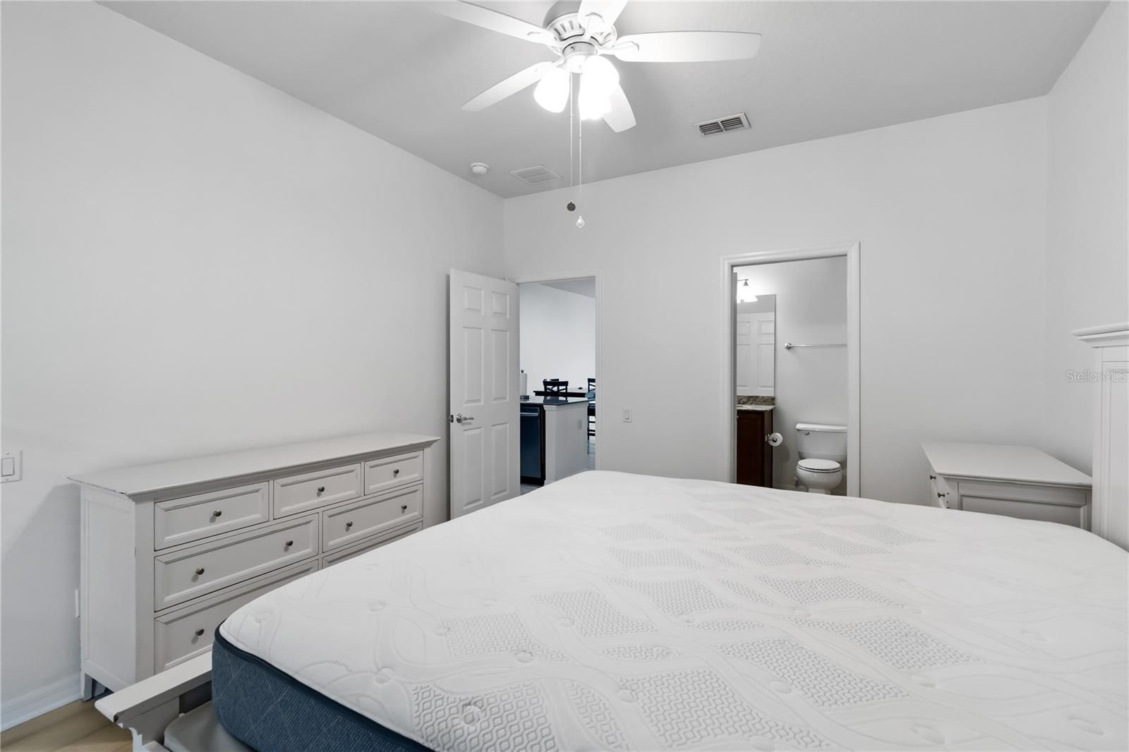 - Ceiling Fan(s), Open Floorplan, Main Level Primary, Upper Level Primary, Solid-Wood Cabinets, Stone Counters, Thermostat, Walk-In Closet(s)