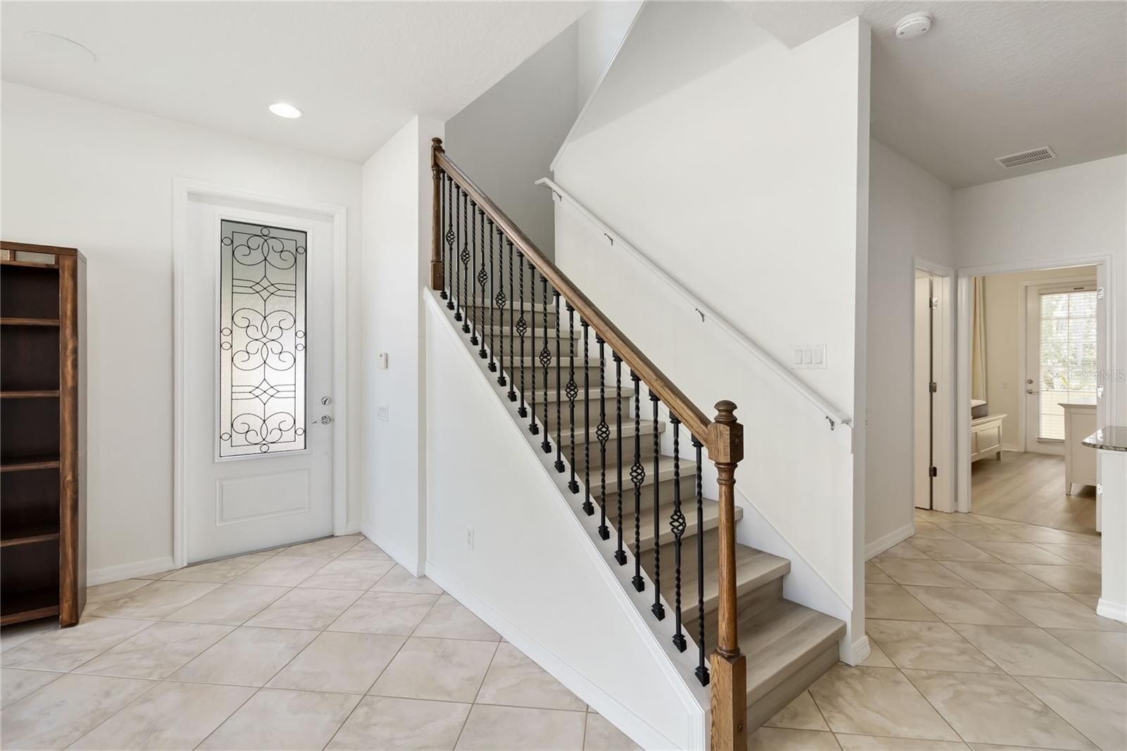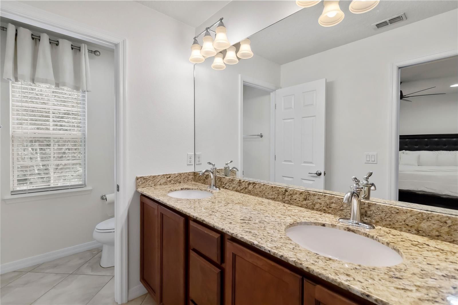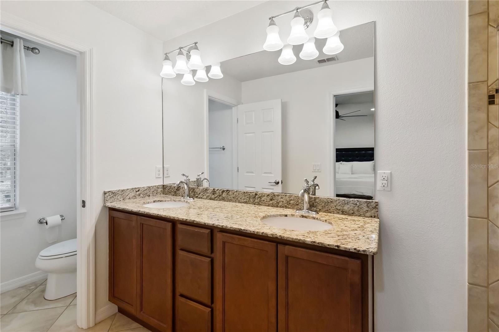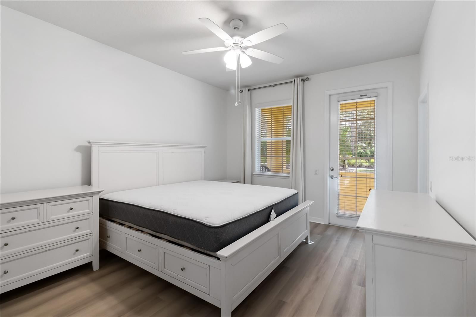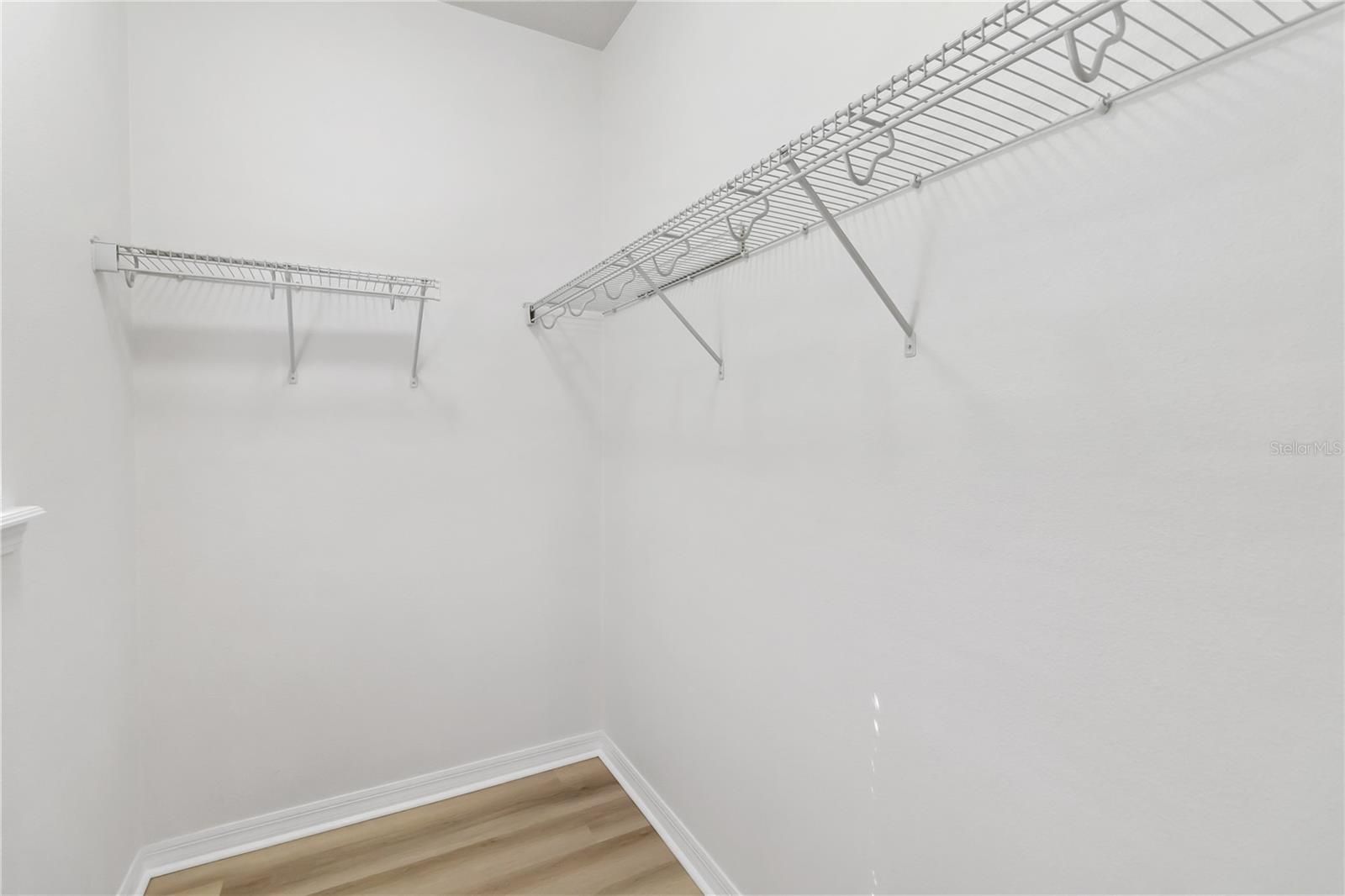 - Ceiling Fan(s), Open Floorplan, Main Level Primary, Upper Level Primary, Solid-Wood Cabinets, Stone Counters, Thermostat, Walk-In Closet(s)