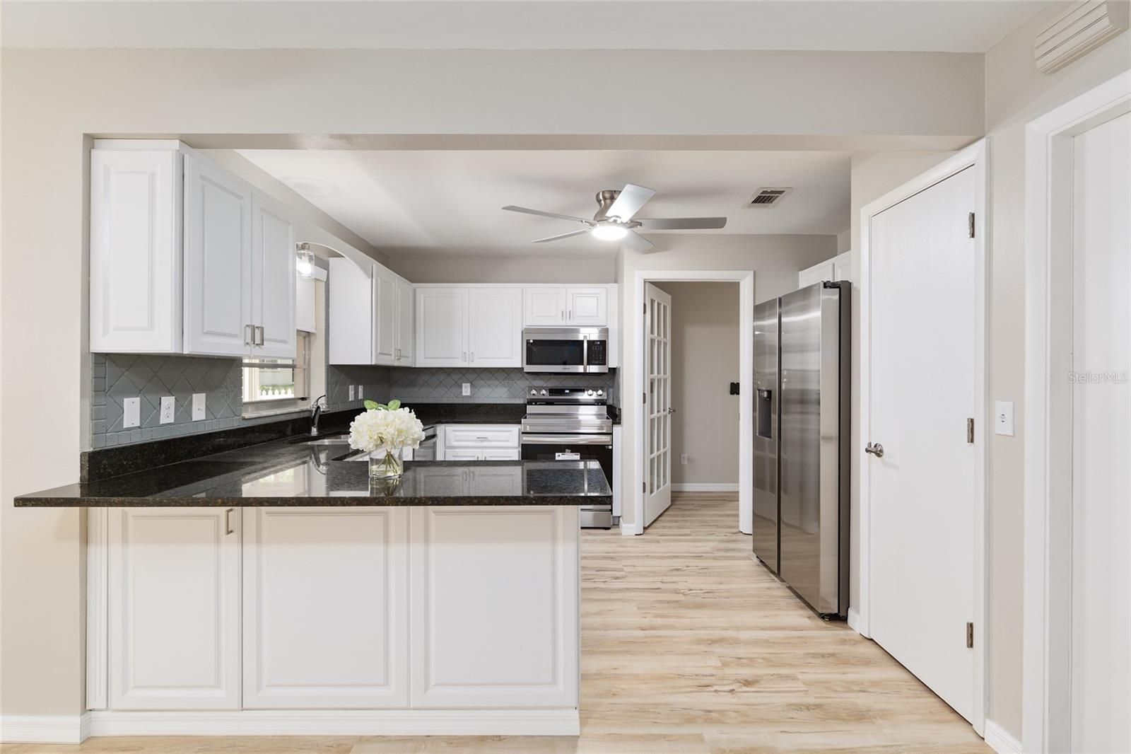 HUGE PRICE DROP! Upgraded and remodeled, popular Montgomery Model home, on a quiet tree-lined street in the Friendship Colony area of On Top of the World. This beautiful 2-bedroom, 2-bathroom, 2-car garage home has been renovated with Luxury Vinyl Plank throughout (no carpet), new recessed lighting and fans, and the kitchen features granite countertops, modern backsplash, and new stainless-steel appliances. The large family room is located next to the kitchen, perfect for entertaining. NO POPCORN Ceilings...popcorn ceilings have been removed and the whole house has been freshly painted top to bottom both int/ext. Bathrooms have been updated with new vanities, lighting and mirrors. Step-in shower enclosure in primary. 2023 ROOF, HVAC inside unit 2020, HVAC outside unit 2019. This beautiful home also boasts a 3-season lanai and a fenced back yard perfect for your fur babies! Don't miss this one- call for your private showing today! On Top of the World is Ocala's premier, gated, active 55+ community, loaded with amenities and includes golf cart access to three shopping centers. Call for more information.