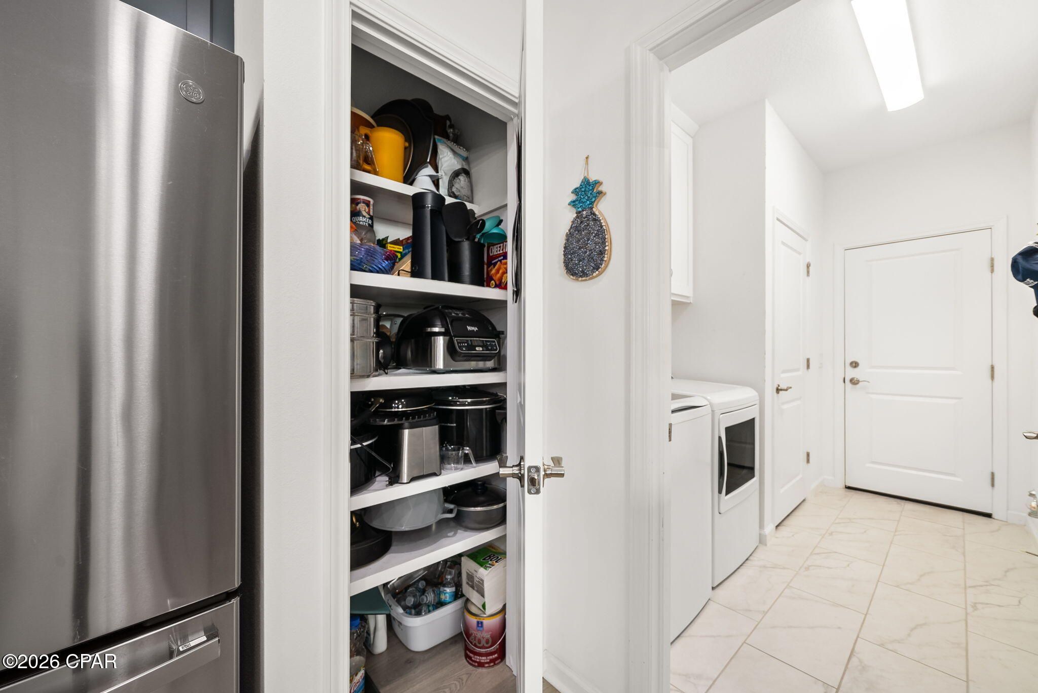 Fins Up! Dive into the ''no worries'' lifestyle with this stunning Camellia cottage in the highly sought-after Phase 4A of Latitude Margaritaville Watersound. Walking distance to the town center, dog park and the retail; this home is packed with upgrades, making it the perfect retreat for those ready to live on ''island time.'' Home Highlights: Chef's Island Kitchen: Features an extended kitchen island with Level 1 Luna Pearl granite , custom Level 3 white tile backsplash , and sleek 42'' Grey Hound cabinetry with crown molding. Upgraded Living Spaces: Bright and airy with LED recessed lighting throughout the main living areas and a convenient pocket door added to the Master Bath for a streamlined flow. Enjoy the perfect blend of style and function with a built-in TV focal wall, finished with decorative fluted columns and a custom mantel-style header. The neutral tones perfectly complement the vibrant coastal teal ceiling beams and driftwood-inspired flooring. Stylish Master Suite: Relax in a master bath featuring Level 3 Calacatta Empire floor tile and elegant granite countertops. Thoughtful Additions: Laundry Room: Custom cabinets added to the ceiling for maximum storage and GE Profile Washer and Dryer. Garage: Professional epoxy flooring for a clean, durable finish, plus a utility sink and full insulation package plus garage door insulation! From the whole-house gutters to the stainless steel preferred appliance package, every detail has been handled. Just bring your flip-flops and start living the dream! INCLUDED with the purchase of this home is the refrigerator in the garage, the commercial ice maker in the garage, the ice chest in the garage and the great room TV with Bose Sound Bar. All other furnishings are for sale. See the documents section for items not for sale and full list of upgrades!