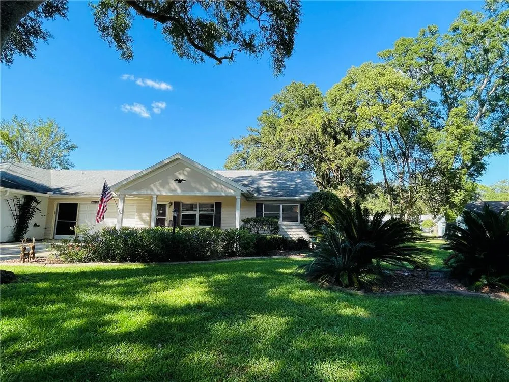 The Florida Lifestyle awaits! Don't miss this End Unit villa with maintenance free, wide open, greenspace around your home. Enjoy your mornings sipping coffee and reading the paper on the covered front porch, in the enclosed lanai or the back patio, all while enjoying the sounds of nature and lush landscaping. There is no carpet inside this 2 bedroom/2 bath home with laminate and tile flooring throughout. The primary bedroom features a walk-in closet, and ensuite bathroom with a walk-in mobility tub with hydrotherapy jets for added comfort and relaxation. There are 2 living areas providing options for tv rooms, a craft room, and space to entertain - whatever meets your needs. Your double driveway leads to the oversized 2 car garage with tons of storage! There are screens for the garage door to bring in the breeze while tinkering. Park your golf cart in here and take a fun ride to grab groceries, or to the hardware store, enjoy dining out, or zip over to one of the pools! On Top of the World is a gated 55+ community with activities galore! Pools, biking and walking trails, golf, tennis, dog parks, pickleball, racquetball, along with so many clubs and events to be a part of. Hobby, fitness and recreation centers, an RC flying field and RC car track, bocce ball, horseshoes, archery, indoor racquetball, and so much more! Lawn care, tree maintenance, exterior paint, pressure washing, and trash are included in the maintenance fee. Roof and AC are 2017. There is nothing left to do - but move right in!