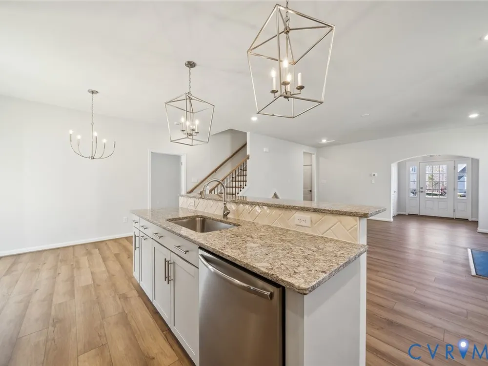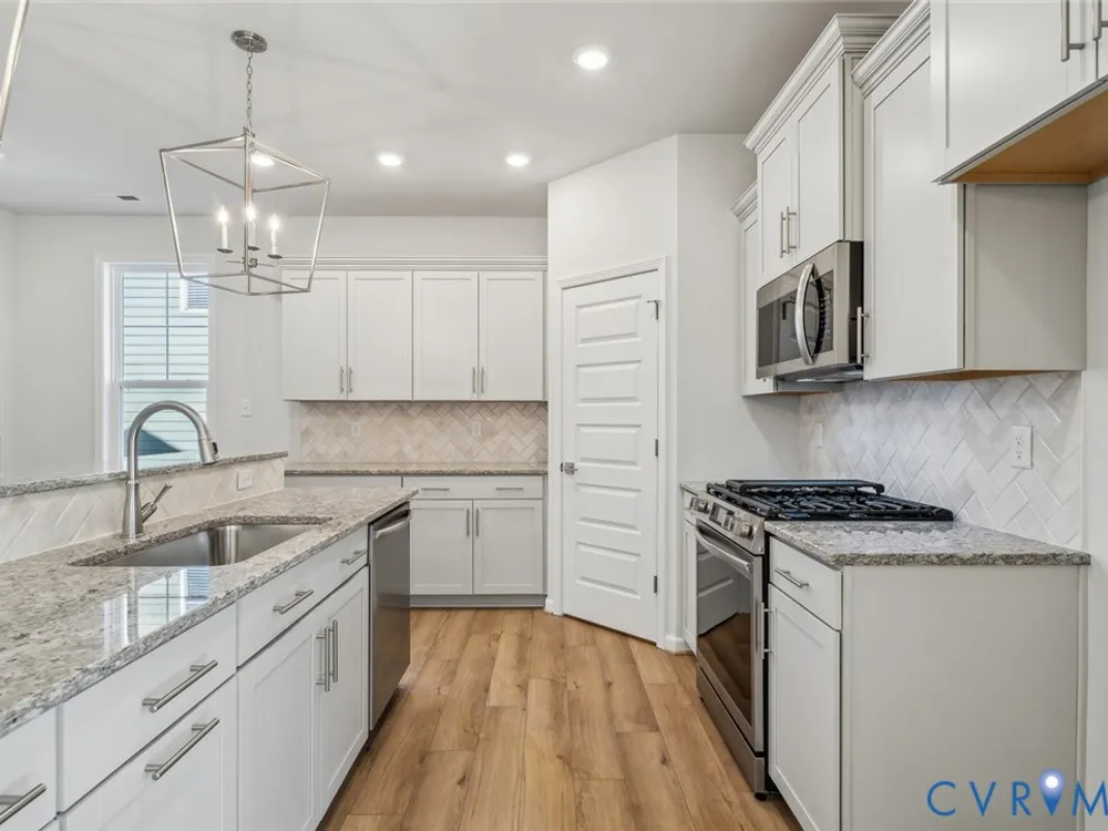 *MOVE IN READY*The Lockerly is a stunning two-story home spanning 1,754 square feet, featuring three bedrooms and two-and-one-half baths. Its open-concept kitchen is elegantly designed with frost-colored cabinets, moon white granite countertops, a mesmerizing spirit backsplash, and a spacious center island with a single stainless steel sink, all complemented by Frigidaire Gallery appliances. Overlooking the expansive great room, the kitchen seamlessly connects to a cozy gas fireplace with a Richland mantle and an eat-in area that opens onto the covered porch. The first-floor primary suite boasts a generous walk-in closet, double vanity sinks, and a walk-in shower, with a conveniently located laundry room and powder room nearby. Upstairs, two secondary bedrooms share a full bath. Additional highlights include luxury vinyl plank flooring throughout the first-floor common areas, a pet pad, a walk-in pantry, and a two-car front-load garage. The exterior showcases hardie plank cobblestone siding, Evelyn Bay brick accents, and a Wedgwood blue front door with glass panels, all topped with a weathered wood-colored shingle roof. *Photos for new homes may vary from the actual home available for sale. We often showcase pictures from a model home of the same style*