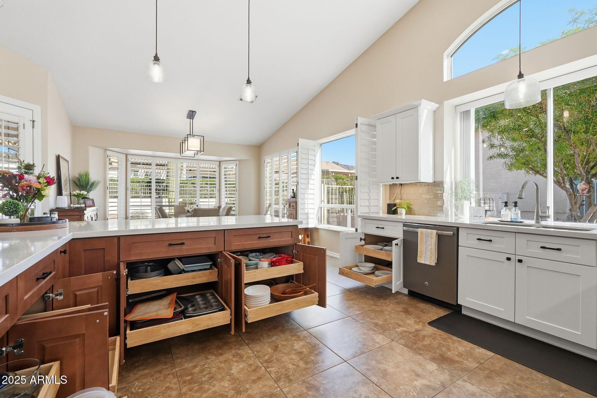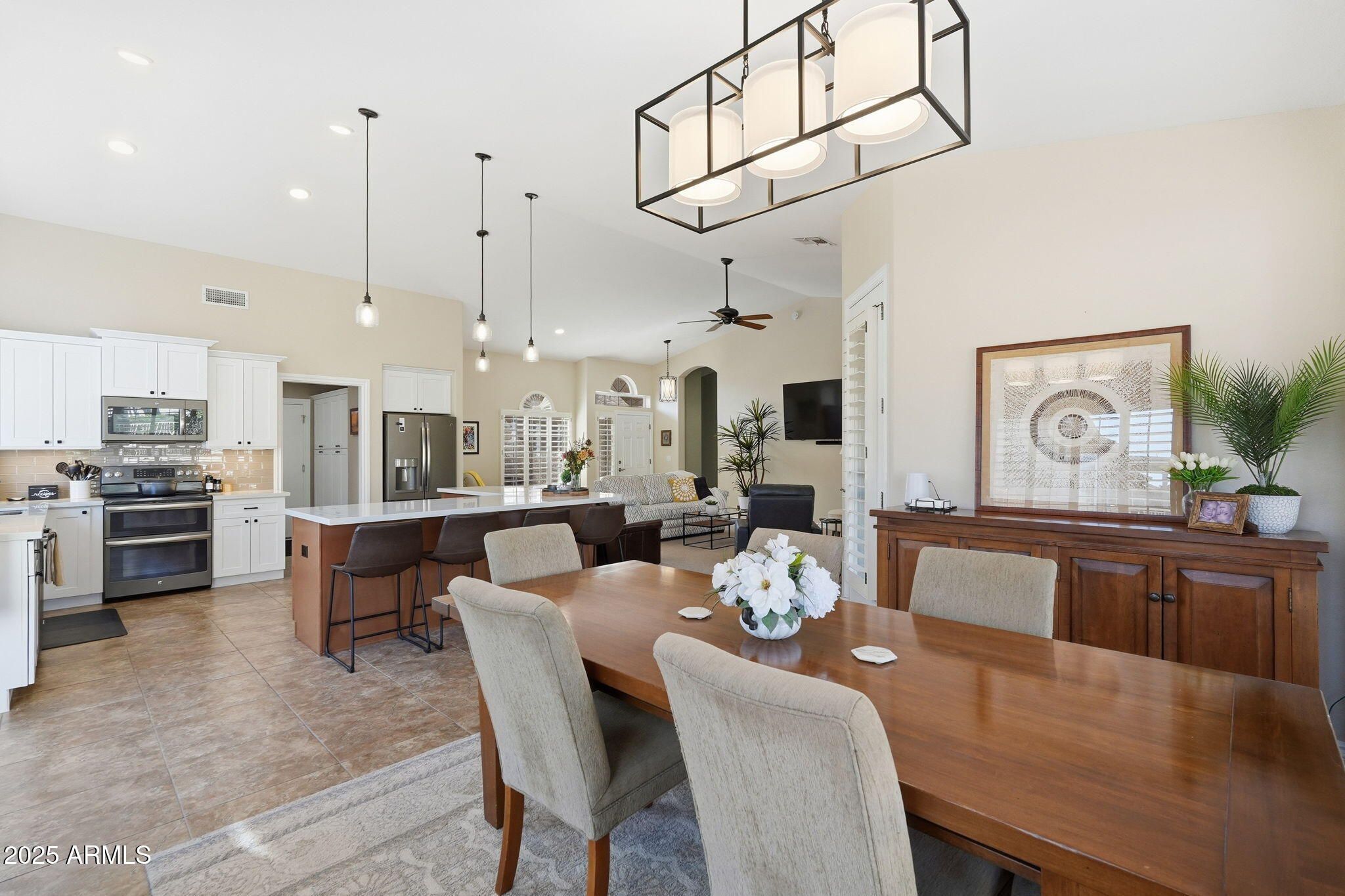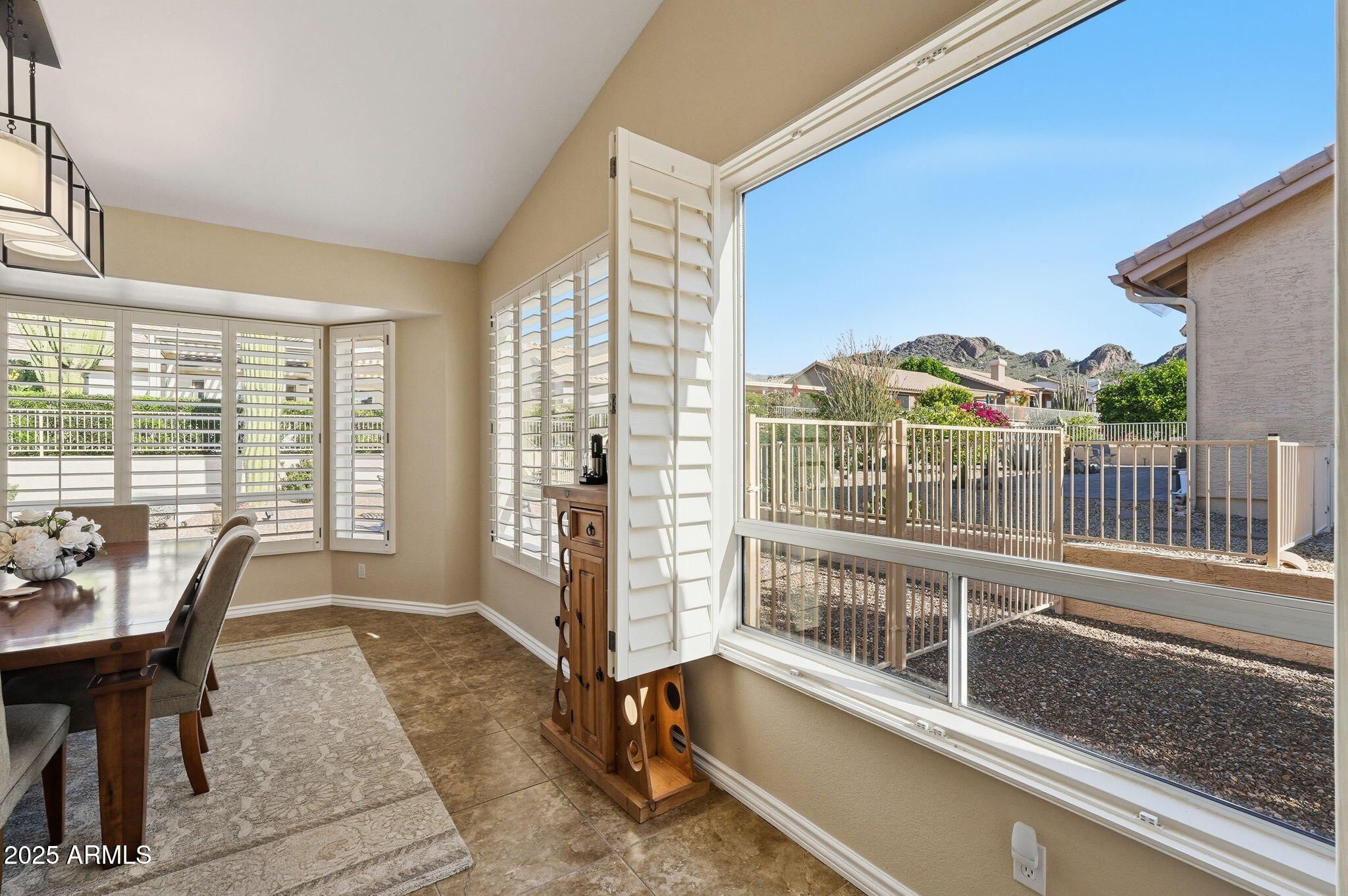 Your clients will be delighted from the moment they arrive—especially with the exciting potential for a rare three-car garage, a highly desirable feature in MountainBrook Village. Their eyes will dance across the exceptional quality and thoughtful upgrades found throughout this meticulous home. Over $200,000 in improvements have been invested to create a truly move-in-ready residence that shines from every angle. This home features a rare open floor plan, highly sought after in MountainBrook Village. The living room is stunning, showcasing new two-tone paint, new baseboards, stylish lighting, soaring vaulted ceilings, a cozy wood-burning fireplace, plantation shutters, and expansive windows that frame breathtaking mountain views while filling the space with natural light. The kitchen is beyond impressive, offering new 42-inch cabinetry with crown molding, beautiful quartz countertops with a seating bar, pull-out shelves, a designer backsplash, and upgraded dark stainless steel appliances. A custom butler's bar adds additional cabinetry, a drink station, refrigerator, and sink to this already perfect space The dual owner's suite layout provides spacious bedrooms and walk-in closets. The guest bathroom has been tastefully updated with an oversized walk-in shower, quartz countertops, and upgraded lighting. The primary bath features a jetted tub, quartz countertops, upgraded lighting, and new shower doors. Outdoor living is equally impressive. The front patio boasts new pavers with river rock and pavers lining the driveway. The fully fenced backyard offers both sun and shade, featuring a large paver patio and a high-quality aluminum pergolaideal for relaxing or entertaining. Major systems have already been addressed, including a new roof underlayment and new A/C, providing peace of mind for years to come. Solar panels help reduce utility costs, enhancing the home's efficiency. With magazine-worthy beauty, comfort, efficiency, low-maintenance living, and spectacular mountain views, this exceptional home is located in Gold Canyon's premier active adult community. This home is truly a must-see.