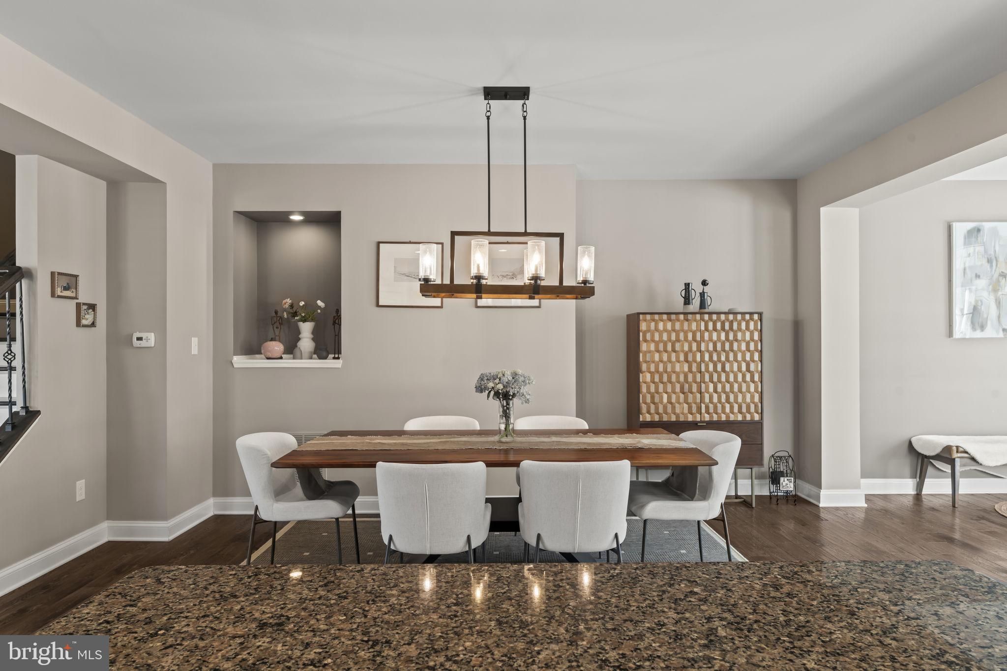 Welcome to 87 Isabelle Court, a beautiful end-unit townhome located in one of Marlton’s most desirable neighborhoods. Offering approximately 2,800 square feet of living space, this spacious home delivers exceptional value, abundant natural light, and modern construction built in 2016—meaning the roof, mechanicals, and major systems are well within their life expectancy. The end-unit location provides extra windows and enhanced sunlight throughout the home. The first floor features a large living area perfect for entertaining or relaxing, along with a convenient half bathroom. It also houses the mechanical systems. The home is beautifully decorated and shows pride of ownership at every turn. The second floor boasts an impressive open-concept layout, including a spacious living room, a large eat-in kitchen with dining area, and an additional bonus space ideal for hosting gatherings with a long dining table. The kitchen is highlighted by recessed lighting, stainless steel appliances, granite countertops, and a stunning 8-foot island, making it the heart of the home. Hardwood floors run through most of the residence, adding warmth and elegance. Just off the second level, step outside onto a large private deck overlooking peaceful wooded views—perfect for morning coffee or evening unwinding. The third floor offers three generously sized bedrooms, a full hall bathroom, a conveniently located laundry room, and a luxurious primary suite featuring vaulted ceilings, a walk-in closet, and ample space to retreat at the end of the day. The entire third floor showcases brand-new hardwood flooring. This is a rare opportunity to own a spacious, modern townhome in a prestigious Marlton community—offering comfort, style, and tremendous value for the price. Don’t miss it.