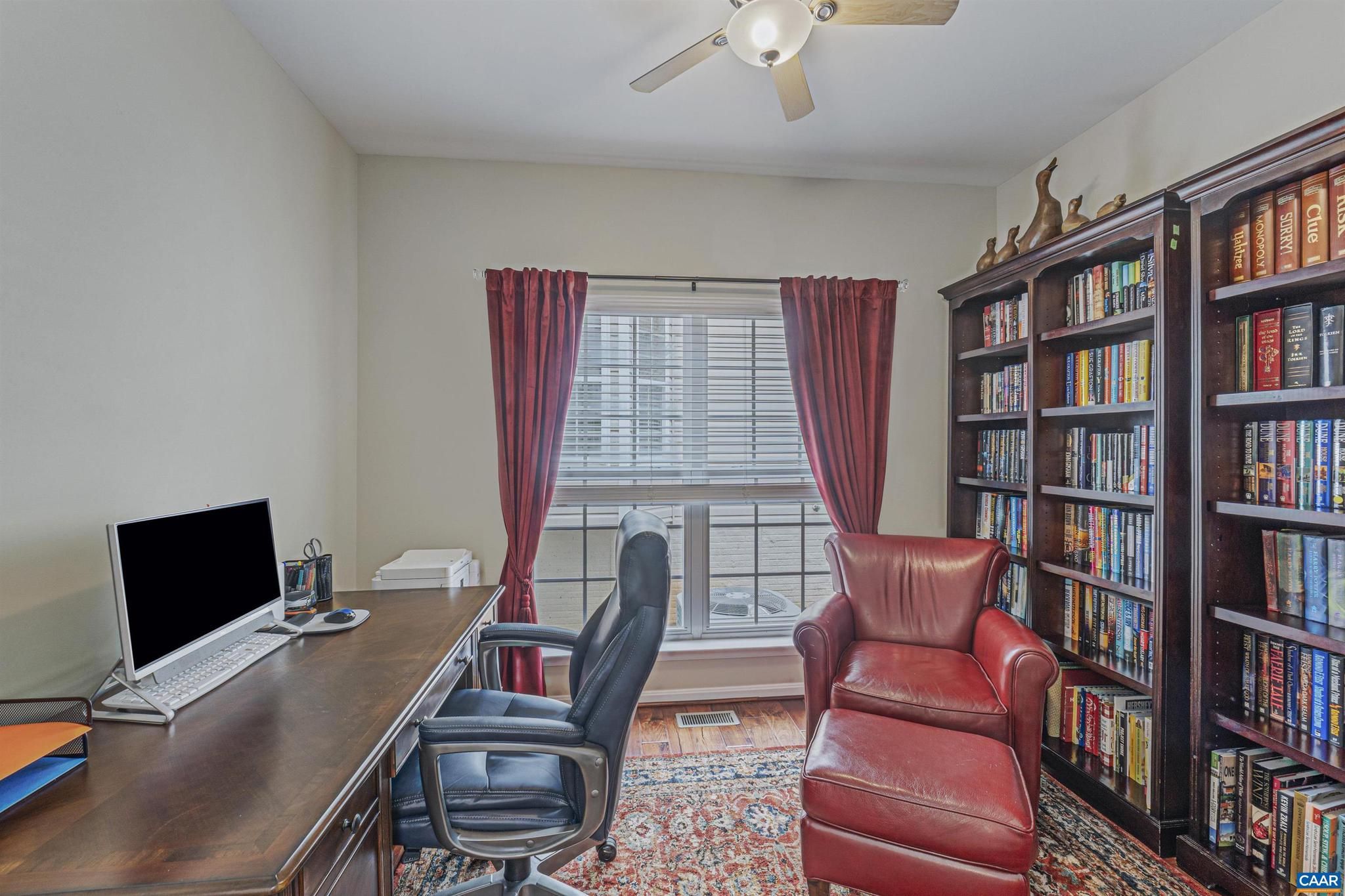 Rare opportunity for an updated one-level home in the area's premier 55+ active living community. Designed for easy living, this spacious home features 3 generously-sized bedrooms and 3 full bathrooms?ideal for everyday comfort and hosting guests. Thoughtful updates include complete interior painting, HVAC (2023), walk-in primary shower, electrostatic water treatment system, interior lighting, and basement flooring. Dual walk-in closets in the primary bedroom and built-in shelving in the pantry and primary bedroom enhance storage and functionality. Charming features like Virginia hand-scraped oak floors, a gas fireplace, built-in bookcases, and heated tile floors in the primary bath create a cozy atmosphere. Enjoy year-round natural light in the cheery sunroom. Step outside to an awning-covered trex deck with views of the maintained, landscaped common area. A whole-house generator and landscaping irrigation system are bonus worry-free improvements. Four Seasons residents enjoy access to the community clubhouse, indoor pool, a fitness studio, social events, and walking trails around a private 7-acre lake. The HOA fee covers trash pickup, snow removal, and yard maintenance.,Solid Surface Counter,Wood Cabinets,Fireplace in Living Room