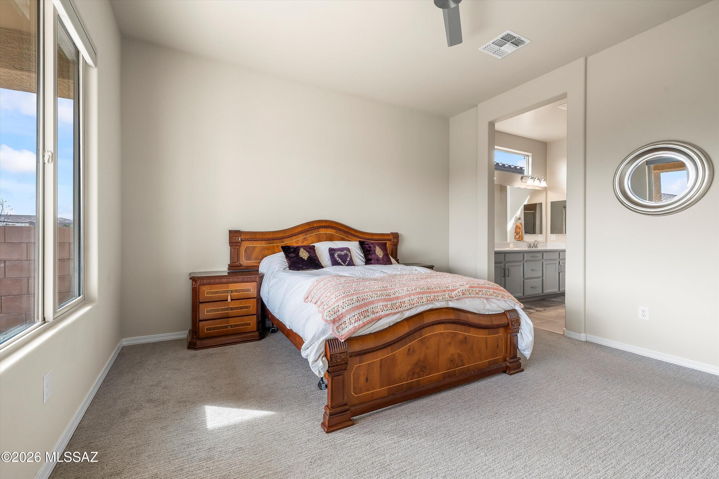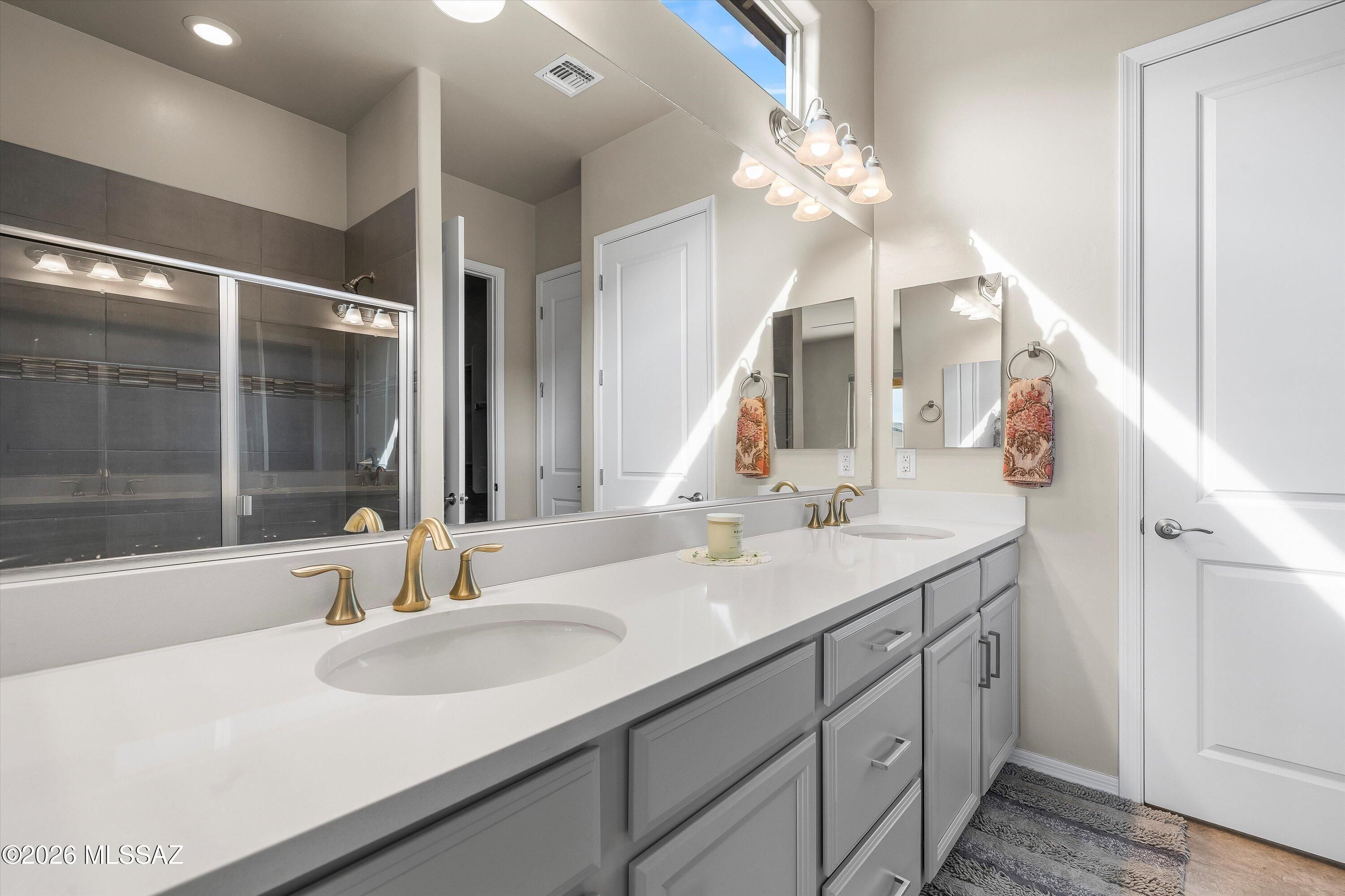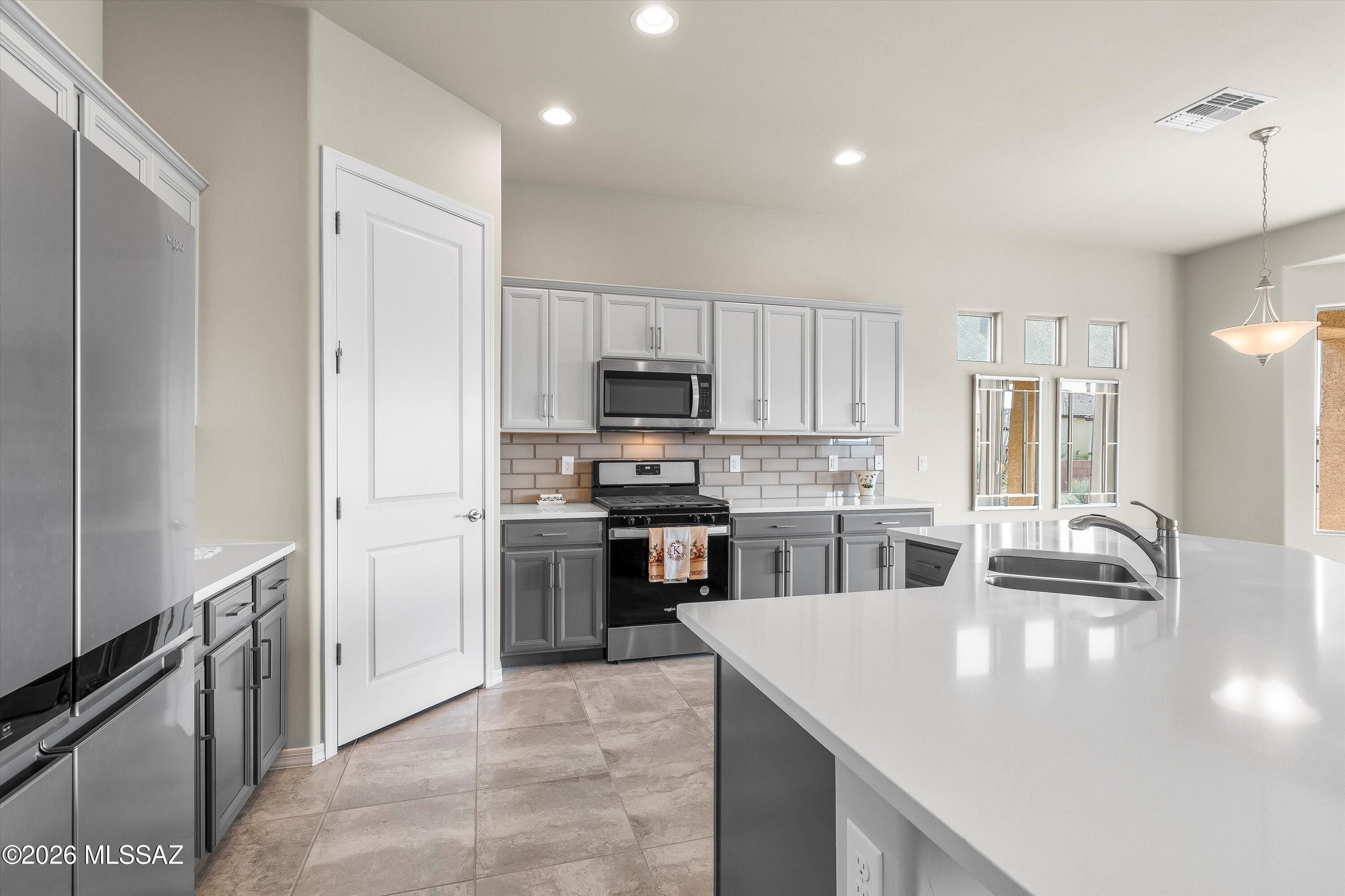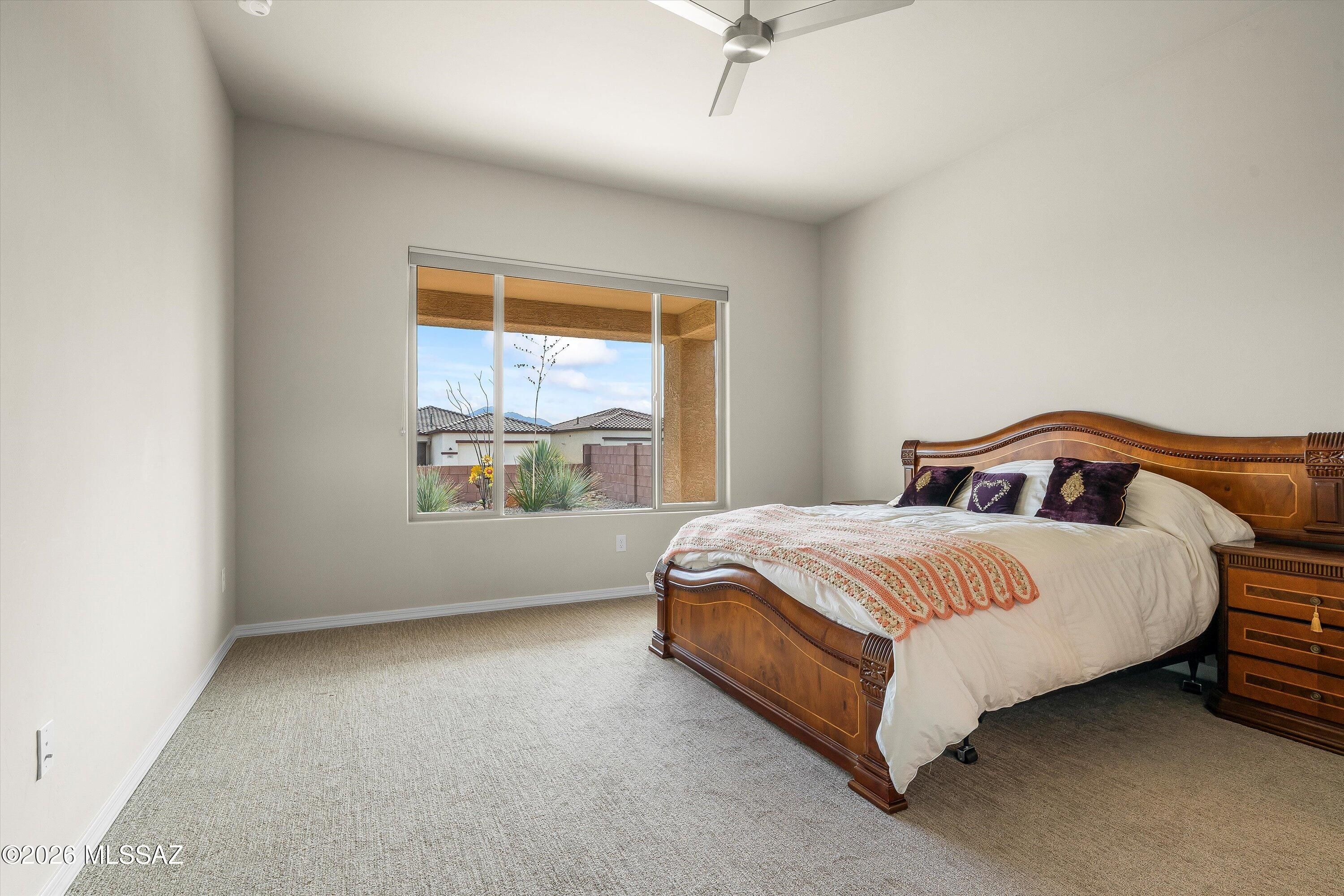 Seller will accept, or counter offers between $399,000 and $440,000. Owner/Agent - This home has prime orientation with the backyard facing beautiful Santa Rita Mountains. Includes rear yard fence line backs to common area. Open floor plan with no wasted space. Includes large pantry and kitchen island, quartz countertops, cabinets with soft close doors and a full length rear patio. One can appreciate the special evening shade, looking at the mountains. Huge walk-in closest and dual vanities in the owners beautiful suite. All cabinets, countertops and flooring have been upgraded for this very special designer inventory home. Garage length has been extended by 4 feet. 2 Bedrooms with 2 full Bathrooms, plus one den/office/spare room.