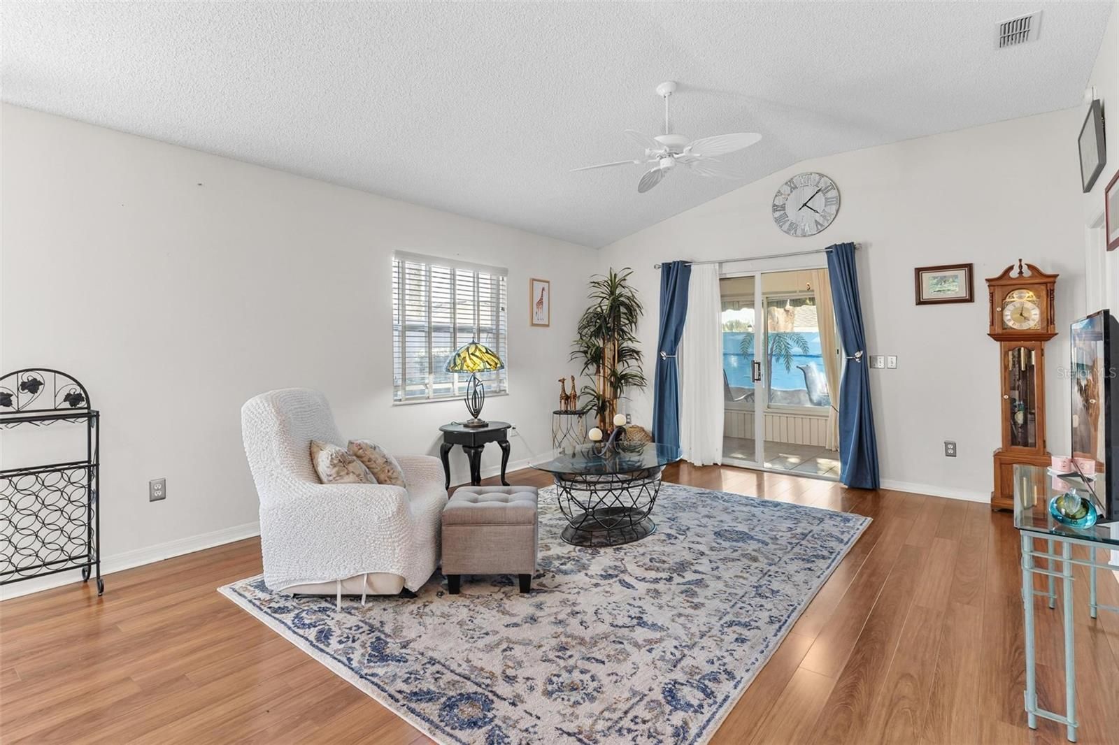 - Ceiling Fan(s), Eat-in Kitchen, High Ceilings, Kitchen/Family Room Combo, Living/Dining Room, Open Floorplan, Window Treatments