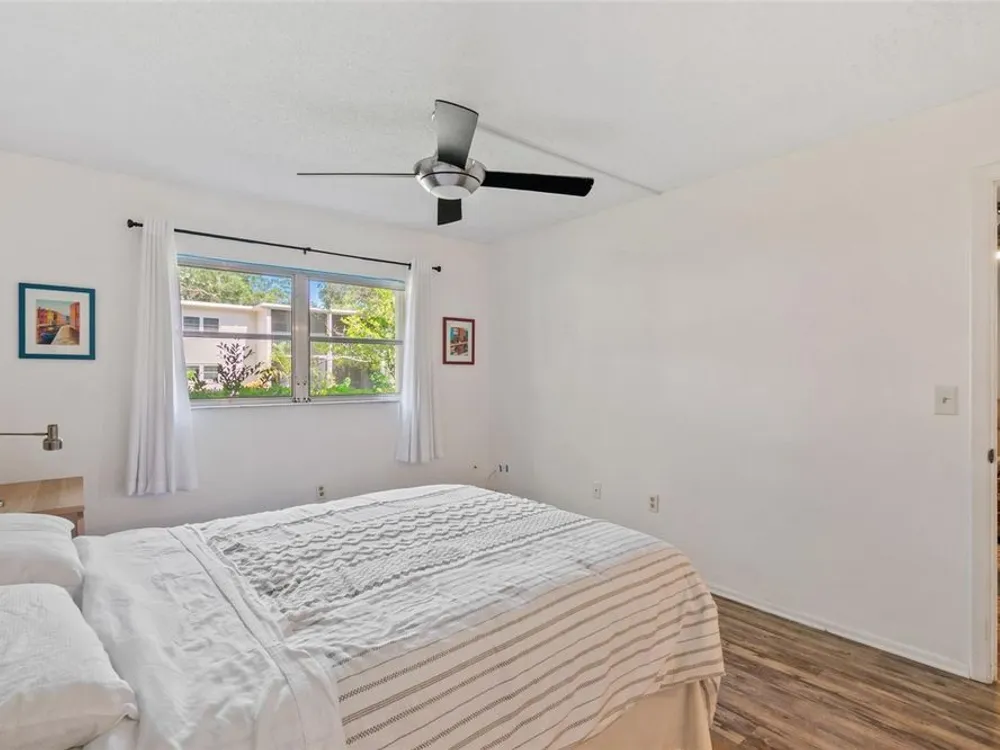 Welcome to Patrician Oaks where comfort meets convenience in the heart of Dunedin! This beautifully updated GROUND FLOOR 2-bedroom, 1-bath condo is move-in ready with major upgrades since 2019, including a new HVAC system, water heater, remodeled kitchen and bath, custom closet shelving, and more. Inside, you'll find a light and airy open-concept living and dining space, perfect for relaxing or entertaining guests. The spacious primary bedroom easily fits a king-sized bed and features two generous closets with updated shelving systems. The bathroom has been stylishly refreshed and offers plenty of space for both you and your guests. Step outside to your screened-in lanai, the ideal spot to enjoy morning coffee or an evening drink while taking in the tranquil, park-like setting filled with mature trees and lush landscaping. This active 55+ community features resort-style amenities, including a recently renovated heated pool and spa, shuffleboard courts, community grills, and a welcoming clubhouse. Plus, you’ll love the convenience of your own covered parking spot, along with plenty of guest parking. Just a short distance from Main Street in downtown Dunedin, you’ll have easy access to the waterfront, parks, local boutiques, restaurants, breweries, art galleries, and year-round festivals. Whether you're seeking a full-time residence, seasonal getaway, or investment opportunity — this condo checks all the boxes! HOA fees cover cable, internet, water, sewer, trash, and all community amenities.