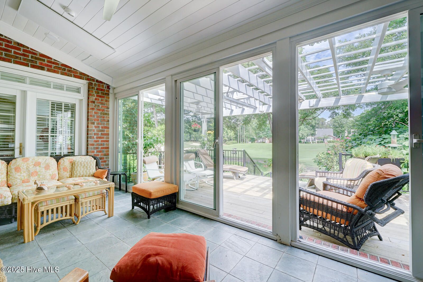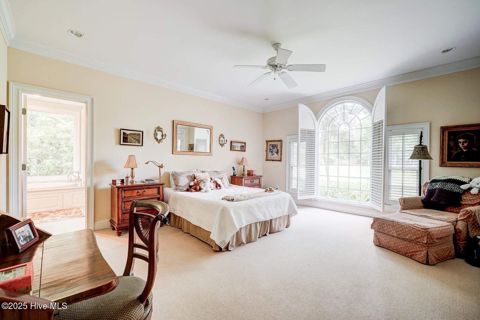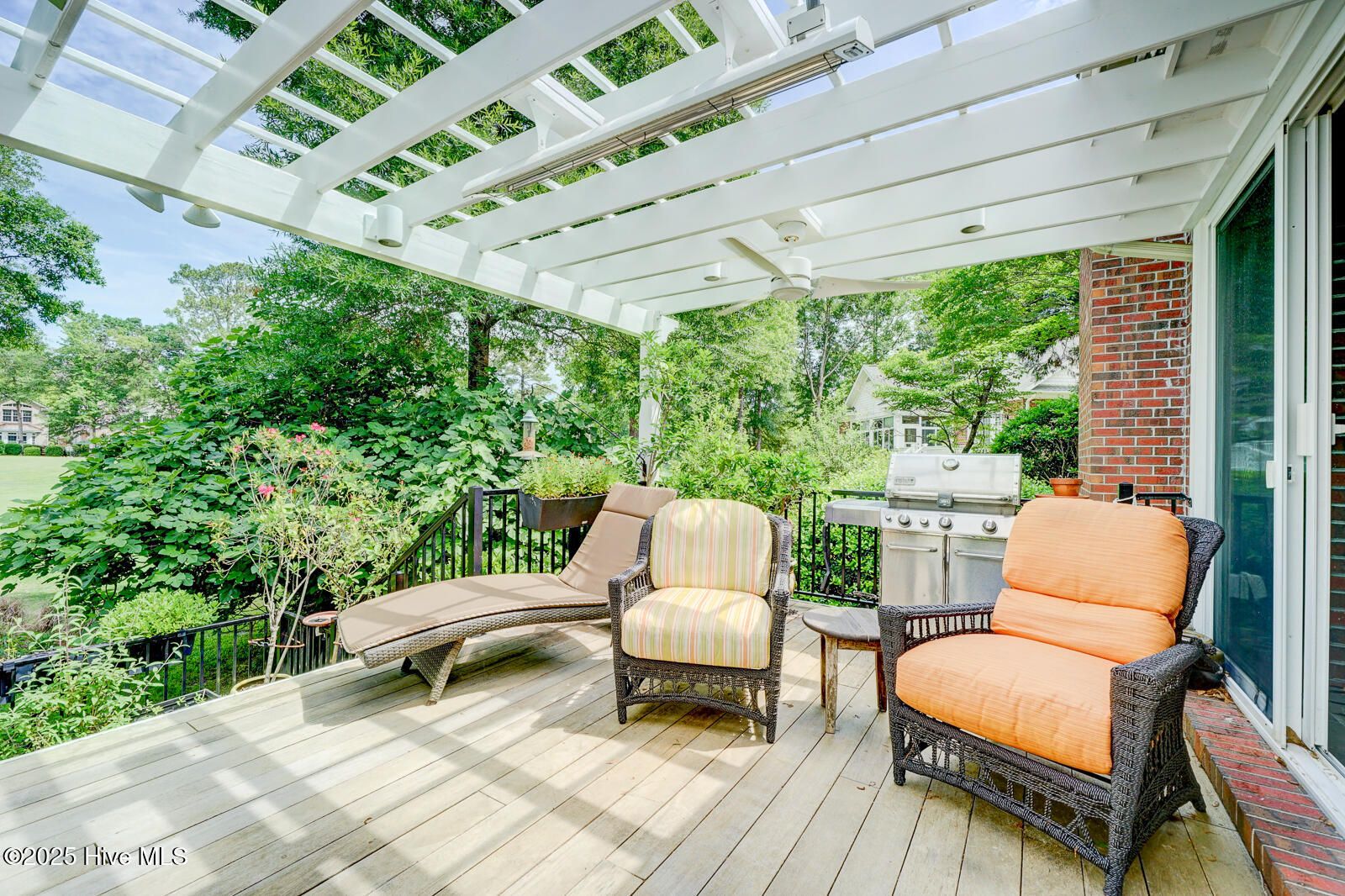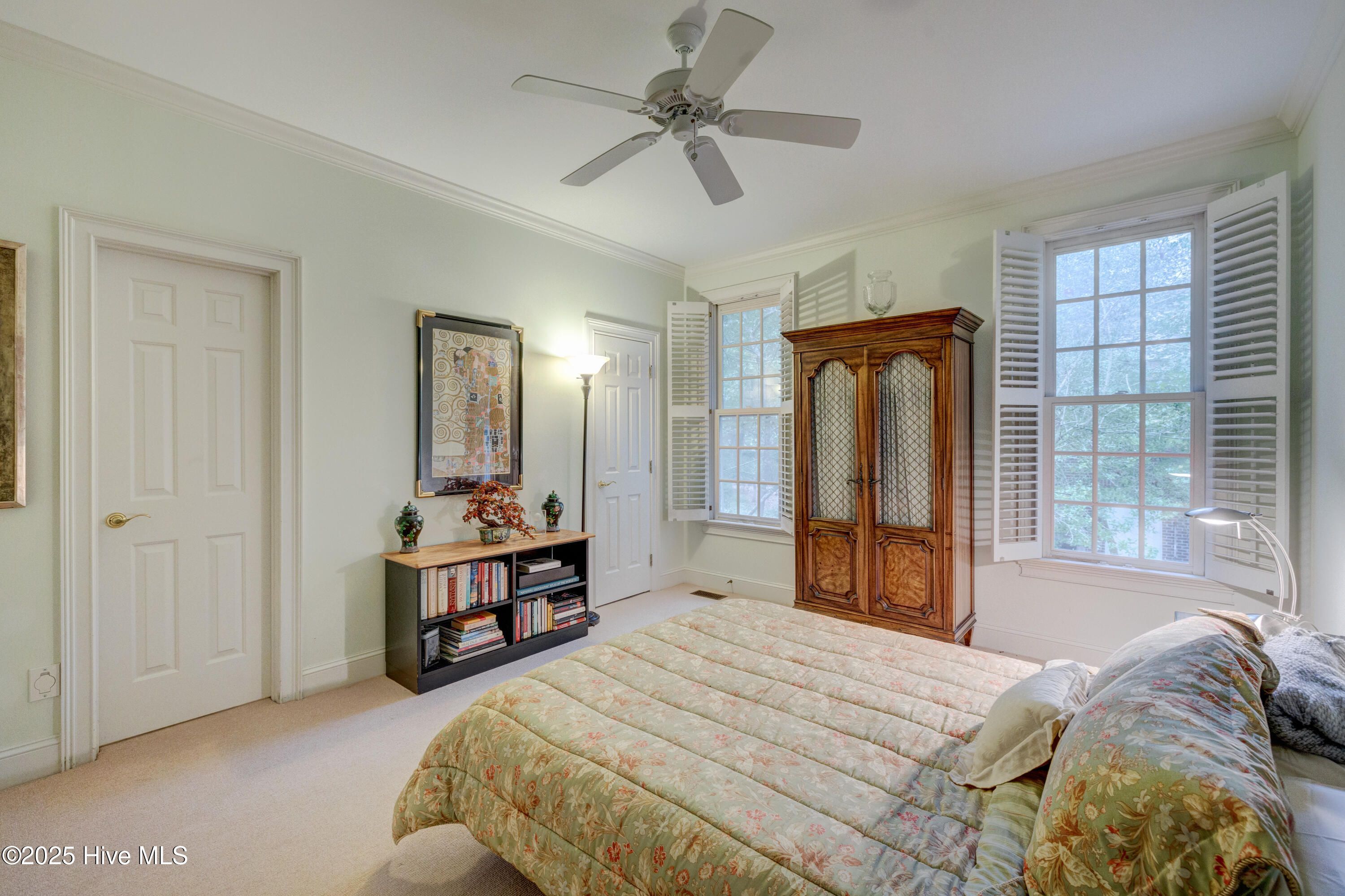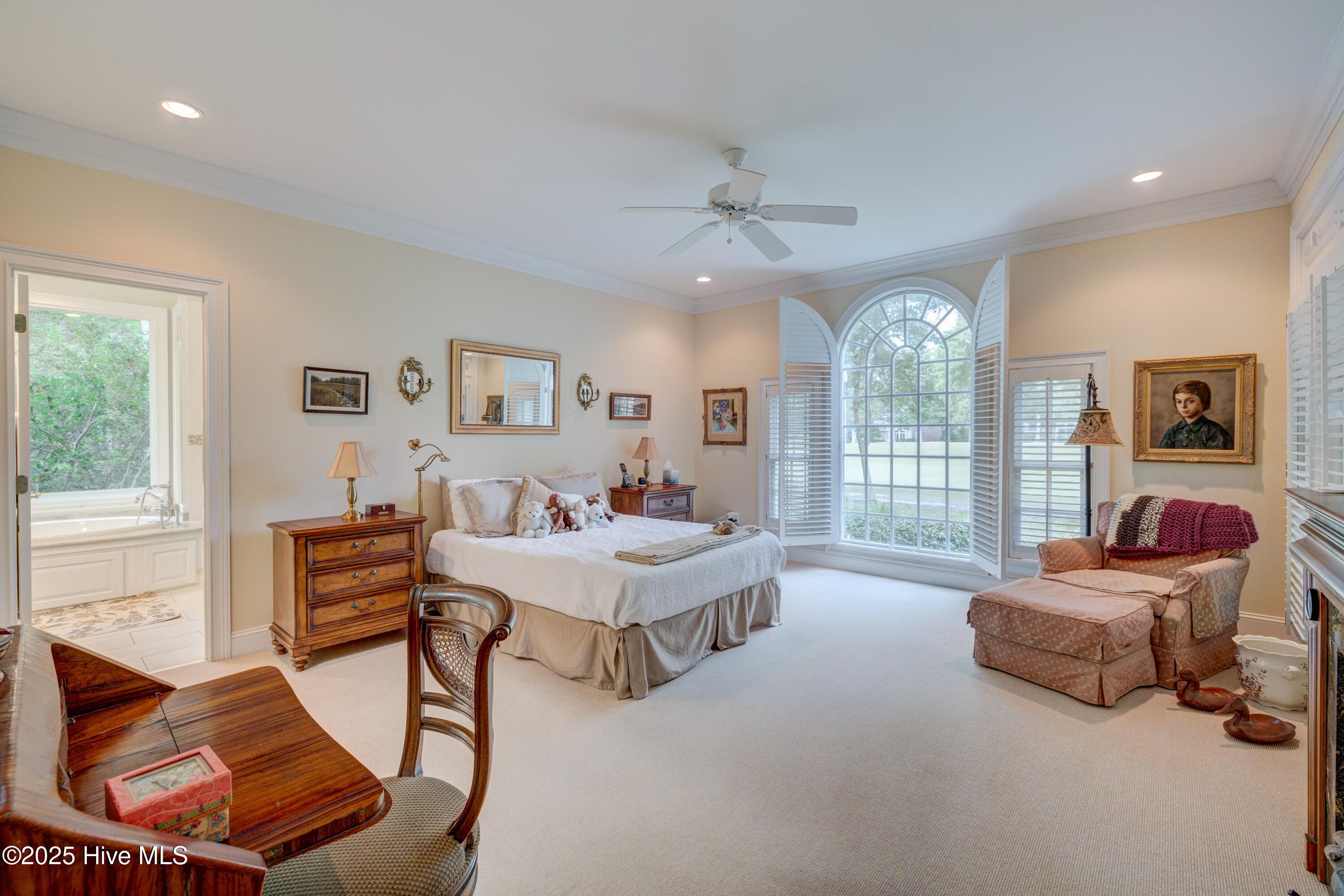 Classic low country William Poole custom home situated on a magnificent wooded golf course lot. This home has a very attractive curb appeal with its rocking chair front porch and mature landscaping. The large foyer welcomes you to the formal dining room and living room with cathedral ceiling. The stunning kitchen opens to the family room featuring an impressive stacked stone fireplace; white custom cabinets, granite countertops and gas range, all the stainless steel appliances are new. The luxurious master suite features a bathroom that has been totally renovated with exquisite taste. Also on the main level are 2 guest bedrooms with a Jack and Jill bath. The upstairs includes 2 more guest bedrooms + a huge home theater room. Abundance of storage in the attic. The outdoor spaces are equally impressive, featuring an enclosed screened porch and patio constructed with IPE wood, and a pergola with both fans and infrared heaters that overlook gorgeous landscaped grounds and panoramic views of the 3rd hole. Wine cellar in the garage. Walk-in basement/crawlspace area ideal for gardening equipment. Community boat ramp and picnic area on the intracoastal waterway.