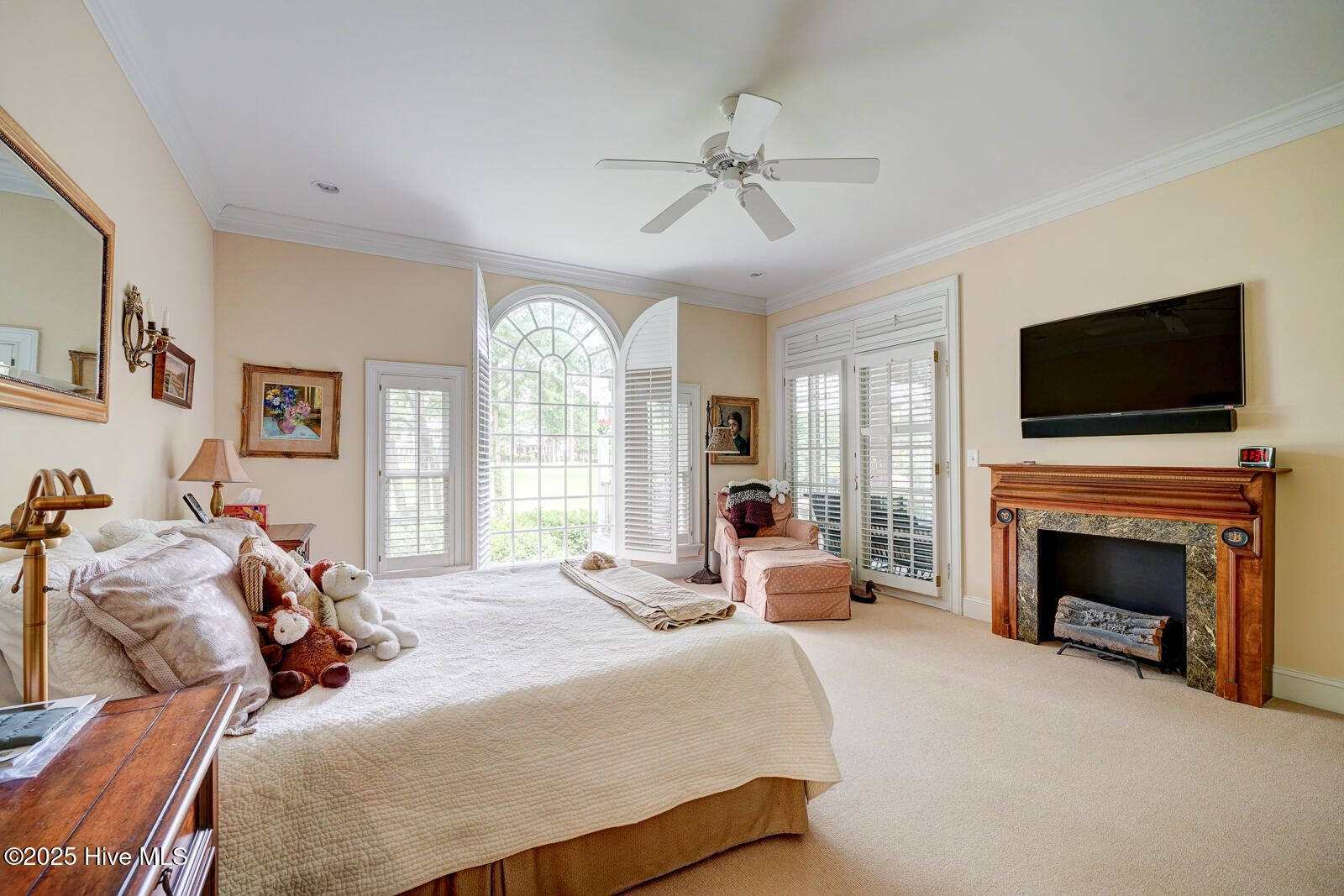 - Blinds/Shades, Walk-in Shower, Walk-In Closet(s), Entrance Foyer, Pantry, Master Downstairs, Kitchen Island, Gas Log, Ceiling Fan(s)