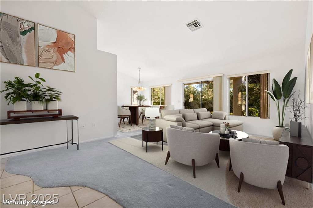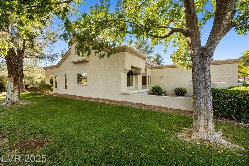 Welcome to this beautifully maintained 1363 sq/ft, 2bd. 2ba townhome nestled on a spacious, corner lot in the highly desirable Sun City Summerlin 55+ Community and is .01 miles from Sun Shadows Community Center, 0.7 miles from Palm Valley Golf Course, 1.8 miles from The Hills Park, .08 miles from Starbucks and nearby to many other shops, stores and amenities. The property has a cozy covered patio and is surrounded by mature landscaping that offers both privacy and curb appeal. This townhome boasts a clean, move-in-ready interior freshly painted in modern, neutral tones. Enjoy the natural light that pours through the windows, highlighting the open layout and serene setting. Whether you're relaxing indoors or enjoying the outdoor greenery, this home offers comfort, style, and convenience in one perfect package. Come take a look before its gone!