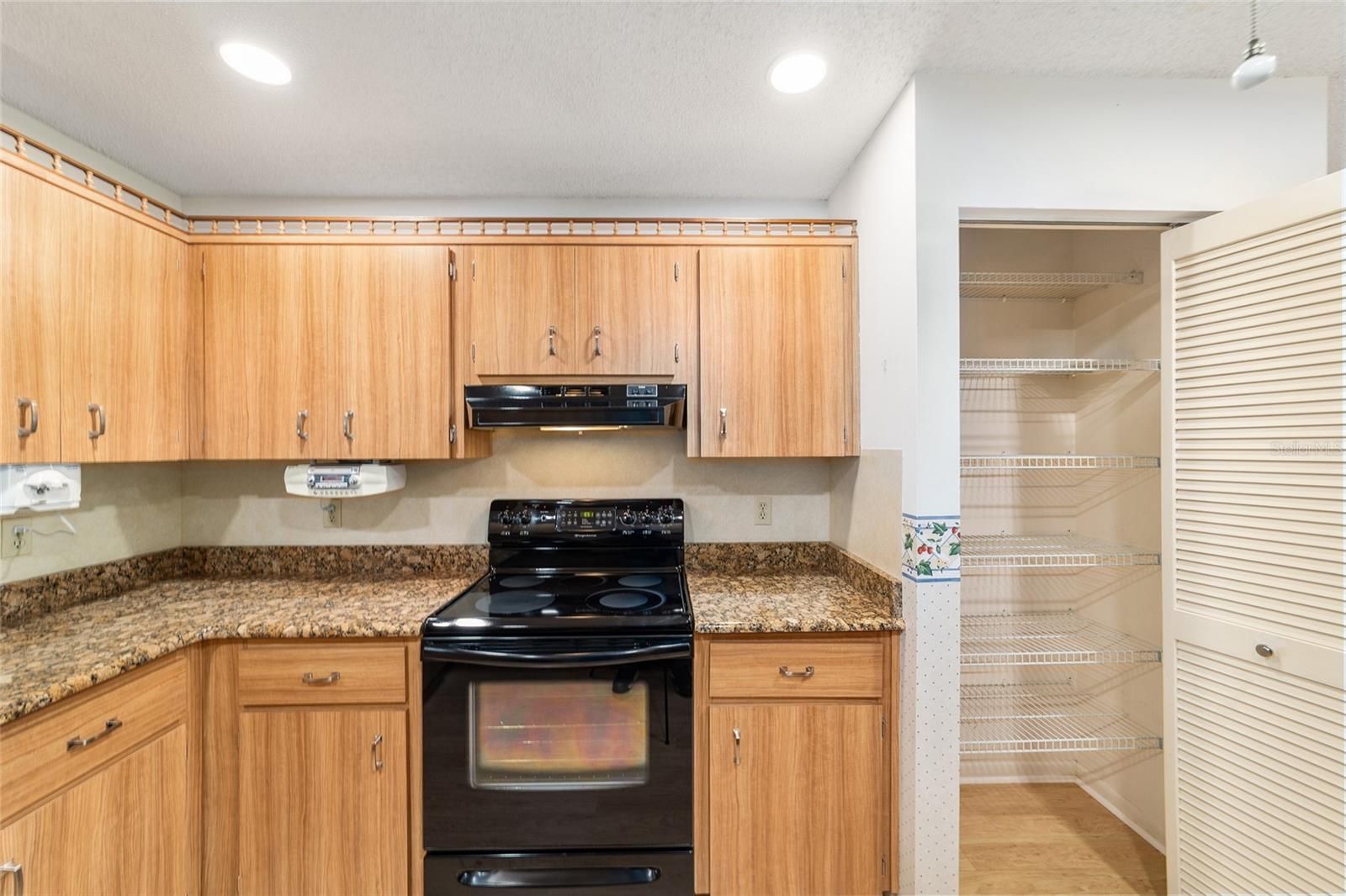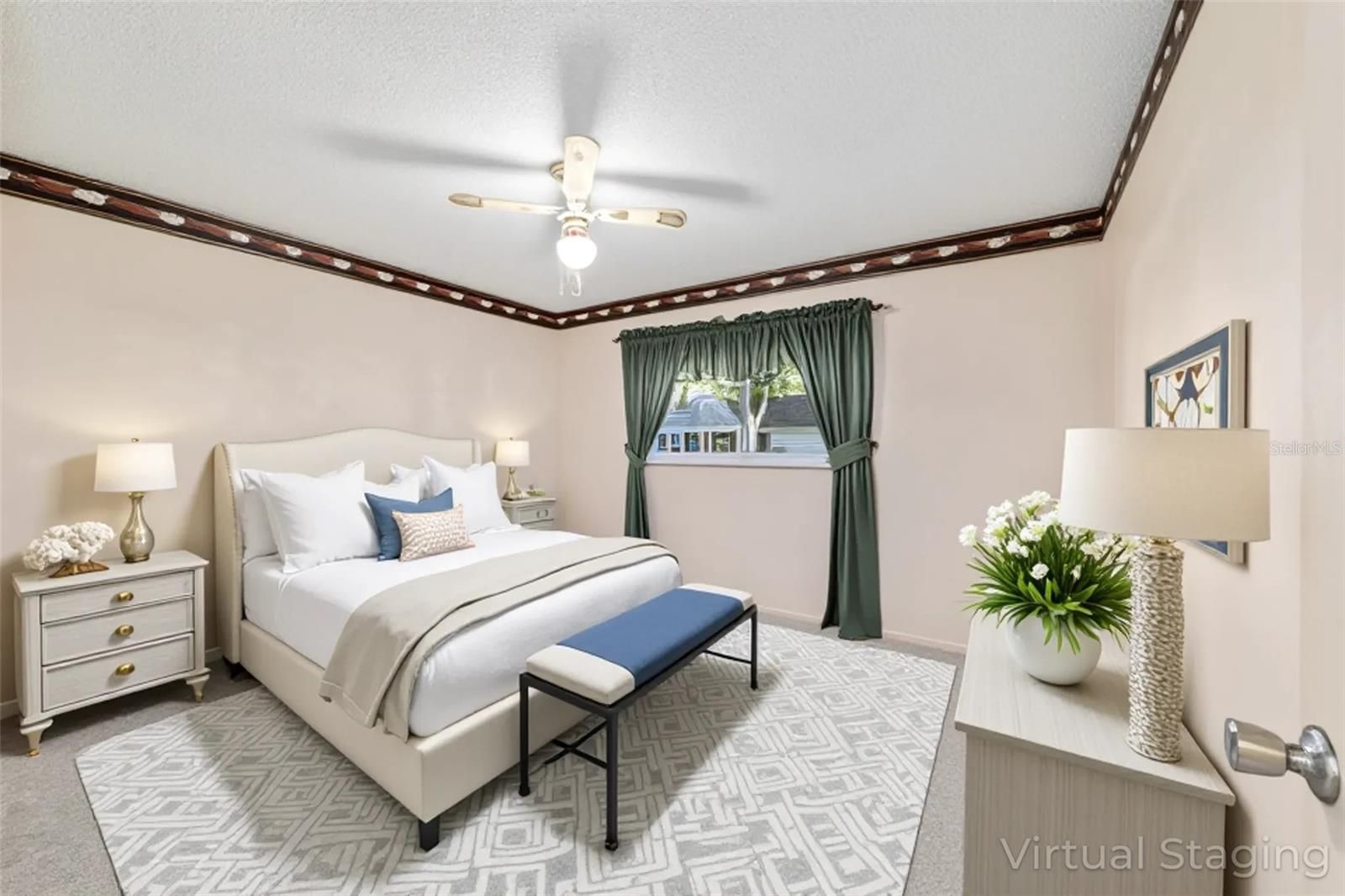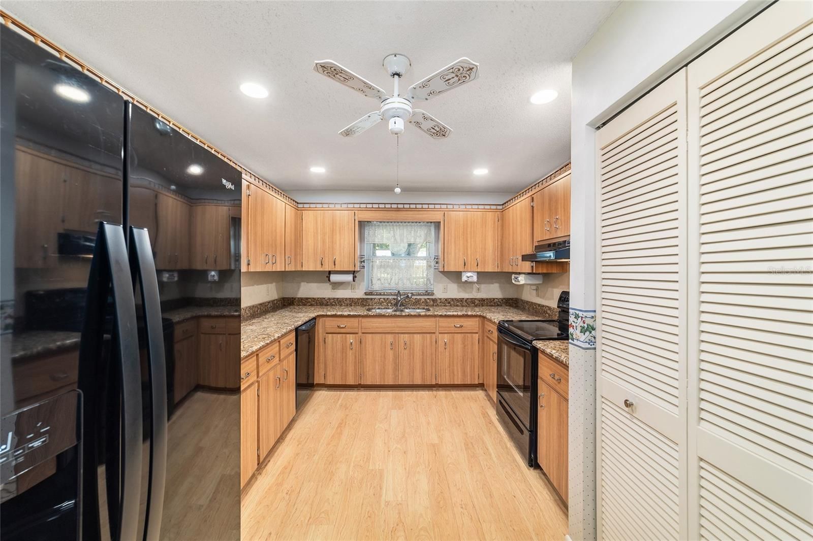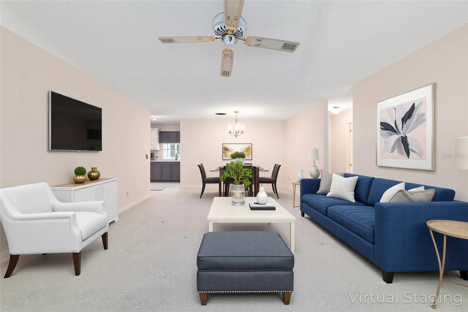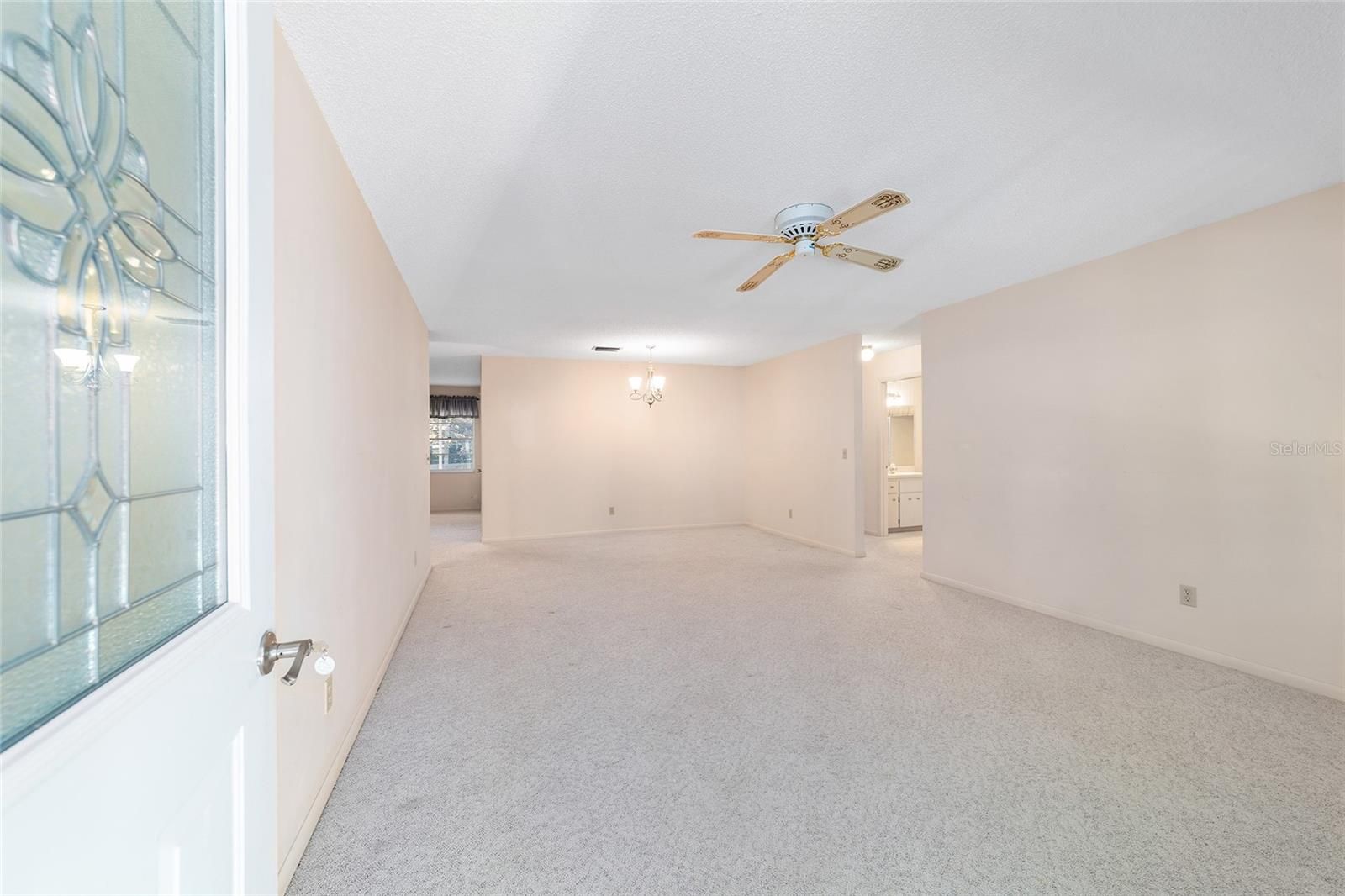 - Ceiling Fan(s), Eat-in Kitchen, Kitchen/Family Room Combo, Living/Dining Room, Main Level Primary, Stone Counters, Walk-In Closet(s), Window Treatments
