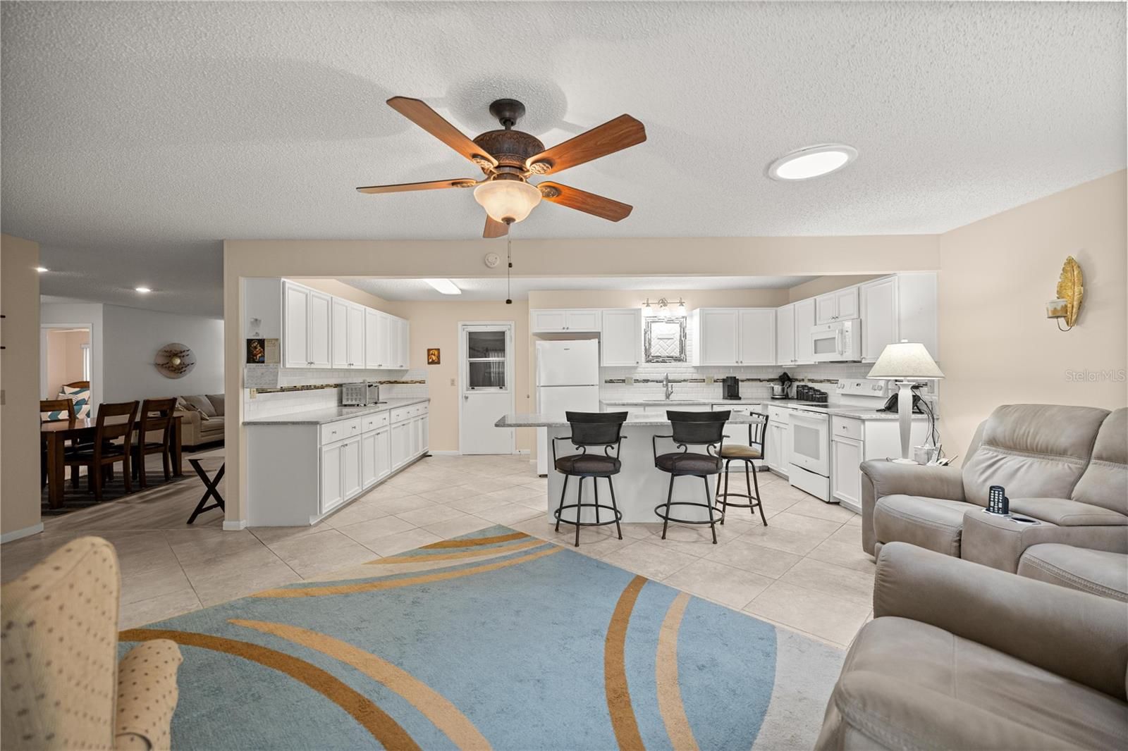 - Ceiling Fan(s), Eat-in Kitchen, Kitchen/Family Room Combo, Living/Dining Room, Main Level Primary, Stone Counters, Thermostat