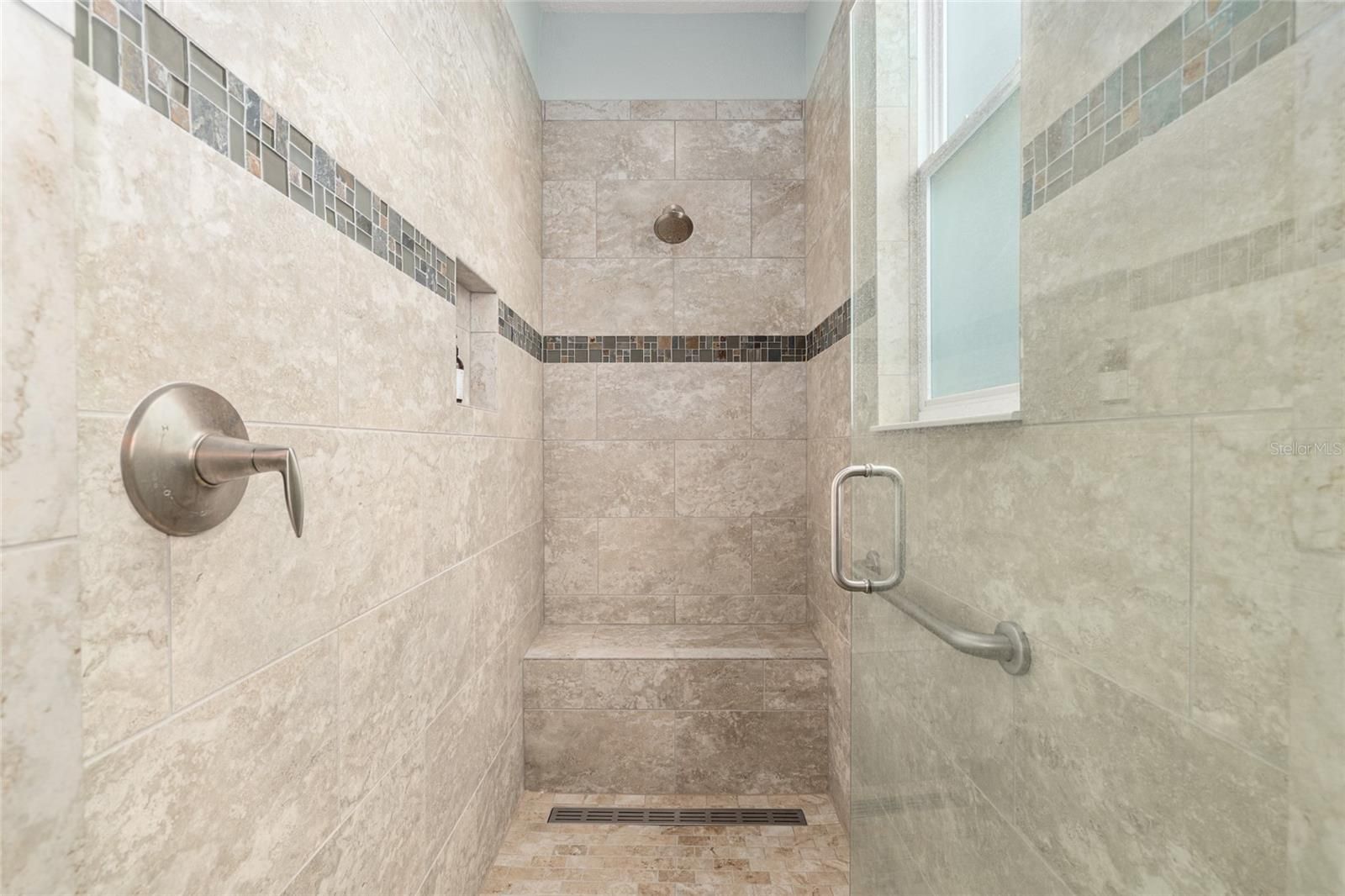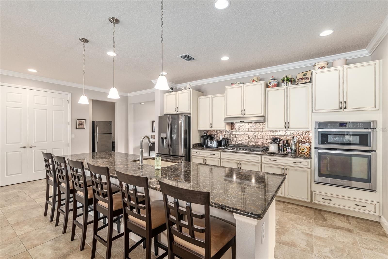 GOLF COURSE HOME on the sixth tee box of the Tortoise and the Hare golf course. This home is located in the much sought after Stonebridge, Candler Hills area of On Top of the World. The home features tons of upgrades, including a paver drive and walkway, easy to maintain luscious landscape; double door entry into your split, 3-bedroom, 3-bath, 3-car garage home, featuring a second en-suite ideal for your guest's comfort. The main living space includes tile, large Cambria quartz island and countertop with porcelain undermount sink, Harmony maple creme, mocha glazed staggered cabinets. Stainless steel appliances, gas cooktop, Emser Subway Vista backsplash. The large en-suite master bedroom overlooking the golf course, along with its walk-in closet wraps around to the laundry room, leads to the living area. The second en-suite bedroom with its own private bathroom, located across the main bedroom, is ideal for your guest. There is a 3rd bedroom with a walk-in closet and bathroom just outside of it with quartz counter and a tub/shower combo. The home also features a flex room that can be used as an office or hobby room and an additional room that offers extra living space. This exquisite home blends refined style with upgrades at every turn and features an unparalleled backyard view from its enclosed lanai that is ideal for entertaining, relaxing and to watch the breathtaking sunsets. Close to the amenities in OTOW via your golf cart: indoor/outdoor pools, 3 golf courses, 2 restaurants, multiple exercise facilities with plenty of top of the line equipment, water aerobics, yoga, exercise classes, steam and sauna, Pickleball courts, RC plane airport, RC car track, min golf, wood working, 100’s of clubs and continuing education, bocce, horseshoes, shuffleboard, billiards, game room. Social activities galore with great residents. The amenities are too much to list. On Top of the World is Ocala's premier, gated, active 55+ community, loaded with amenities and includes golf cart access to three shopping centers.