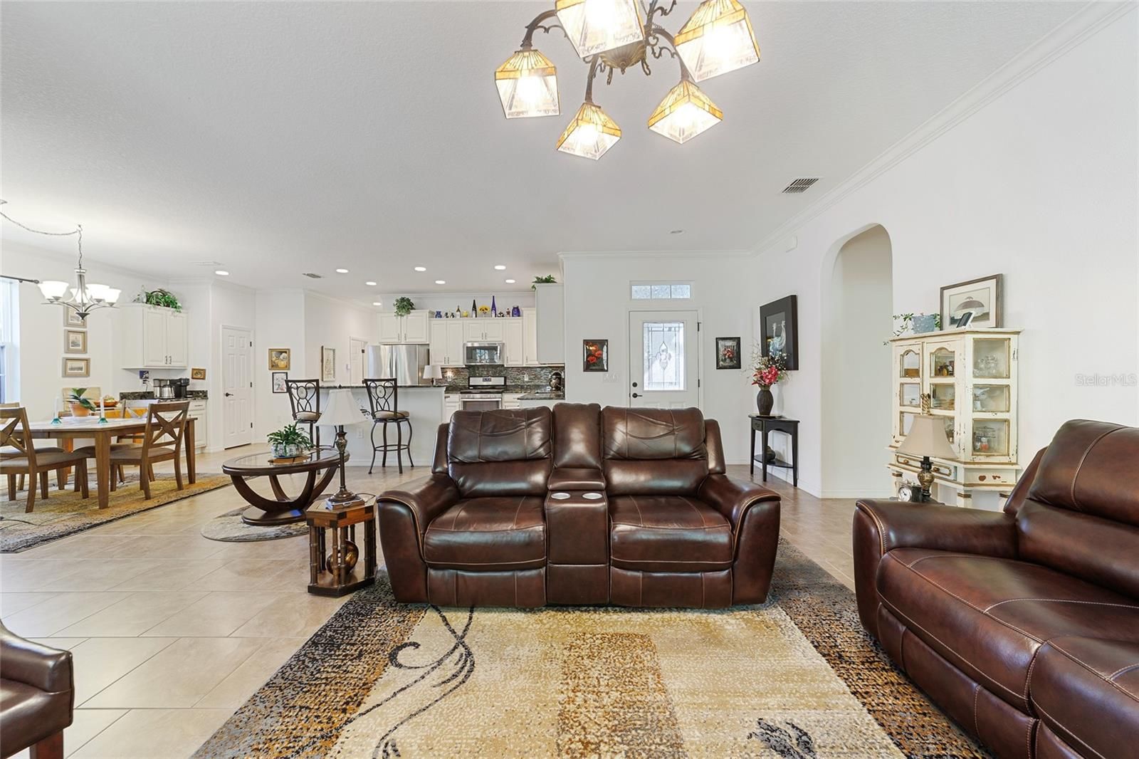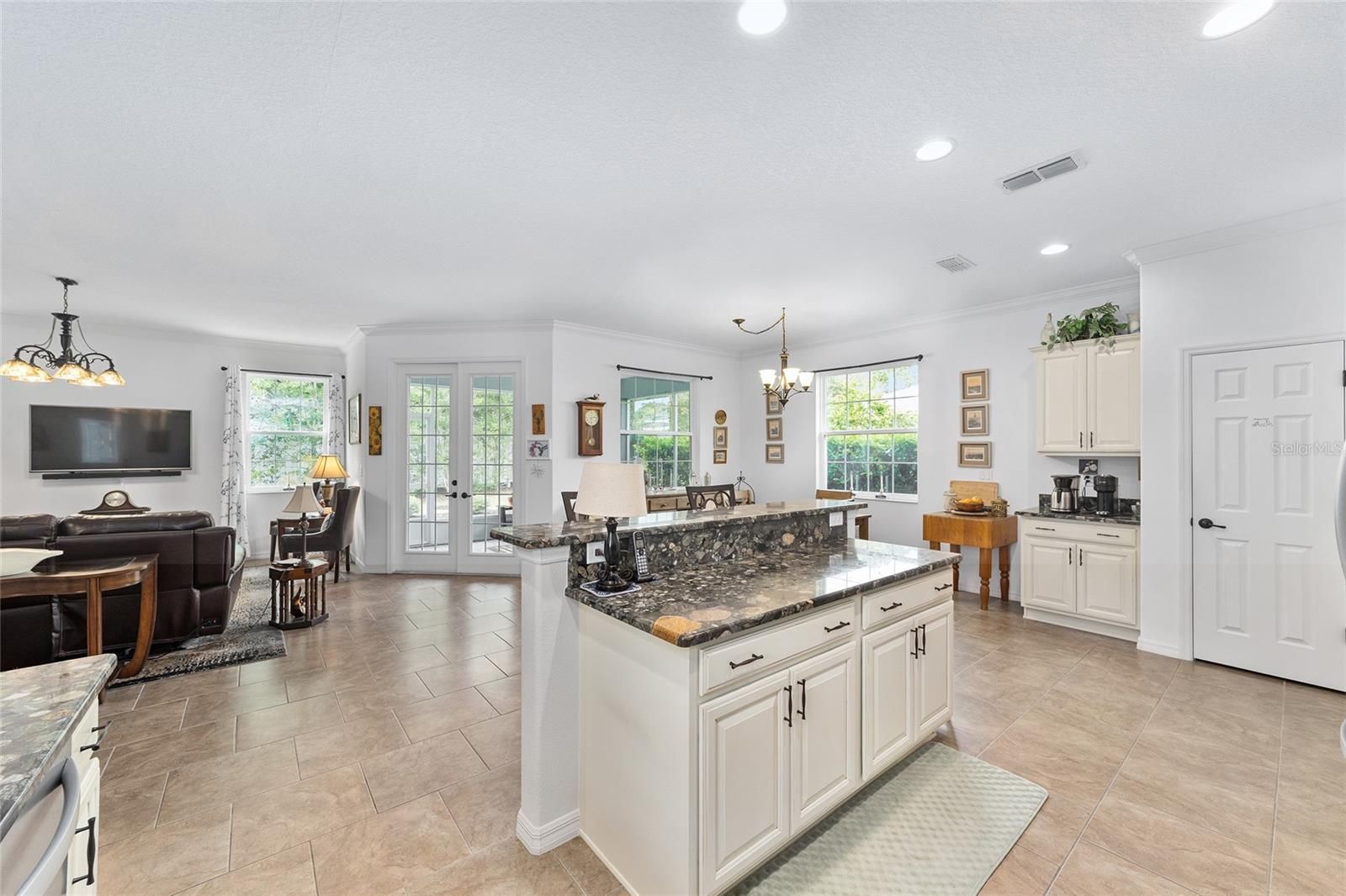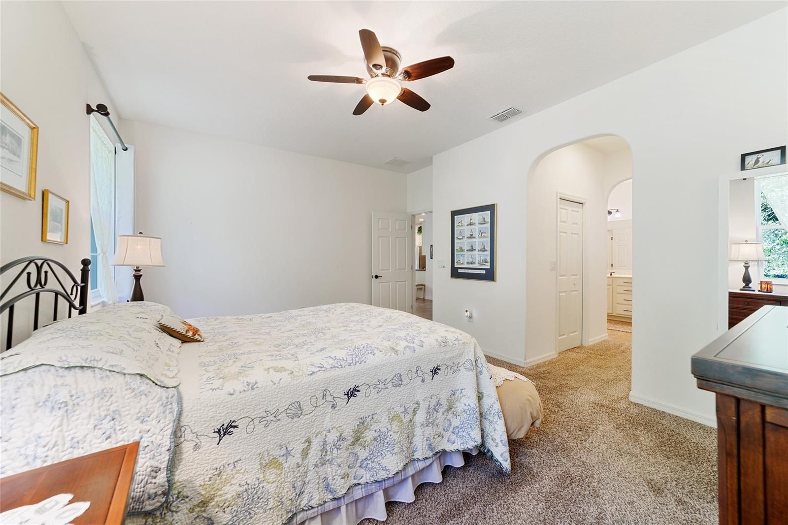 PRIVATE LOT | Candler Hills Estate Home with Casita: Welcome to this stunning 2015 Estate Hydrangea model tucked away on a quiet cul-de-sac in the sought-after Candler Hills neighborhood of On Top of the World, Ocala’s premier gated 55+ community. This beautifully appointed 3-bedroom, 3-bathroom, spacious 2 car garage home. One of the bedrooms and bathrooms is located in private guest casita —perfect for visitors who will enjoy the luxury of their own suite, separated from the main residence by a serene, screened tropical courtyard with raised brick planters adds an additional 705 sq ft to this spacious home's private outdoor entertainment space. Inside the main home, the chef’s kitchen is a showstopper, featuring elegant white staggered cabinetry with crown molding, granite countertops, large prep island, generous pantry, glass tile backsplash, and stainless-steel appliances. The open floor plan flows with staggered 18x18 tile flooring throughout the living areas, with plush carpet in the bedrooms for added comfort. An oversized indoor laundry room includes built-in cabinets for extra storage. The primary bedroom features double walk-in closets and an ensuite bathroom with dual vanity sinks and a large walk-in shower. Step outside to your private backyard oasis with no rear neighbors, ideal for peaceful mornings or entertaining guests. Enjoy total privacy from the screened lanai or relax on the brick paver patio surrounded by lush, fully sodded and irrigated landscaping. This home offers the convenience of curbside trash and mail service as well. As a resident of Candler Hills, you’ll not only enjoy all the amenities offered at On Top of the World—including golf cart access to three shopping centers—but also exclusive access to The Lodge, the future Azura amenity, and the Candler Hills Community Center.