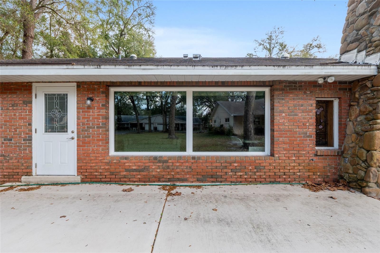 Located in the Village of Americana within the gated community of On Top of the World, this truly unique home was custom designed and built by the developer in 1983 for a private client. Offering 2 bedrooms, 2 bathrooms, a 2-car garage, and 2,018 square feet under HVAC, this end-unit residence stands out for both its design and construction. Each room is wired for a built-in stereo system, and the home includes a separate intercom system. The TV viewing room features a striking flagstone accent wall, decorative carved wood doors, and a functional wood-burning fireplace. The spacious sunroom is surrounded by three brick walls and features two new insulated windows that provide clear outward views while maintaining privacy from the exterior, along with a finished wood plank ceiling. Double French doors connect both the master suite and the TV viewing room to the sunroom, creating a seamless flow throughout the living spaces. Additional interior features include two pantries, indoor laundry, a built-in trash compactor, three solar tubes, and seven ceiling fans. The home includes an EnergyWise upgrade from HCW to Horizon 4G. Recent improvements include a new Trane HVAC system installed February 2025, and a new Whirlpool 21.4 cubic foot refrigerator/freezer installed June, 2025. First annual complete inspection of Trane HVAC February, 2026. Both bathrooms have been remodeled with walk-in showers and sliding doors, including a master bath conversion from tub/shower to a walk-in shower completed September, 2025. The kitchen has also been updated and remodeled. Constructed with real double-brick, 16-inch-thick exterior walls, this home offers durability and efficiency. As an end unit, it enjoys open views from both the front porch and the back patio.