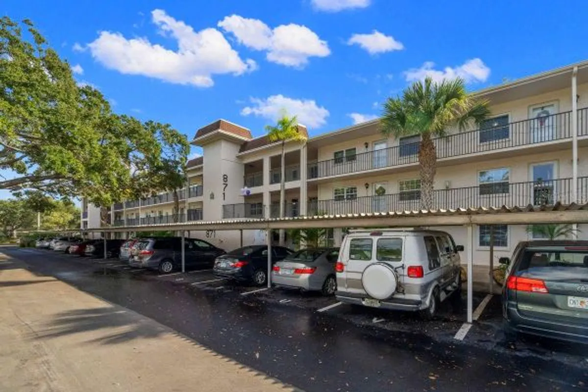 This 3rd floor 2BR/2BA unit offers several updates and is located in the sought after downtown Dunedin community of Patrician Oaks. Community sits on a beautifully landscaped Non-Flood lot with mature tropical plants & majestic trees. The spacious split bedroom plan includes: welcoming foyer, bright kitchen with pass thru, large living-dining room combo, relaxing screened porch, master suite with double closets & private full bath, den or guest bedroom with walk-in utility closet, a full hall bath, plus it comes fully furnished with linens, towels, plates, glasses, utensils, cleaning items, and more. The open plan makes this condo great for entertaining and the screened balcony is PERFECT for your morning coffee & evening glass of wine. It features the following updates, KITCHEN: re-painted cabinets, hardware, disposal, and faucet, MASTER BATHROOM: toilet, shower bench, and glass enclosed walk-in shower, DEN: Murphy bed with built-in shelving, HALL BATH: toilet, faucet, and showerhead, INTERIOR: hurricane impact double paned windows, curtains, hurricane impact sliders & shutters, efficient wood laminate flooring, 6-panel doors with hardware, dining chandelier, ceiling fans, front storm door, and bi-fold privacy doors for 2nd bedroom & bath. This Building also has newer walkways, a recently paved parking lot, plus a newer roof (2023). Building #7 is the community's best kept secret. It offers Free use of the laundry room, the most guest parking spots, and the cheapest fixed land lease fee of $25/month. Patrician Oaks is a meticulously maintained 55+ community with active clubhouse, fitness room, large heated pool & spa, shuffleboard, BBQ grills, and an in-house property manager. It is located a short walk from Historic Downtown Dunedin with its unique shops, top rated restaurants & countless activities. It's also a short drive from several shopping hubs, the Dunedin Causeway, Honeymoon Island, Westfield Mall, Quaint Ozona, Eclectic Safety Harbor, Award Winning Clearwater Beach, and the famous Sponge Docks of Tarpon Springs. Ride your bike on the Pinellas Trail, take a stroll on the Causeway or watch a waterfront sunset over the Marina, there's plenty to do in Dunedin! Other amenities include: beaches, parks, casual & fine dining, roof top bars, micro-breweries, cafes, bike riding, boating, fishing, downtown festivals, concerts, art shows, spring training baseball, championship golf, sunsets, and events at the Community & Fine Art Centers. This is a MUST SEE for buyers seeking maintenance free living with an active & vibrant lifestyle this property conveys.