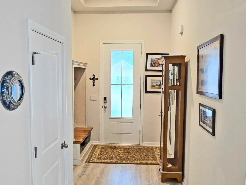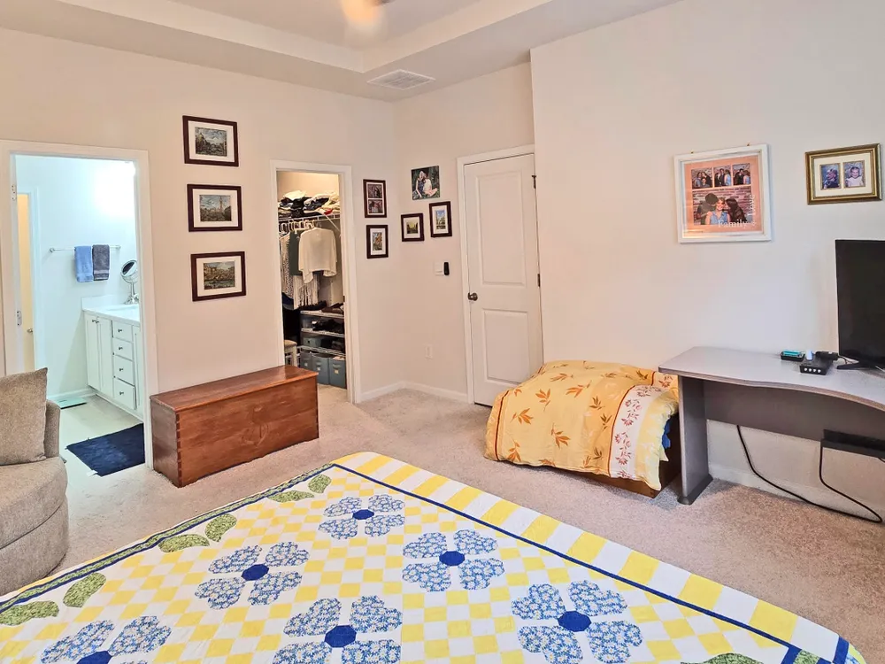 - Blinds/Shades, Solid Surface, Walk-In Closet(s), Walk-in Shower, Entrance Foyer, Pantry, Mud Room, Master Downstairs, Kitchen Island, High Ceilings, Ceiling Fan(s)