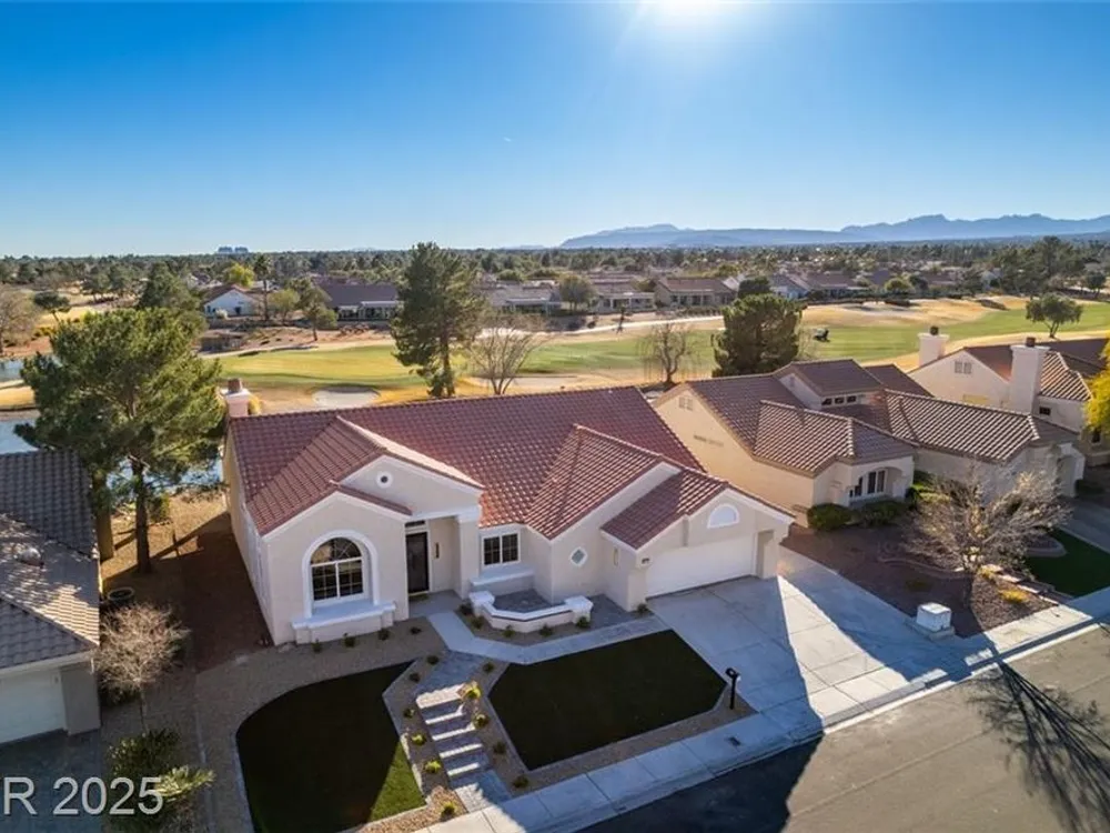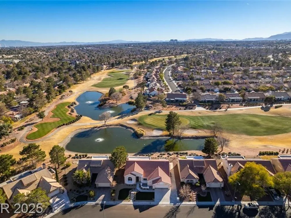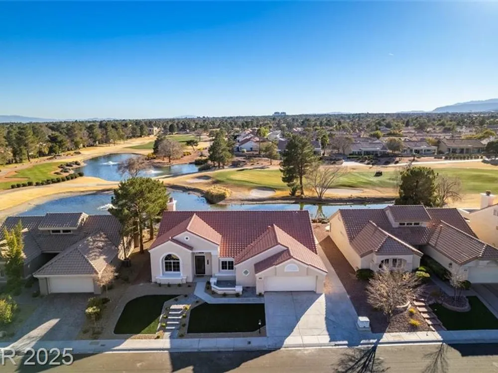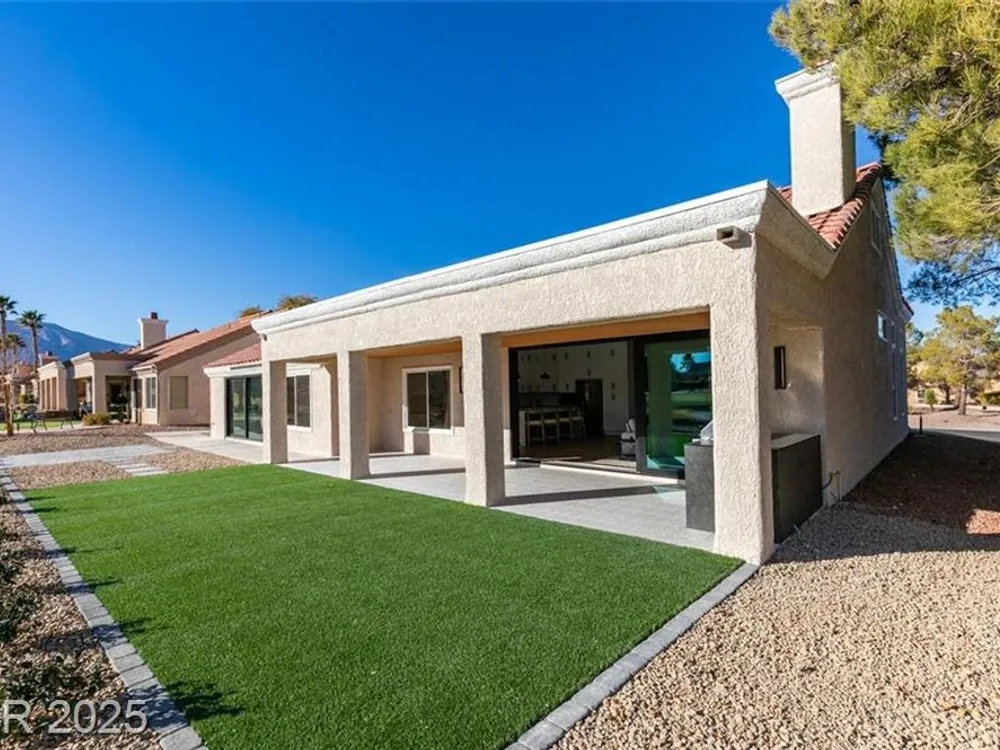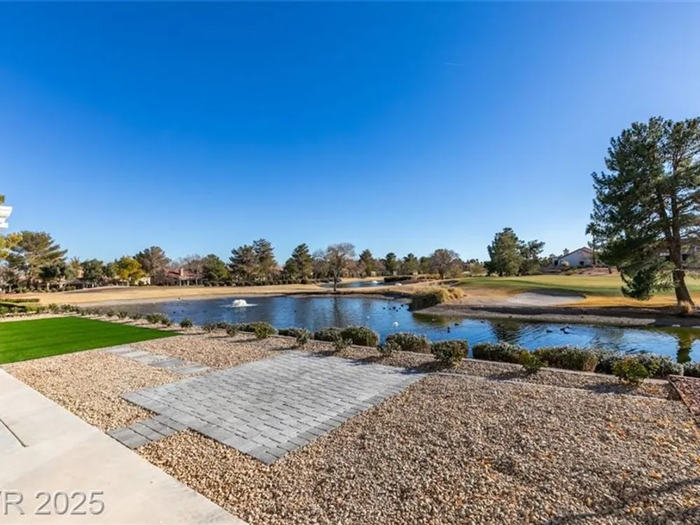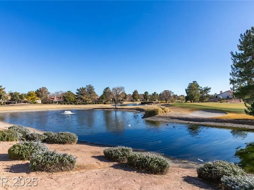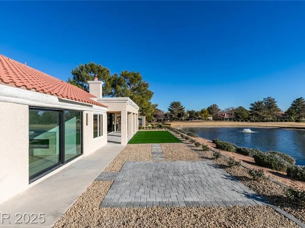Step into your gorgeous 3 bedroom 2 bath Hacienda with Stellar golf course & lake/water views nestled on the putting green of the golf course in Sun City Summerlin. This spacious residence features high-end finishes, modern amenities throughout, including luxury flooring, high ceilings, 15ft Custom slider patio door that flood the space with natural light. The kitchen features stacked-tile backsplash with high-end stainless steel appliances & designer hood. Large waterfall island in the heart of the home, which acts as a beautiful centerpiece with an adjoining dining & roomy family room has custom built fireplace makes it ideal for gatherings. Primary bedroom offers a peaceful oasis with custom built electric fireplace, walk-in closet & spa-like master bathroom. Backyard has golf course views, covered patio synthetic grass. Nestled in a vibrant 55+ community is your gateway to a dynamic lifestyle, complete with community amenities & nearby trendy eateries and cultural hotspots.
