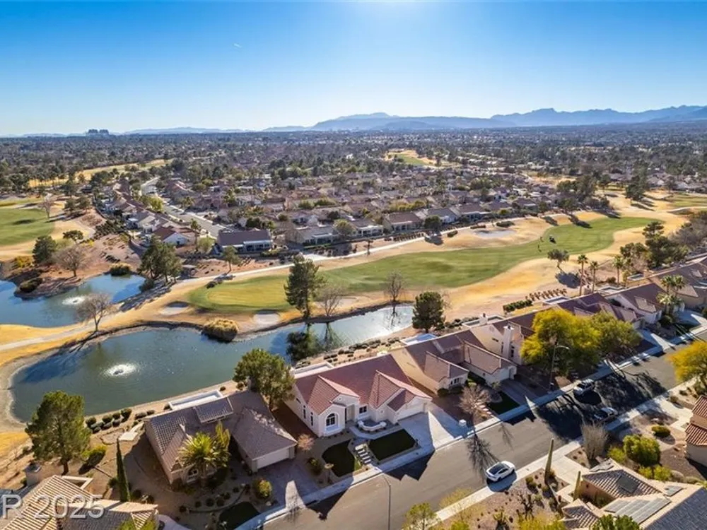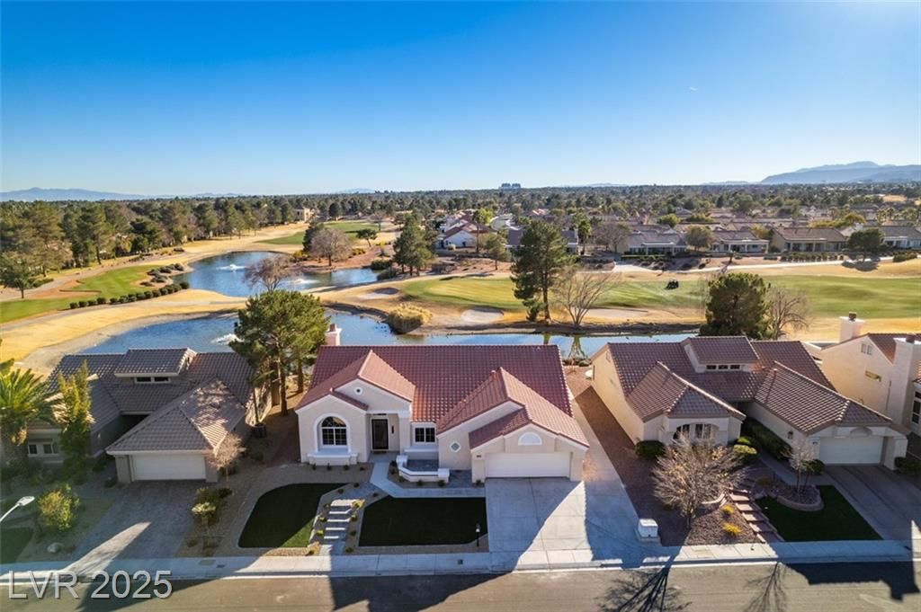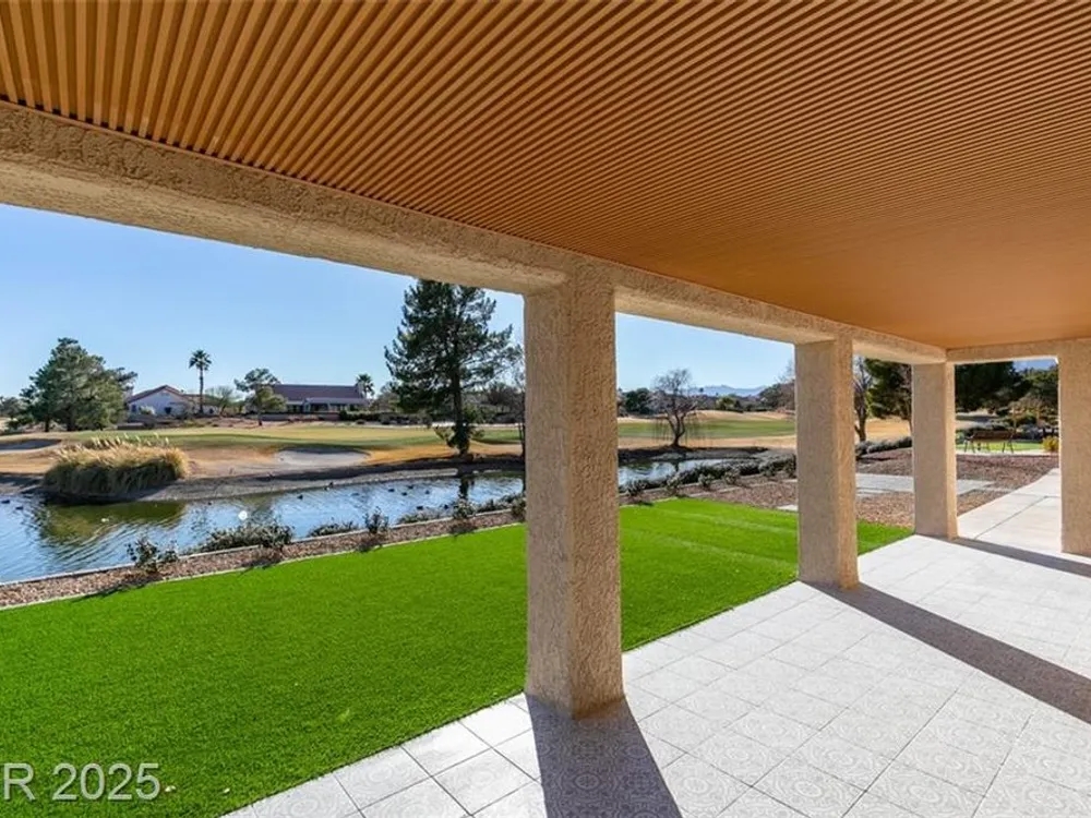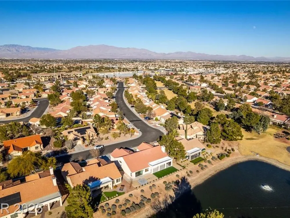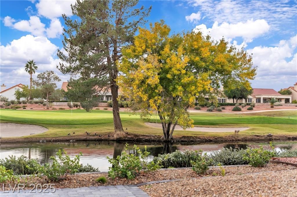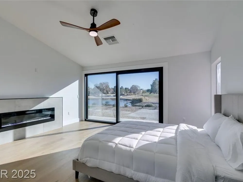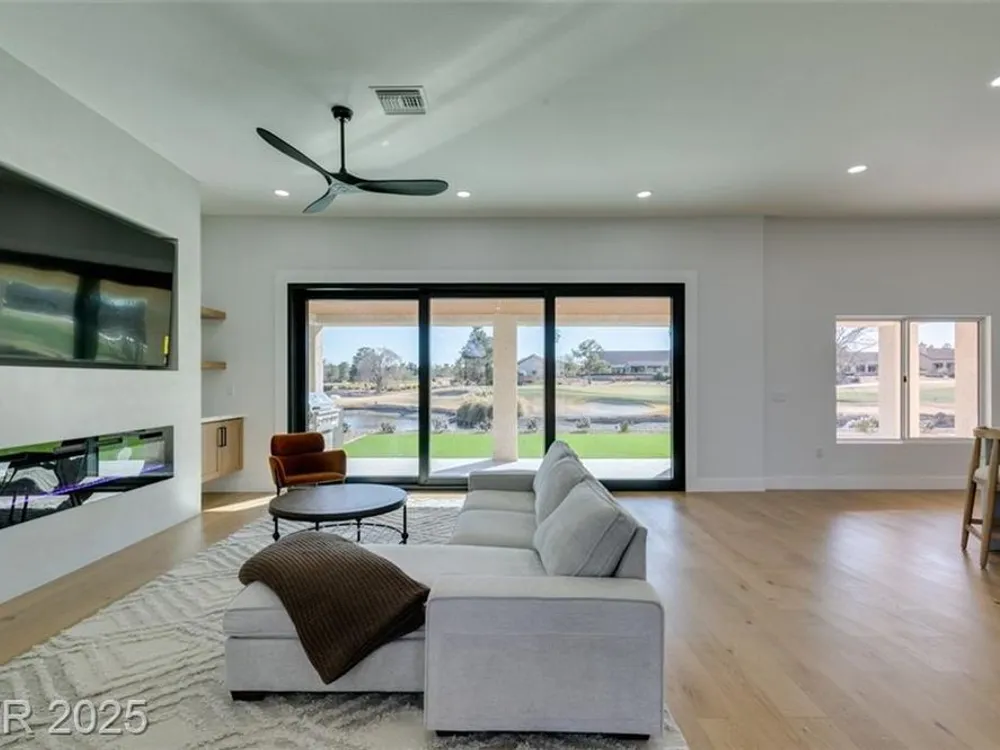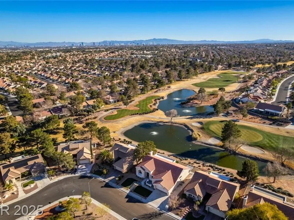 Step into your gorgeous 3 bedroom 2 bath Hacienda with Stellar golf course & lake/water views nestled on the putting green of the golf course in Sun City Summerlin. This spacious residence features high-end finishes, modern amenities throughout, including luxury flooring, high ceilings, 15ft Custom slider patio door that flood the space with natural light. The kitchen features stacked-tile backsplash with high-end stainless steel appliances & designer hood. Large waterfall island in the heart of the home, which acts as a beautiful centerpiece with an adjoining dining & roomy family room has custom built fireplace makes it ideal for gatherings. Primary bedroom offers a peaceful oasis with custom built electric fireplace, walk-in closet & spa-like master bathroom. Backyard has golf course views, covered patio synthetic grass. Nestled in a vibrant 55+ community is your gateway to a dynamic lifestyle, complete with community amenities & nearby trendy eateries and cultural hotspots.