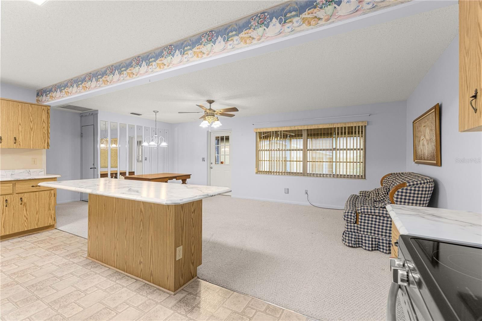 - Attic Ventilator, Ceiling Fan(s), Eat-in Kitchen, Kitchen/Family Room Combo, Living/Dining Room, Main Level Primary, Walk-In Closet(s), Window Treatments