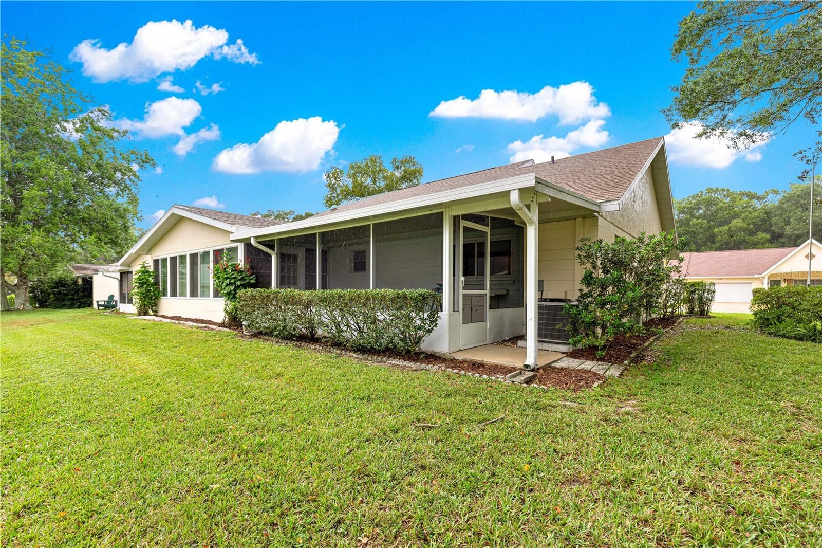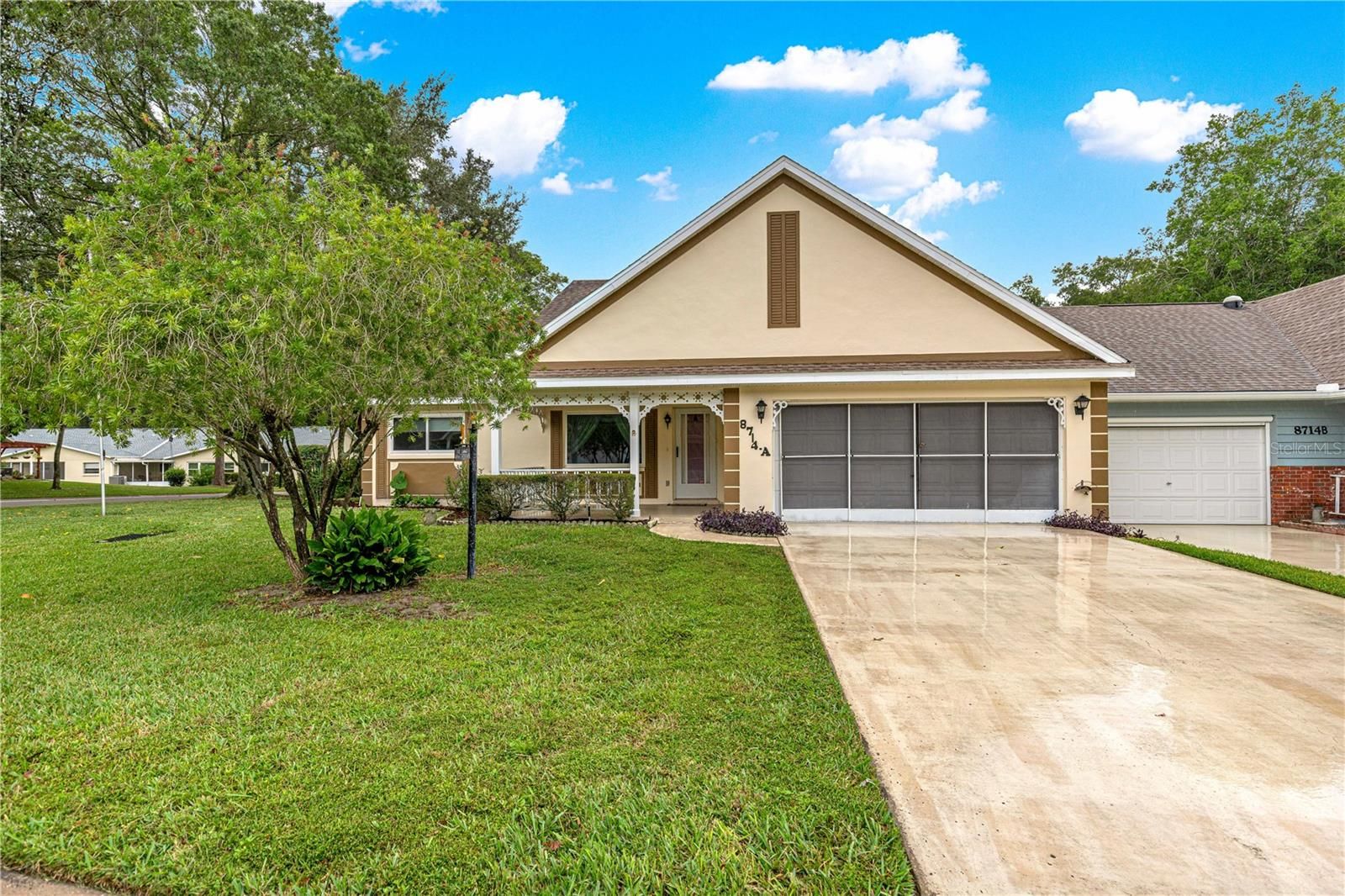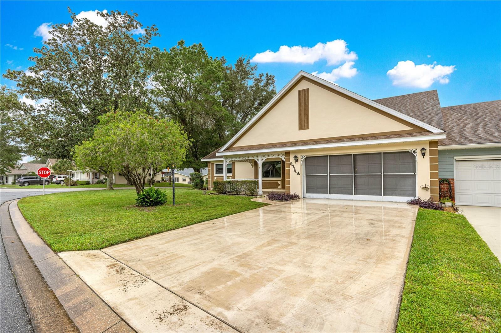 THEY SAY LOCATION IS EVERYTHING! VERY Popular Bostonian Model Villa, End-Unit, Premium Corner Lot w/2 Bedrooms, 2 Baths, 2-Car Garage, Finished FL Room, AND MORE! Located in the premiere 55+ gated golf community of On Top of the World in SW Ocala FL. ROOF 2019, HVAC 2019 & WINDOWS 2017! Enjoy the views from the large front porch as you enjoy your morning coffee! Nice long, wide driveway leading to the 2-car garage – sufficient for lots of visitors! Step inside into the Great Room. The bedrooms are located to the left with the guest bedroom in front with large closet & LOTS of natural light. Linen closet in the hall next to the guest/hall bath with tub and tile surround. The primary bedroom suite is located in the back of the home for privacy. AGAIN – LOTS of natural light being an end unit. The primary en suite bath has a step-in shower with glass surround, and the walk-in closet provides more than ample size. Back through the Great Room to the OPEN CONCEPT Kitchen – Family Room. The Kitchen boasts LOTS of cabinets and counter space, as well as an island, all open to the Family Room for perfect entertaining space. Step out into the finished Florida Room with custom solar shades, under AC/heat. And step out again to the spacious SCREEN LANAI! The garage entrance is from the kitchen, with laundry in the garage, as well as LOTS of storage space! The monthly HOA fee includes Basic Spectrum Cable, irrigation water, roof repair, exterior painting every seven years, exterior maintenance and insurance, landscaping, trash & recycling, 24/7 monitored gates and what seems like endless amenities; three pools (2 outside & 1 inside & another under construction), two state of the art fitness centers, pickleball (uncovered & covered), billiards, archery range, corn hole, bocce ball, tennis, shuffleboard, horse shoes, remote control flying field and race cars, 175+ clubs, woodworking shop (extra fee), library, and much, much more! A golf cart community with access to several shopping centers. Centrally located 20 minutes from the World Equestrian Center, easy drive to 4 cruise ports and/or airports, and within a close proximity to entertainment complexes in Orlando. *** GARAGE DOOR OPENER DOES NOT WORK - SELLER HAVING REPAIRED PRIOR TO CLOSING.