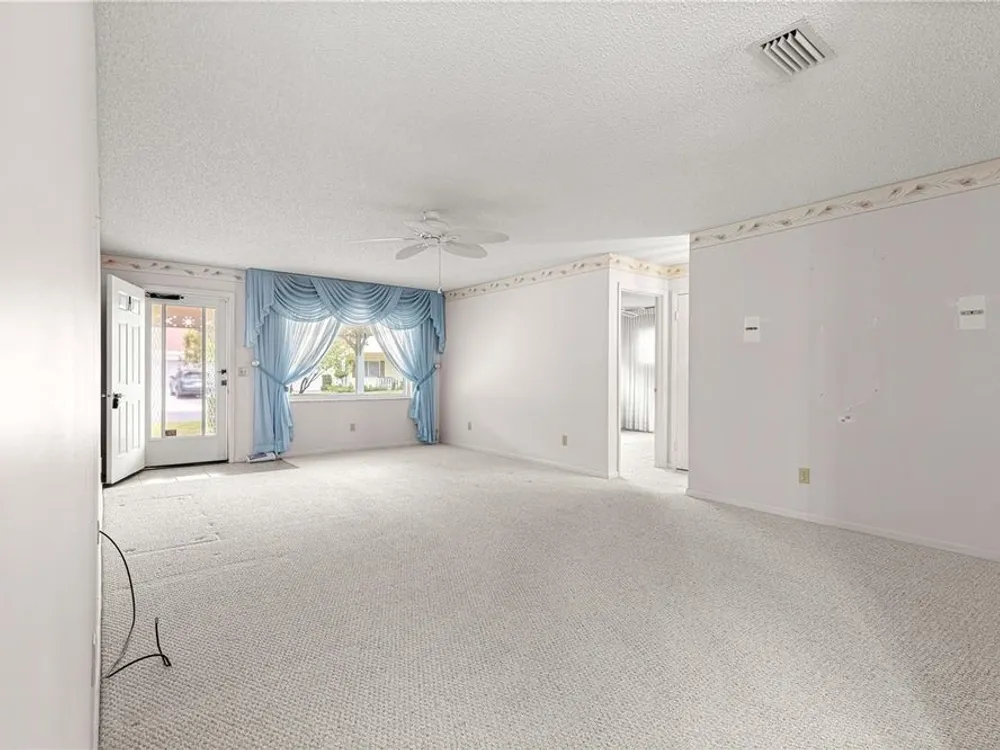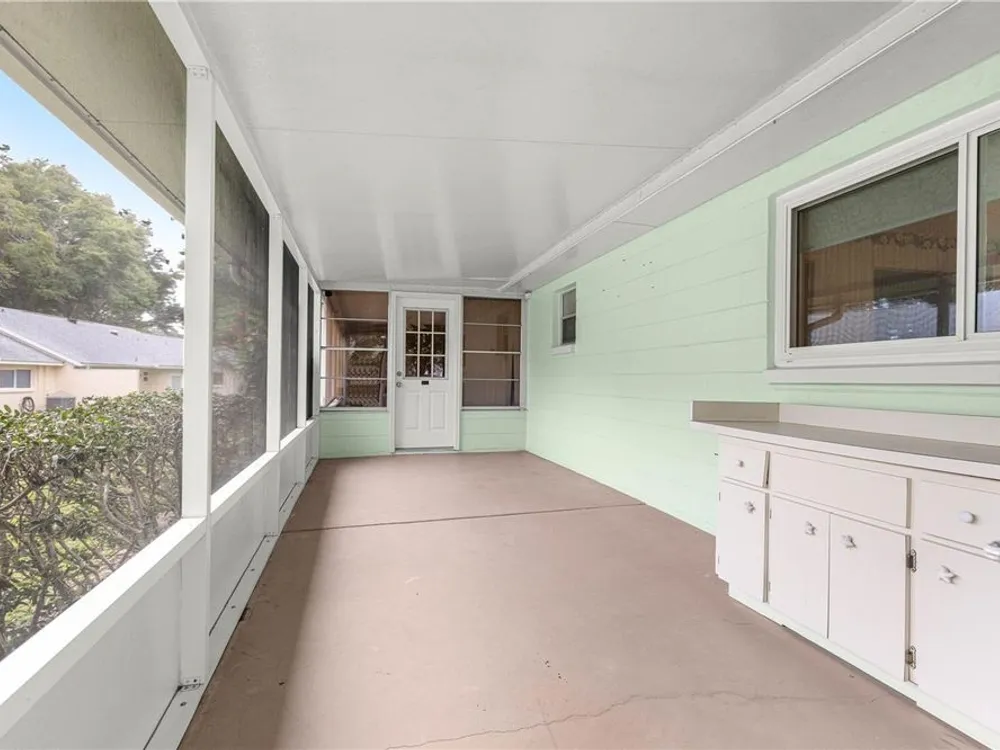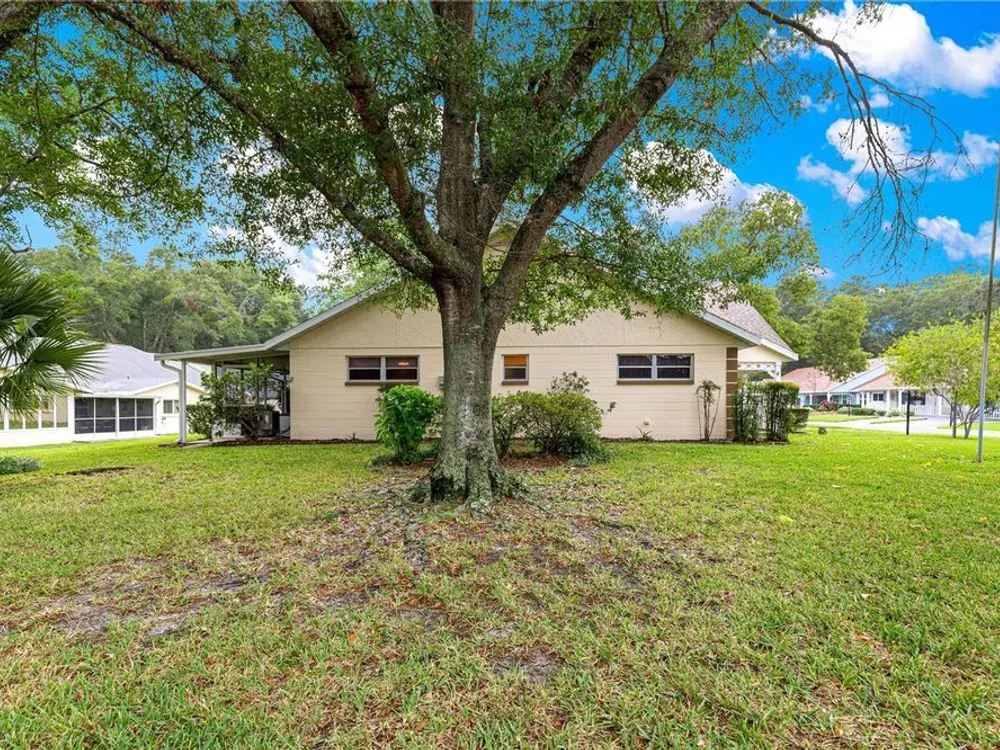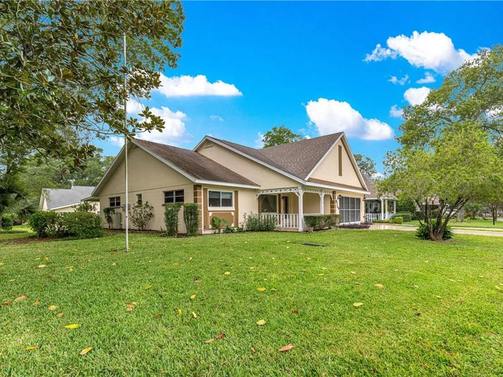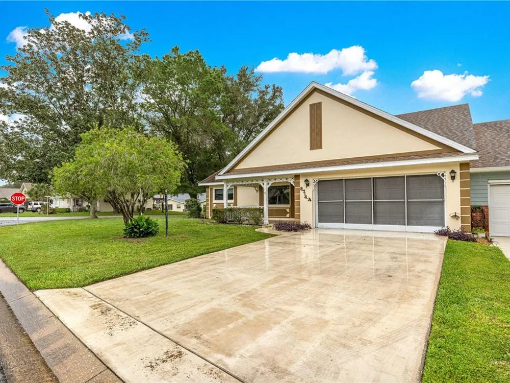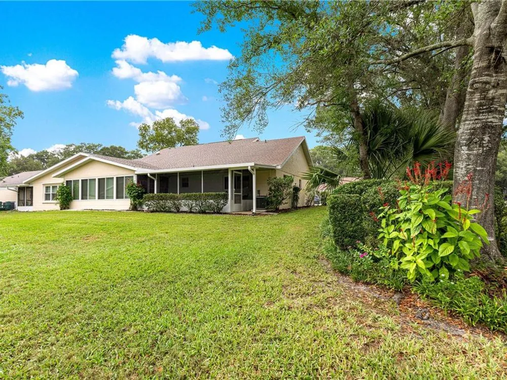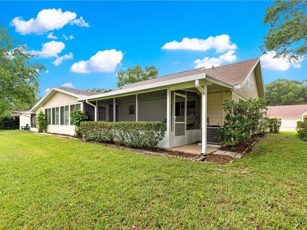 LOCATION-LOCATION-LOCATION! VERY Popular Bostonian Model Villa, End-Unit, Premium Corner Lot w/2 Bedrooms, 2 Baths, 2-Car Garage, Finished FL Room, AND MORE! Located in the premiere 55+ gated golf community of On Top of the World in SW Ocala FL. ROOF 2019, HVAC 2019 & WINDOWS 2017! Enjoy the views from the large front porch as you enjoy your morning coffee! Nice long, wide driveway leading to the 2-car garage – sufficient for lots of visitors! Step inside into the Great Room. The bedrooms are located to the left with the guest bedroom in front with large closet & LOTS of natural light. Linen closet in the hall next to the guest/hall bath with tub and tile surround. The primary bedroom suite is located in the back of the home for privacy. AGAIN – LOTS of natural light being an end unit. The primary en suite bath has a step-in shower with glass surround, and the walk-in closet provides more than ample size. Back through the Great Room to the OPEN CONCEPT Kitchen – Family Room. The Kitchen boasts LOTS of cabinets and counter space, as well as an island, all open to the Family Room for perfect entertaining space. Step out into the finished Florida Room with custom solar shades, under AC/heat. And step out again to the spacious SCREEN LANAI! The garage entrance is from the kitchen, with laundry in the garage, as well as LOTS of storage space! The monthly HOA fee includes Basic Spectrum Cable, irrigation water, roof repair, exterior painting every seven years, exterior maintenance and insurance, landscaping, trash & recycling, 24/7 monitored gates and what seems like endless amenities; three pools (2 outside & 1 inside & another under construction), two state of the art fitness centers, pickleball (uncovered & covered), billiards, archery range, corn hole, bocce ball, tennis, shuffleboard, horse shoes, remote control flying field and race cars, 175+ clubs, woodworking shop (extra fee), library, and much, much more! A golf cart community with access to several shopping centers. Centrally located 20 minutes from the World Equestrian Center, easy drive to 4 cruise ports and/or airports, and within a close proximity to entertainment complexes in Orlando.