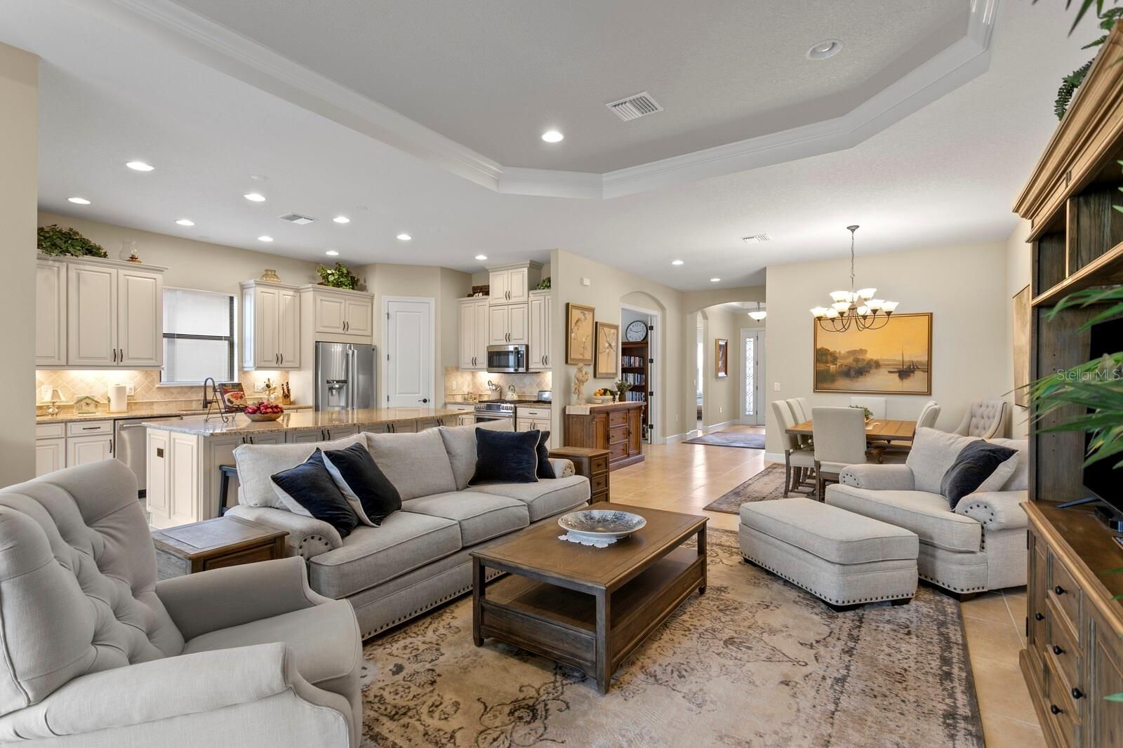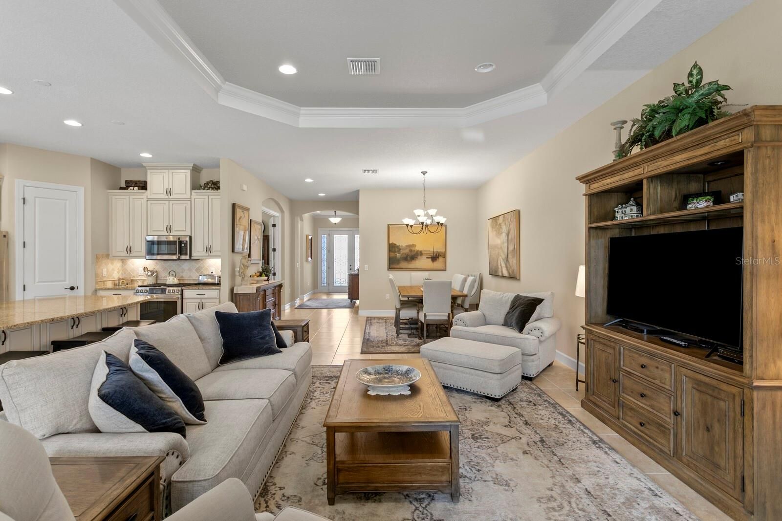 Welcome to your dream home located in the gated, maintenance free community of The Esplanade.  With over $80K+ in builder options and structural upgrades selected at the time of construction, this home offers the benefit of a newer build with premium finishes already in place. This move-in ready, meticulously maintained home blends thoughtful design, quality construction, and a true resort-style lifestyle in the highly sought-after Esplanade of Tampa. Built with **energy-efficient construction, a durable tile roof, and an in-wall pest control system**, it offers long-term value and peace of mind while showcasing extensive structural, design, and electrical upgrades that elevate it well beyond builder-grade. Positioned on a premium pond-view homesite with an upgraded elevation, the home was customized at the time of construction with a long list of enhancements. The extended screened lanai with paver flooring creates an ideal outdoor retreat, while the alternate primary suite layout with a bay window provides a more spacious and functional owner’s retreat. Inside, the upgraded kitchen features Level-3 cabinetry with 42-inch uppers and crown molding, upgraded countertops, tile backsplash, under-cabinet lighting, pendant pre-wires, custom drawer upgrades, stainless sink, and upgraded faucet selections. Additional recessed lighting and ceiling-fan pre-wires were added throughout the great room, bedrooms, den, and lanai to enhance comfort and ambiance. The owner’s suite and secondary baths were finished with upgraded countertops, designer tile selections, frameless glass shower enclosures, upgraded plumbing fixtures, and comfort-height toilets. Interior enhancements continue with crown molding details, an upgraded interior paint package, Level-5 carpet with upgraded padding, and enhanced tile throughout the main living areas and baths. Structural and mechanical highlights include a 3-car garage, extended screened patio with pavers, pre-plumb for a water softener, gas line for a future outdoor kitchen or grill, floor electrical outlet in the great room, additional weatherproof outlets, keyless garage entry, and reverse electrical service option. Exterior details showcase an upgraded front door with impact glass, enhanced hardware package, and attractive elevation features. Living in Esplanade of Tampa means enjoying a resort-style lifestyle with a beautifully appointed clubhouse, fitness center, pool with cabanas, fire pit, pickleball courts, two dog parks, and an active social calendar. Ideally located near I-75 and I-275, top-rated hospitals, Wiregrass Mall, Tampa Premium Outlets, dining, and entertainment. **Not age-restricted and no CDD**, making this community stand out from the rest. Offering luxury, comfort, and lifestyle all in one, this home is truly a standout. Schedule your private showing today and experience the best of Esplanade living.