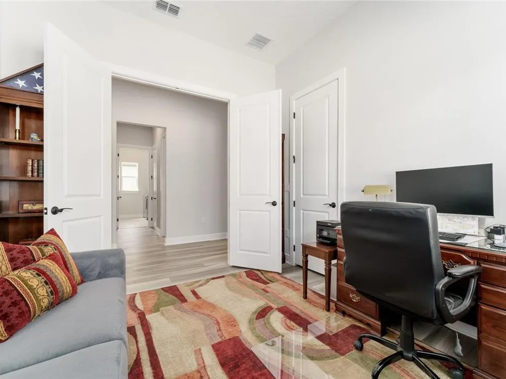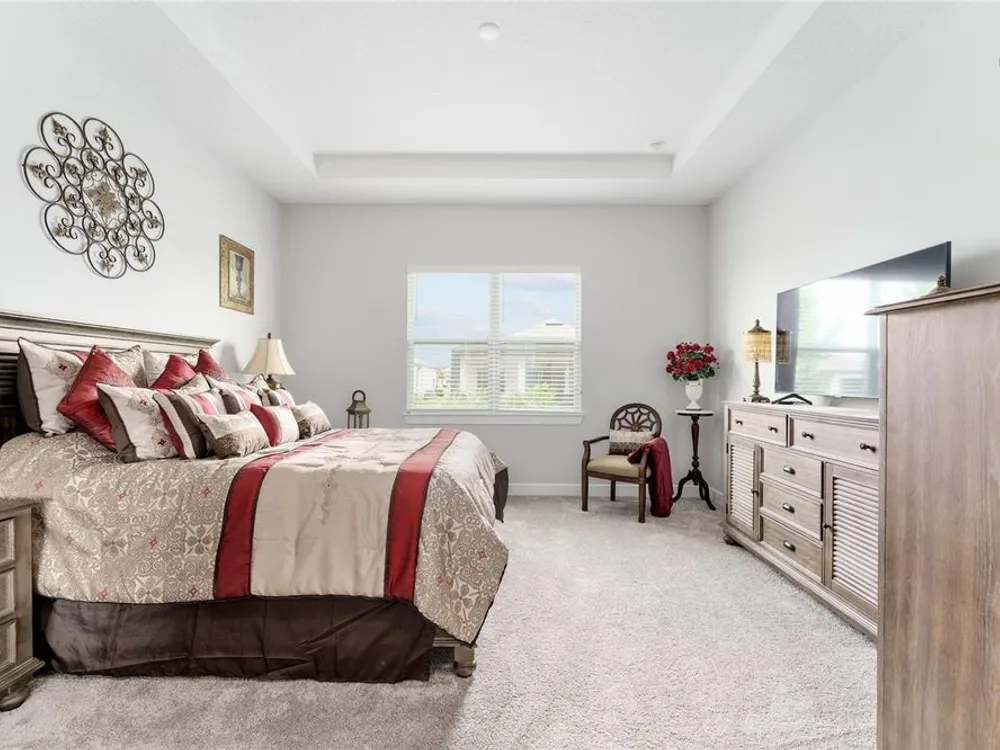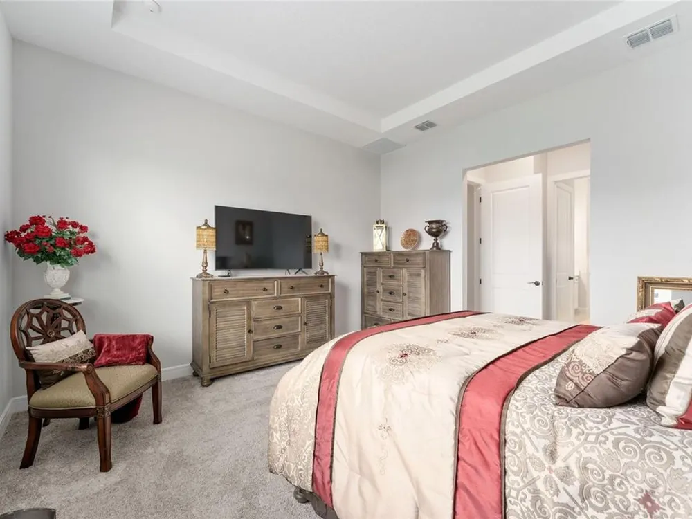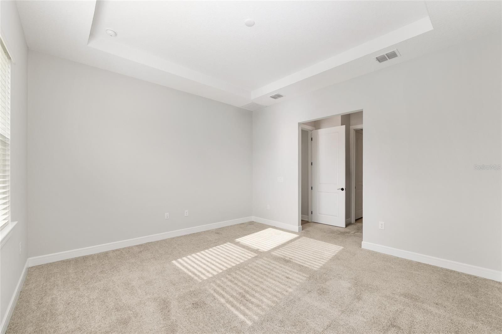 - Eat-in Kitchen, High Ceilings, Kitchen/Family Room Combo, Open Floorplan, Main Level Primary, Stone Counters, Thermostat, Tray Ceiling(s), Walk-In Closet(s)