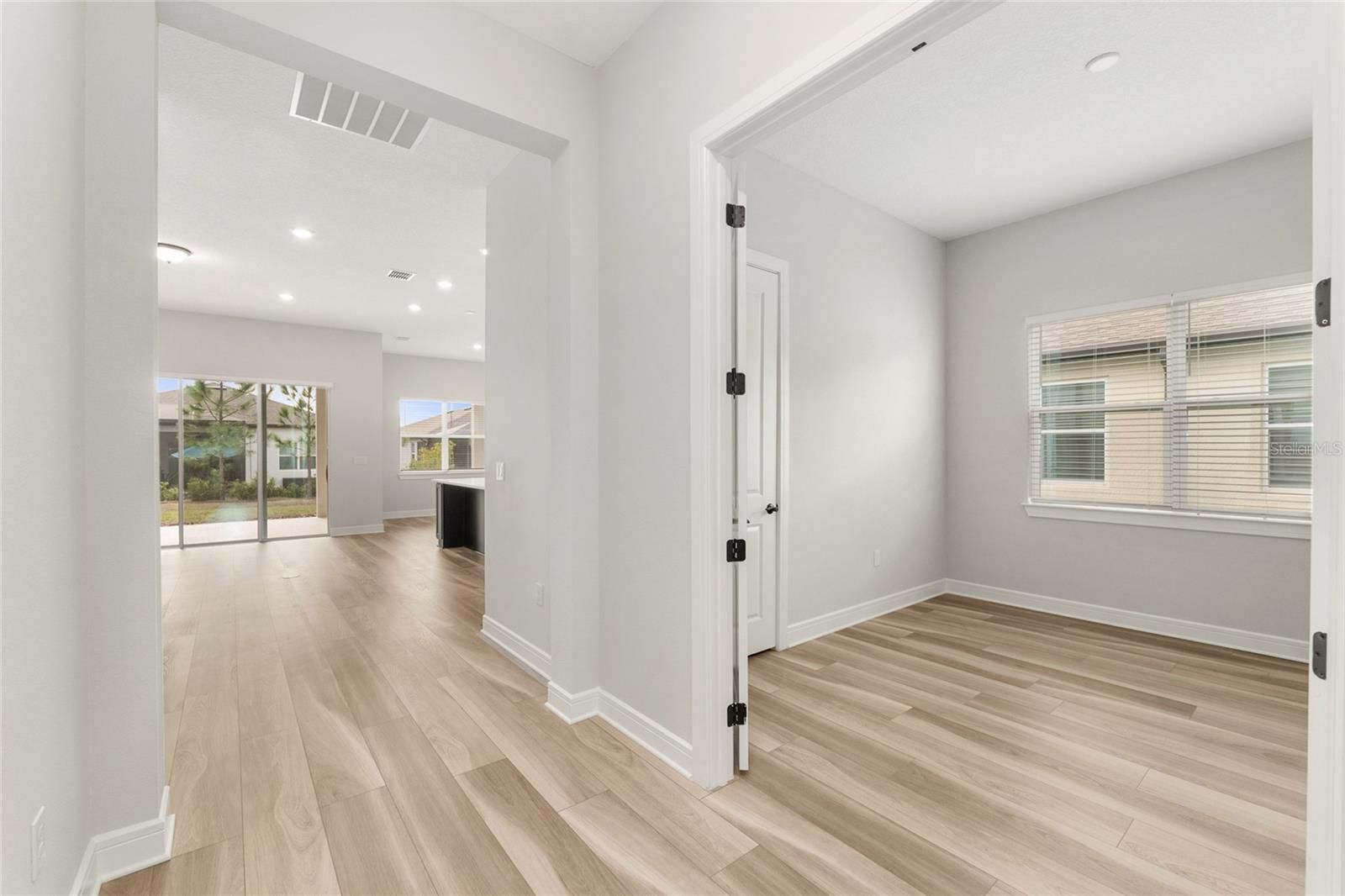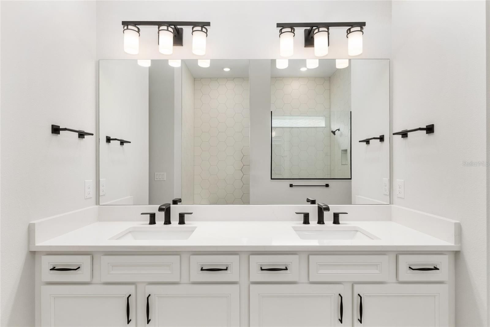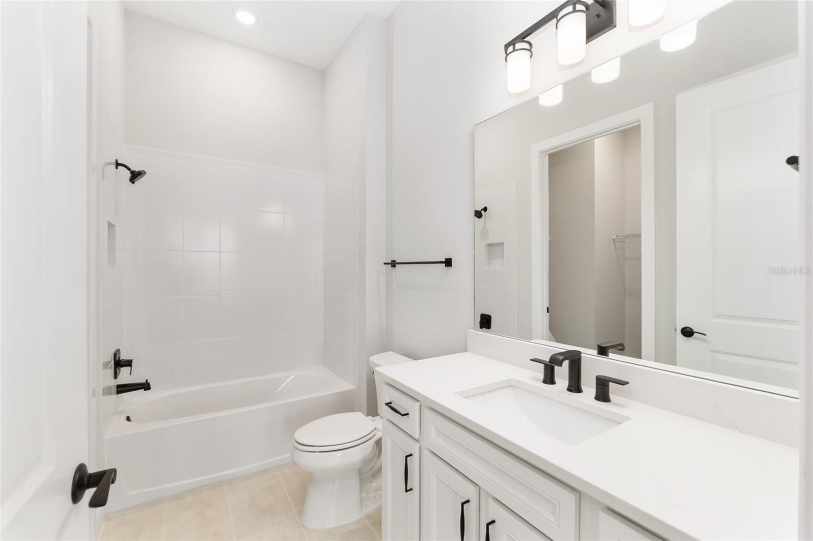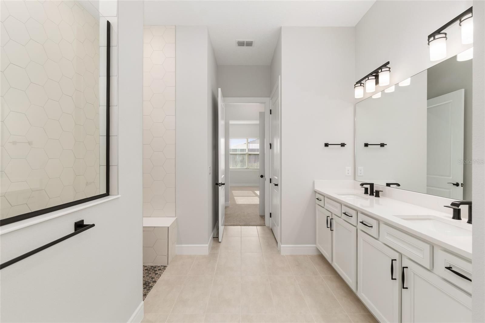Ready for immediate occupancy, this beautifully appointed and upgraded Prestige model home is nestled within the gated 55+ Stone Creek Golf Course Community, celebrated for its luxurious, resort-style amenities and vibrant lifestyle. Blending modern sophistication with smart, thoughtful design, this residence offers 2 bedrooms, 2.5 baths, a versatile bonus room, and an extended lanai, creating a living experience that is both refined and effortlessly comfortable. The contemporary open-concept layout features lofty ceilings, recessed LED downlighting, and staggered luxury vinyl plank flooring that seamlessly connect the gathering room, café, and kitchen, providing an ideal setting for relaxed everyday living or hosting with ease. At the heart of the home, the chef’s kitchen shines with a spacious island perfect for meal prep and casual dining, crisp Shaker-style cabinetry, gleaming quartz countertops, a striking tile backsplash, a walk-in pantry, and sleek built-in Whirlpool stainless steel appliances. Privately positioned at the rear of the home, the Owner’s Suite offers a peaceful retreat complete with a tray ceiling and two expansive walk-in closets, with one featuring convenient pass-through access to the laundry room. The spa-inspired en suite bath includes a quartz-topped double vanity, a Roman-style walk-in shower with elegant hexagon tile accents, a private water closet, a linen closet, and a transom window that fills the space with natural light. The generously sized secondary bedroom features its own walk-in closet, a charming bay window, and a full bath with an additional linen closet perfect for guests or flexible use. Additional features include a welcoming powder room, a dedicated interior laundry space, 2" faux wood blinds throughout, and a Smart Home package with a video doorbell. A brand-new whole-home water softener system and a spacious two-car garage with a 4-foot bump-out and durable epoxy flooring add even more convenience and value. Beyond the front door, an amenity-rich lifestyle awaits. A 24/7 staffed gated entrance provides peace of mind, while luxury-inspired amenities such as heated pools, a state-of-the-art fitness center, spa, hot tubs, and saunas create a true resort atmosphere. Enjoy pickleball, bocce, tennis, and softball, or take part in the many activities, entertainment, and events curated by the dedicated lifestyle team. Just outside the gates, you’ll find a golf course, pro shop, and restaurant, offering even more opportunities to unwind and connect. Make your move today and embrace resort-style living at its finest!