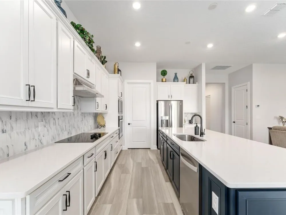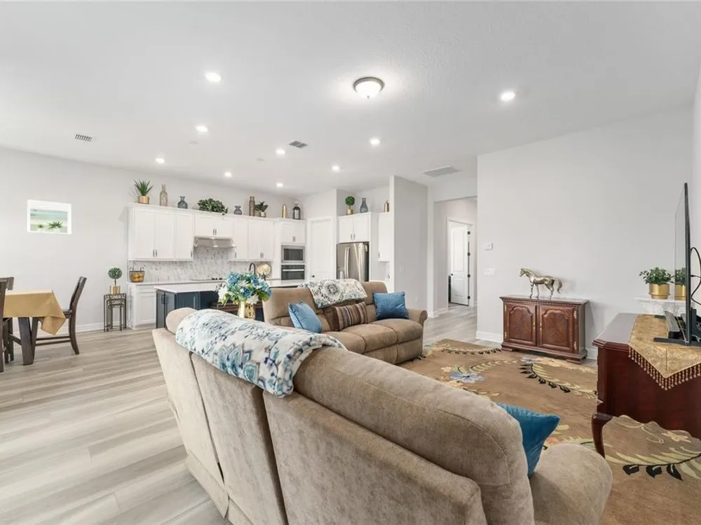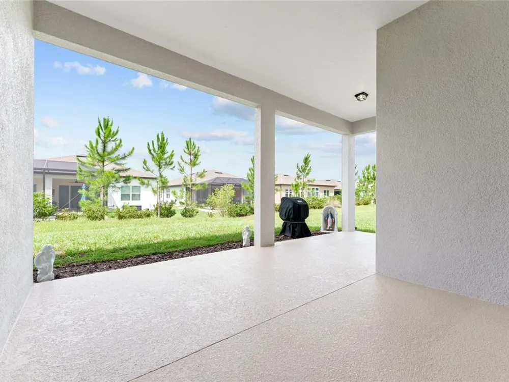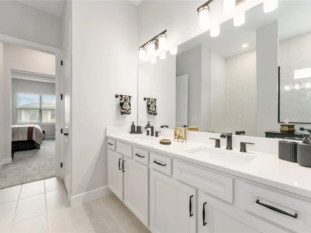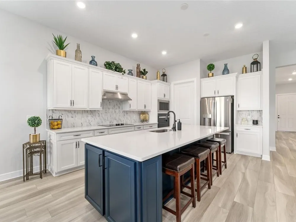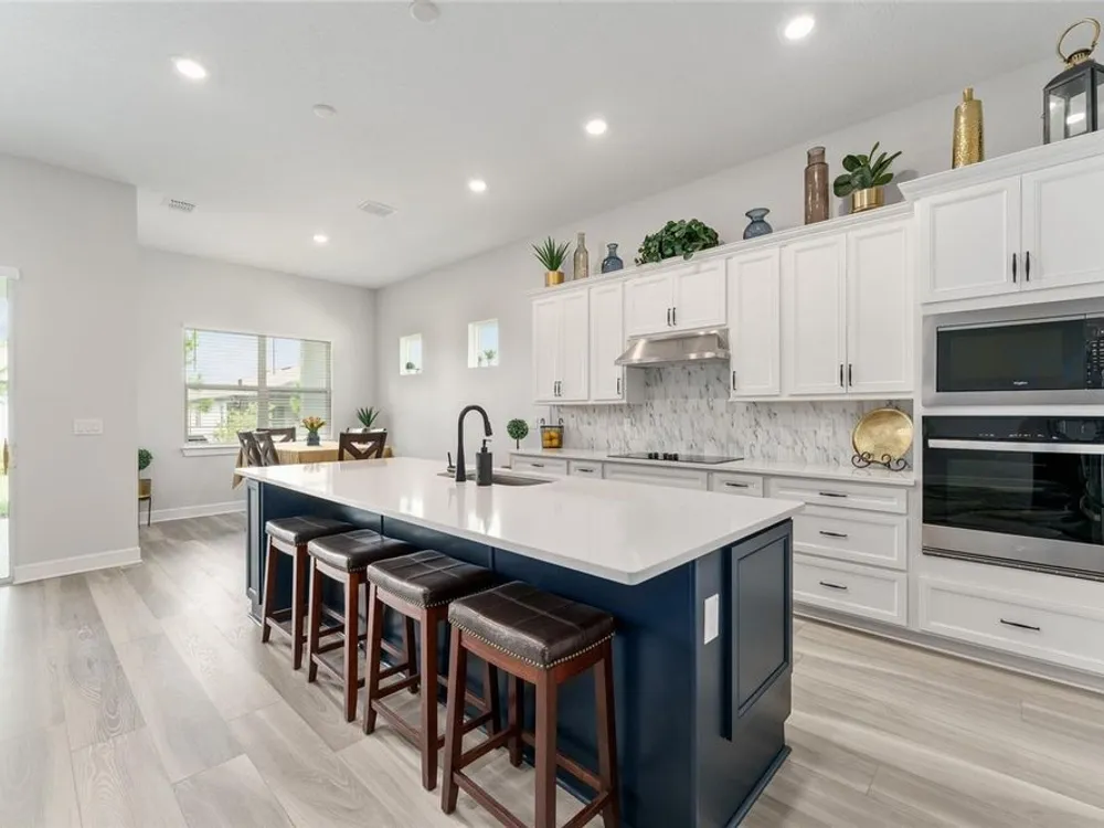 Nestled in the gated 55+ Stone Creek Golf Course Community—renowned for its luxurious resort-style amenities—this beautifully appointed Prestige model home blends modern sophistication with smart functionality for a truly elevated living experience. Offering 2 bedrooms, 2.5 baths, a flexible bonus room, and an extended lanai, every inch of this home is thoughtfully designed with privacy, versatility, and comfort in mind. Step into the contemporary open-concept layout where lofty ceilings, recessed LED downlighting, and staggered luxury vinyl plank flooring tie together the gathering room, café, and kitchen—perfect for both everyday ease and effortless entertaining. At the heart of the home, the chef’s kitchen impresses with a large island ideal for meal prep and casual dining, crisp Shaker-style cabinetry, gleaming quartz countertops, a statement tile backsplash, a walk-in pantry, and sleek Whirlpool stainless steel appliances. Positioned at the back of the home for optimal privacy, the Owner’s Suite showcases a tray ceiling and two expansive walk-in closets —one with convenient pass-through access to the laundry room. The spa-inspired en suite bath offers a quartz-topped double sink vanity, a Roman-style walk-in shower with elegant hexagon tile accents, a private water closet, a convenient linen closet, and a transom window that bathes the space in natural light. The generously sized secondary bedroom features a walk-in closet, a charming bay window—perfect for guests or flexible living, and its own full bath complete with a linen closet. Additional highlights include a guest-friendly powder room, a dedicated interior laundry space, 2" faux wood blinds throughout, and a Smart Home package featuring a video doorbell. You'll also appreciate the brand-new whole-home water softener system and a spacious two-car garage with a 4-foot bump out and durable epoxy-coated flooring. Step beyond this thoughtfully designed home and into a vibrant, amenity-filled community where each day feels like a retreat. With a 24/7 staffed gated entrance ensuring both security and peace of mind, you'll enjoy comfort, connection, and convenience at every turn. Luxury-inspired amenities include heated pools, a state-of-the-art fitness center, a spa, and relaxing hot tubs and saunas. Stay active with pickleball, bocce, tennis, and a softball field, while a dedicated lifestyle staff curates entertainment, activities, and special events to foster connections. Just beyond the gates, enjoy a golf course, pro shop, and restaurant—perfect for socializing and unwinding. Make your move today and experience resort-style living at its finest!