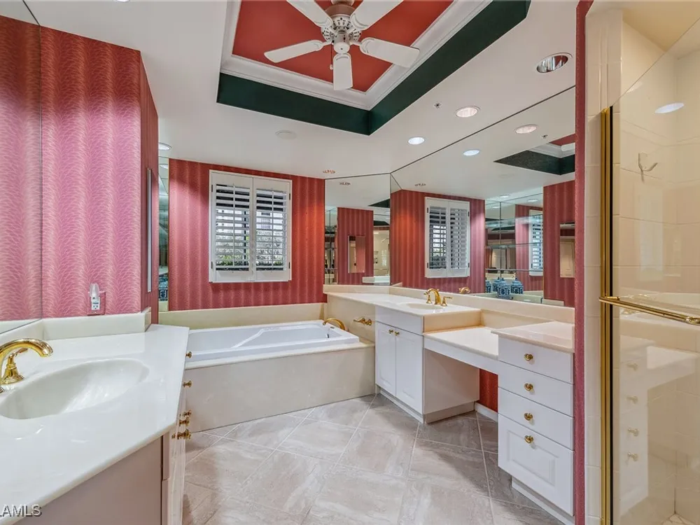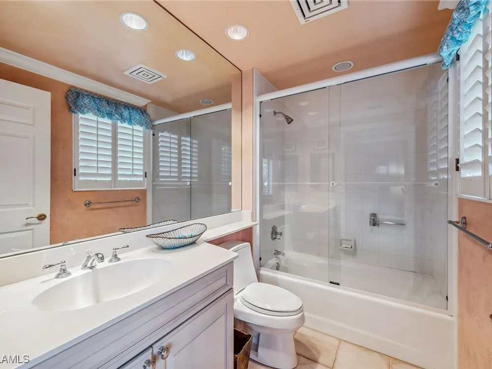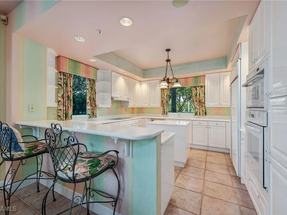 Amazing first-level home lives like a private villa with patio and open space! Enter this spacious and popular three-bedroom, three-bath floor plan from your private foyer into an expansive living and entertaining space highlighted by floor-to-ceiling sliding glass doors, elegant tile flooring and an expansive screened-in lanai with electric rolldown hurricane protection. The kitchen design features a peninsula countertop with a separate breakfast table area with maximum natural light illuminating the space. The spa-inspired primary bath features an oversized shower and dual vanities. Your friends and family can enjoy privacy and comfort in the spacious guest bedrooms with en-suite baths. Mansion La Palma residents enjoy manicured common areas, and a relaxed and private tropical pool. Experience Bay Colony and Pelican Bay beach clubs, with attended beach services or work on your serve at the newly updated Bay Colony Tennis Club.