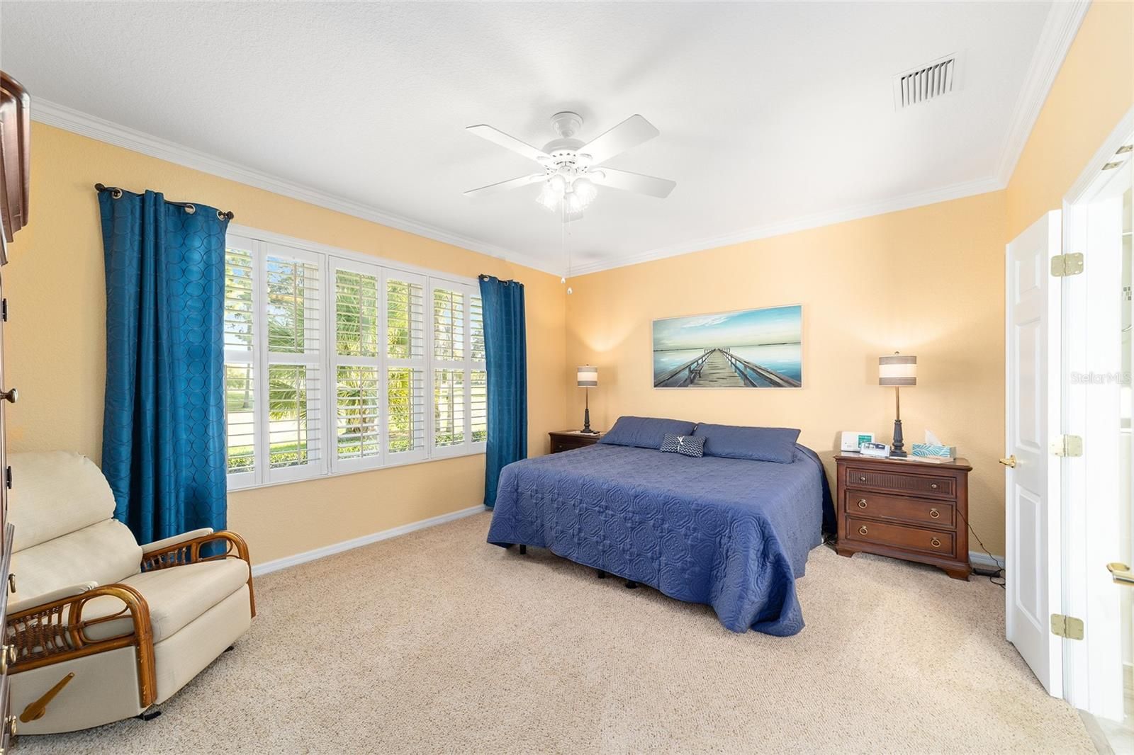 - Ceiling Fan(s), Crown Molding, In-Wall Pest Control, Open Floorplan, Stone Counters, Walk-In Closet(s), Window Treatments